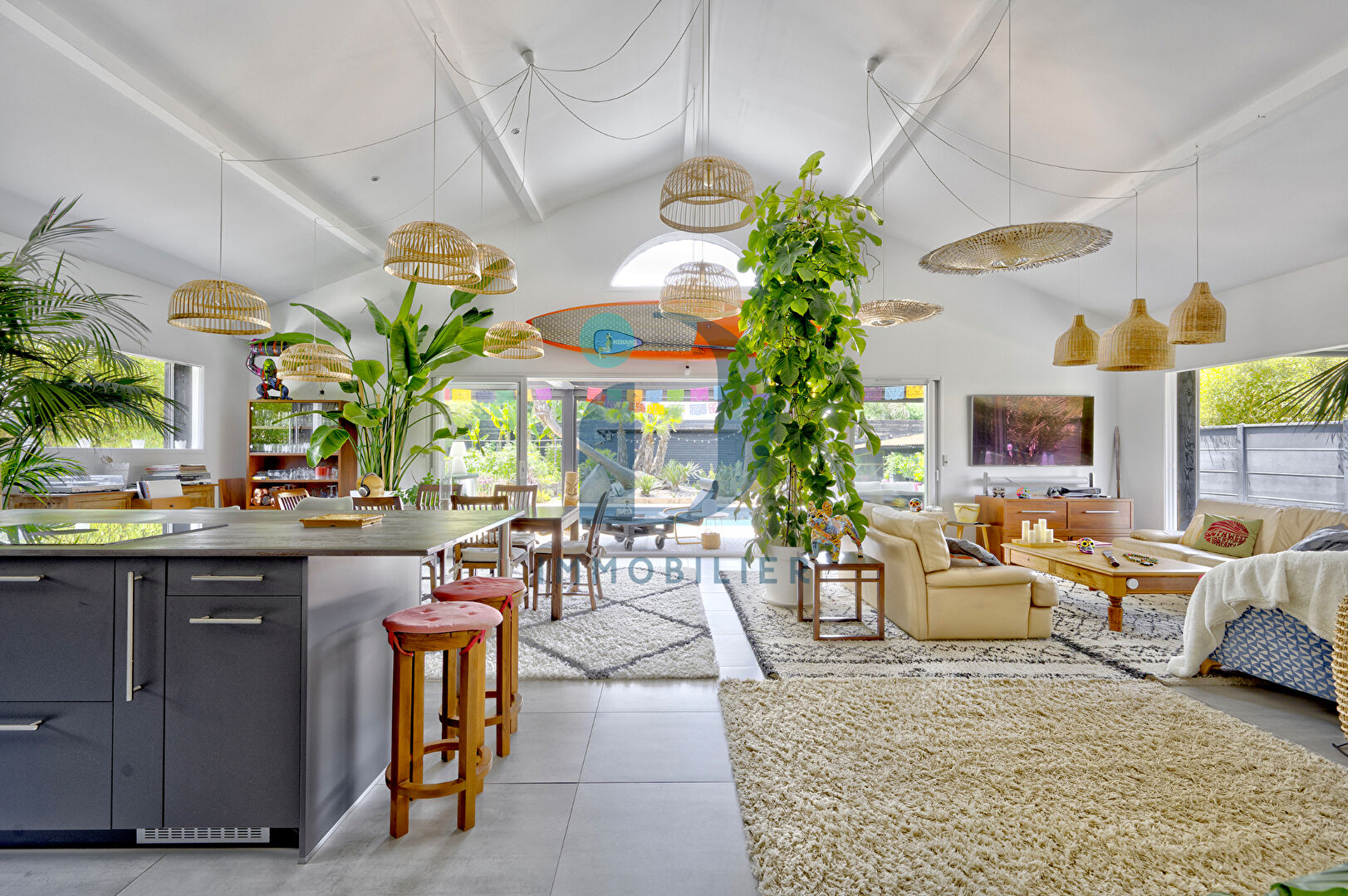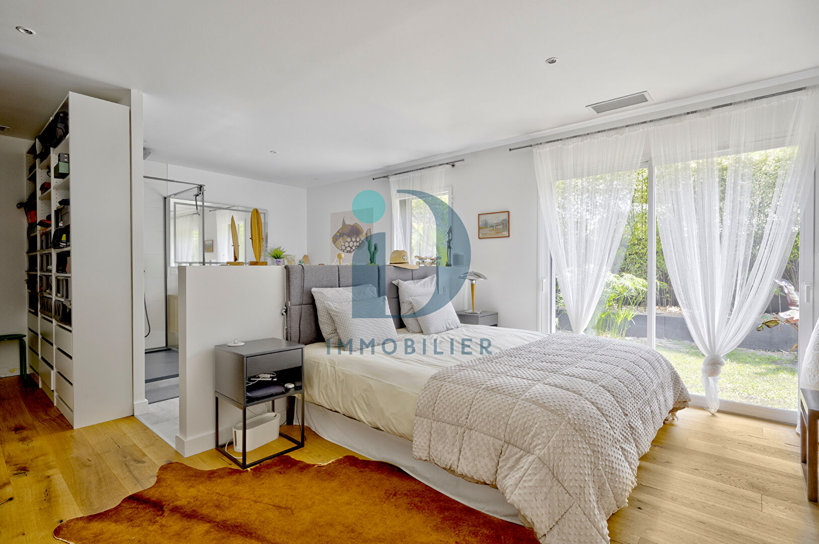 Maison contemporaine de plain-pied : Élégance, modernité et art de vivre à Martignas sur Jalle, piscine, garage, dépendances, jardin clos, potager Dans un environnement confidentiel, à l'abri des regards et au coeur d'un jardin aux essences exotiques, cette maison de plain-pied d'environ 133 m² (hors pergolas, dépendances et garage) offre un lieu de vie unique, où la modernité s'allie à des prestations haut de gamme pour un confort absolu au quotidien. Dès l'entrée, le ton est donné : volumes généreux, lumière omniprésente, finitions soignées. Le salon-séjour cathédrale impressionne par ses hauteurs et son ouverture sur l'extérieur, dans une continuité fluide avec une cuisine contemporaine hautement équipée, pensée pour les amateurs de gastronomie et de convivialité. La maison déploie plusieurs espaces de vie extérieurs, tous soigneusement aménagés : - Terrasses et pergolas bioclimatiques élégantes équipées de stores screen motorisés, - Une piscine parfaitement intégrée dans le paysage, - Un potager paysager, discret et structuré, - un grand chais et une "bûcherie" indépendante - Une cave à vin, véritable clin d'oeil aux épicuriens. Côté nuit, la maison propose 2 chambres, dont une suite parentale raffinée avec dressing et salle d'eau privative. Les prestations techniques viennent renforcer la qualité de l'ensemble : - Climatisation gainable réversible bi-zone, - Système domotique complet (gestion des ouvertures, des stores et des ambiances), arrosage automatique, éclairage extérieur, adoucisseur d'eau - WC japonais de qualité - Garage (34 m2) de grande capacité avec rochelle, - Buanderie et dépendances fonctionnelles. Fibre et toutes les pièces câblées RJ45 Panneaux solaires de production et revente d'électricité Cette propriété, véritable refuge moderne au style de vie inspiré des vacances, s'adresse aux amateurs de lignes épurées, de volumes maîtrisés et d'un art de vivre tourné vers l'extérieur. Véritable havre de paix au charme exotique, jardin clos, proche transport (bus) commerces, commodités et établissements scolaires. Bien rare fonctionnel et dépaysant à visiter sans tarder ! (5.00 % honoraires TTC à la charge de l'acquéreur.)