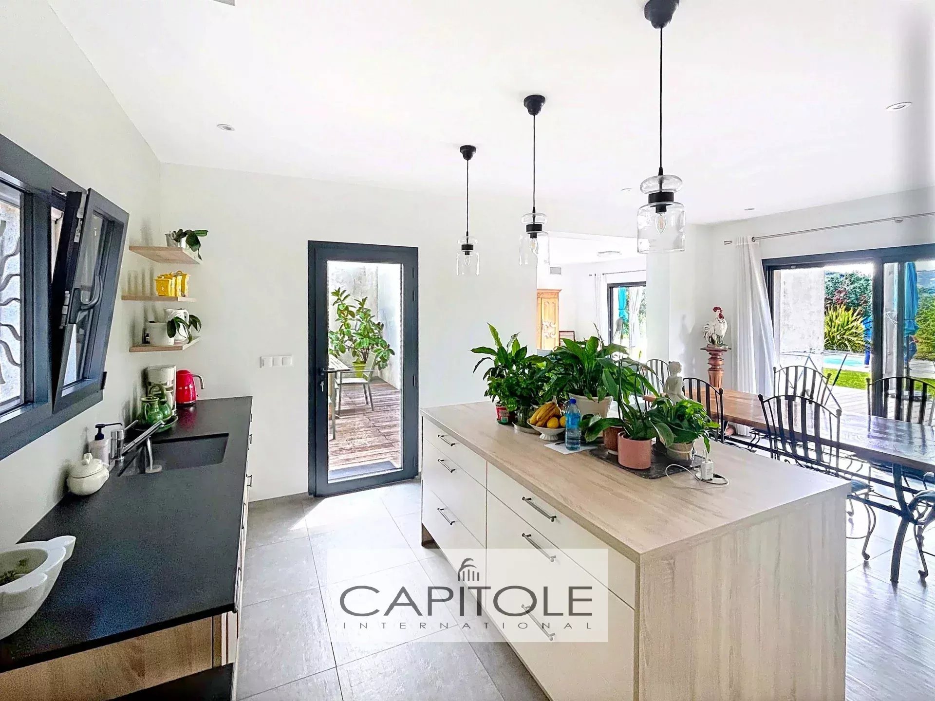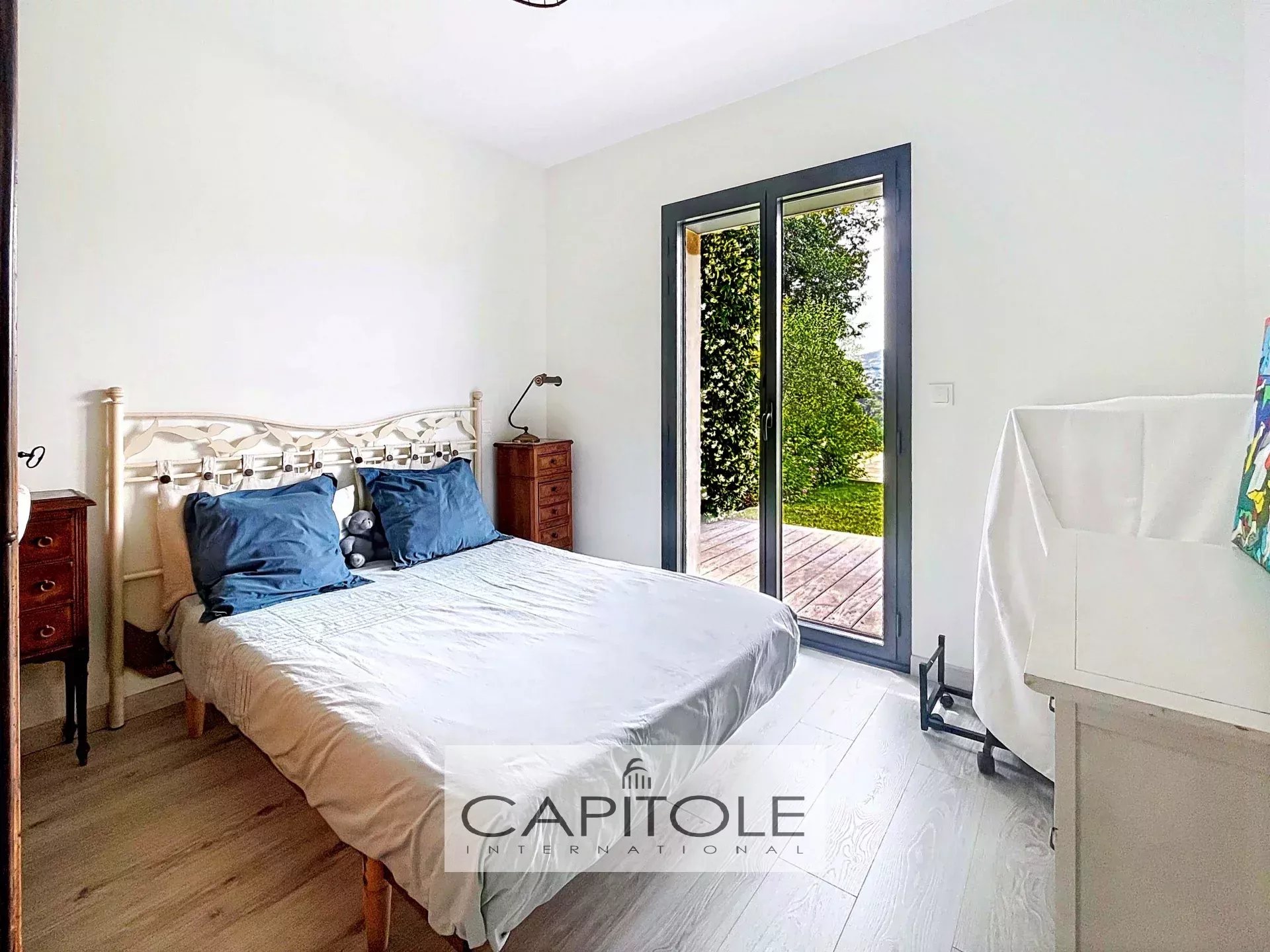 ANTIBES – Dans un secteur recherché, découvrez cette élégante villa contemporaine de plain-pied de 131 m², construite en 2018, alliant design moderne et confort absolu. Implantée sur un terrain plat paysagé de 1.356 m², elle profite d’une position dominante avec une vue dégagée imprenable.
