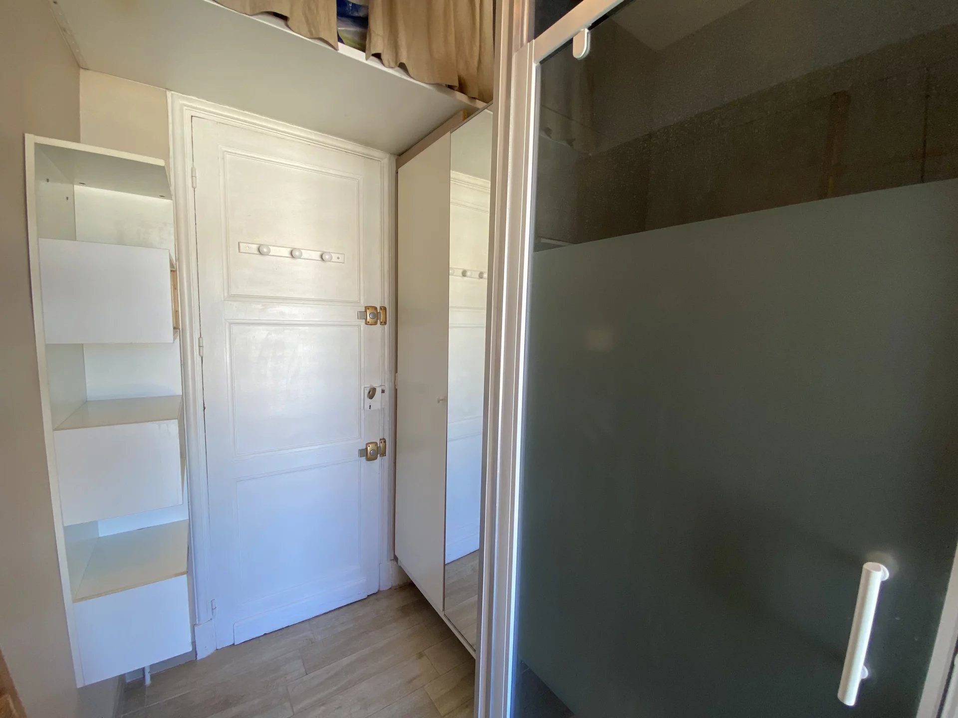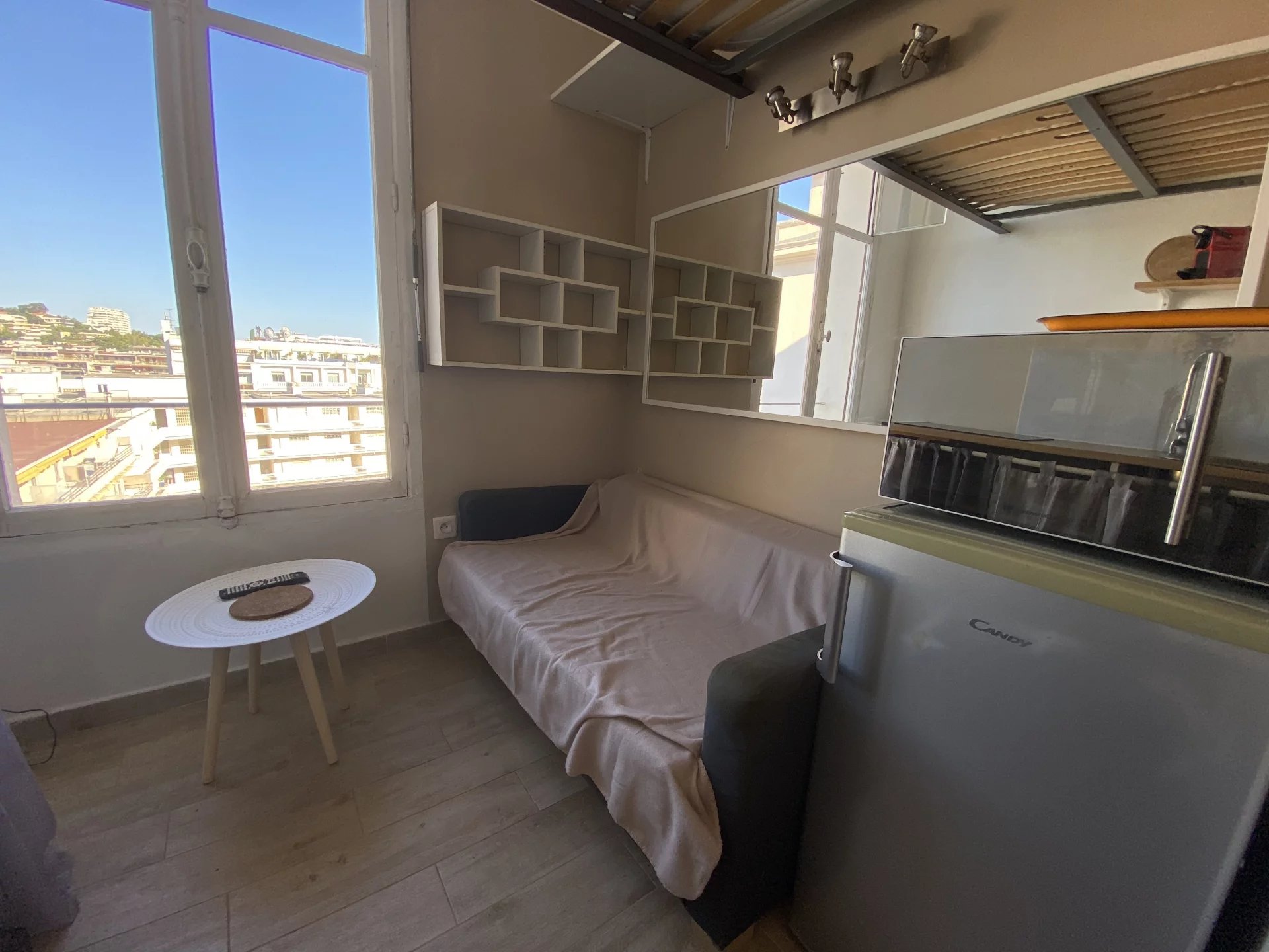 A Cannes, sur le boulevard de la Croisette, entre les Hôtels Carlton et Martinez, dans une résidence de grand standing avec sécurité 24/24h et 7/7j, ancienne chambre de service aménagée en studette de 7,5 m2 avec fenêtre au calme coté jardin. Entrée avec rangements, petit séjour avec lit double en mezzanine, kitchenette et cabine de douche. Climatisation réversible. WC sur le pallier