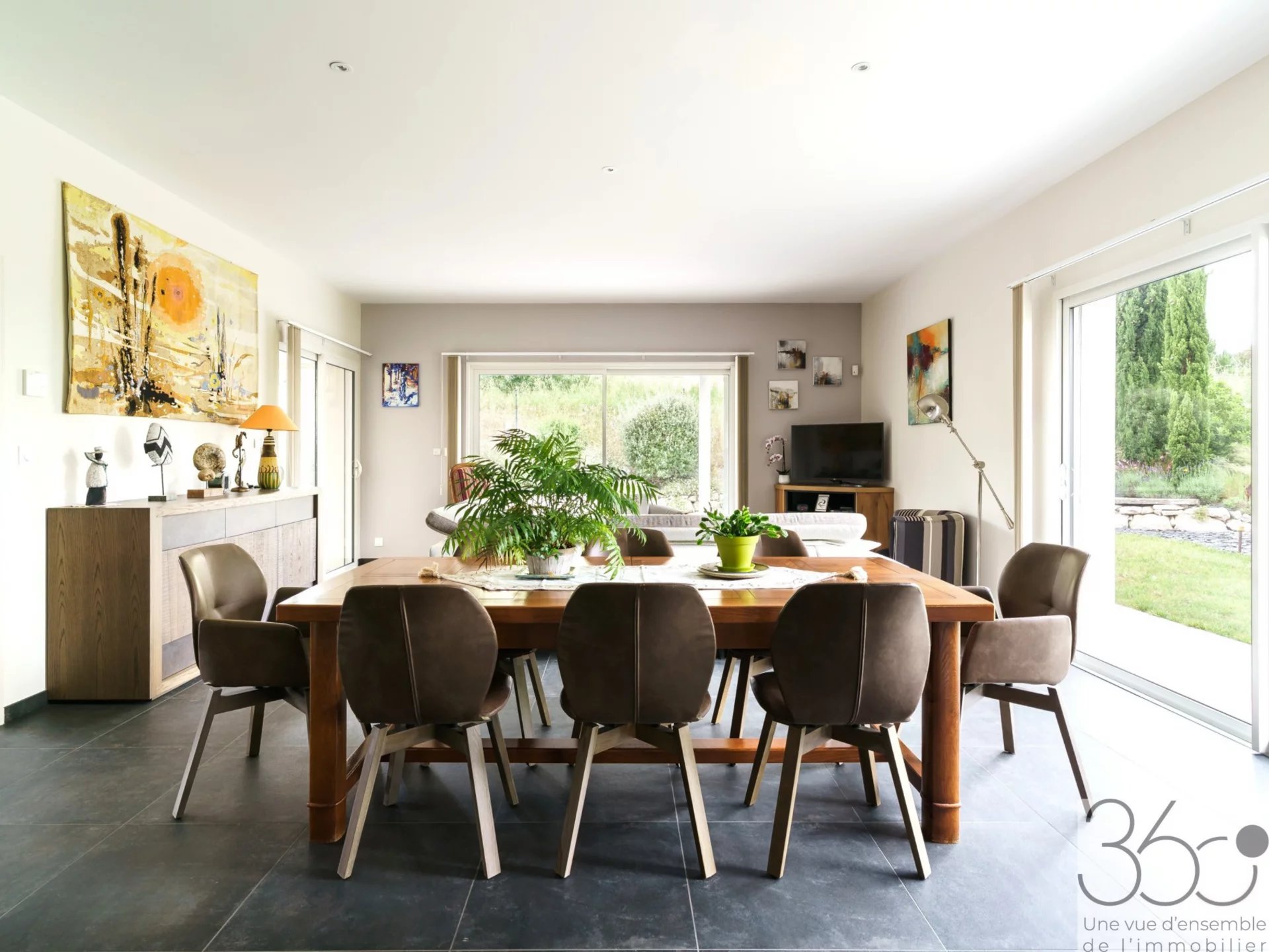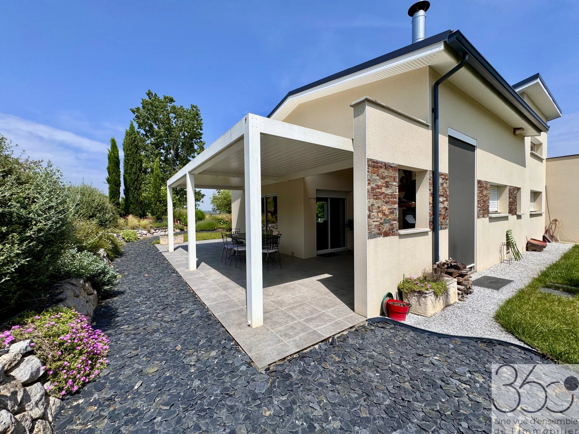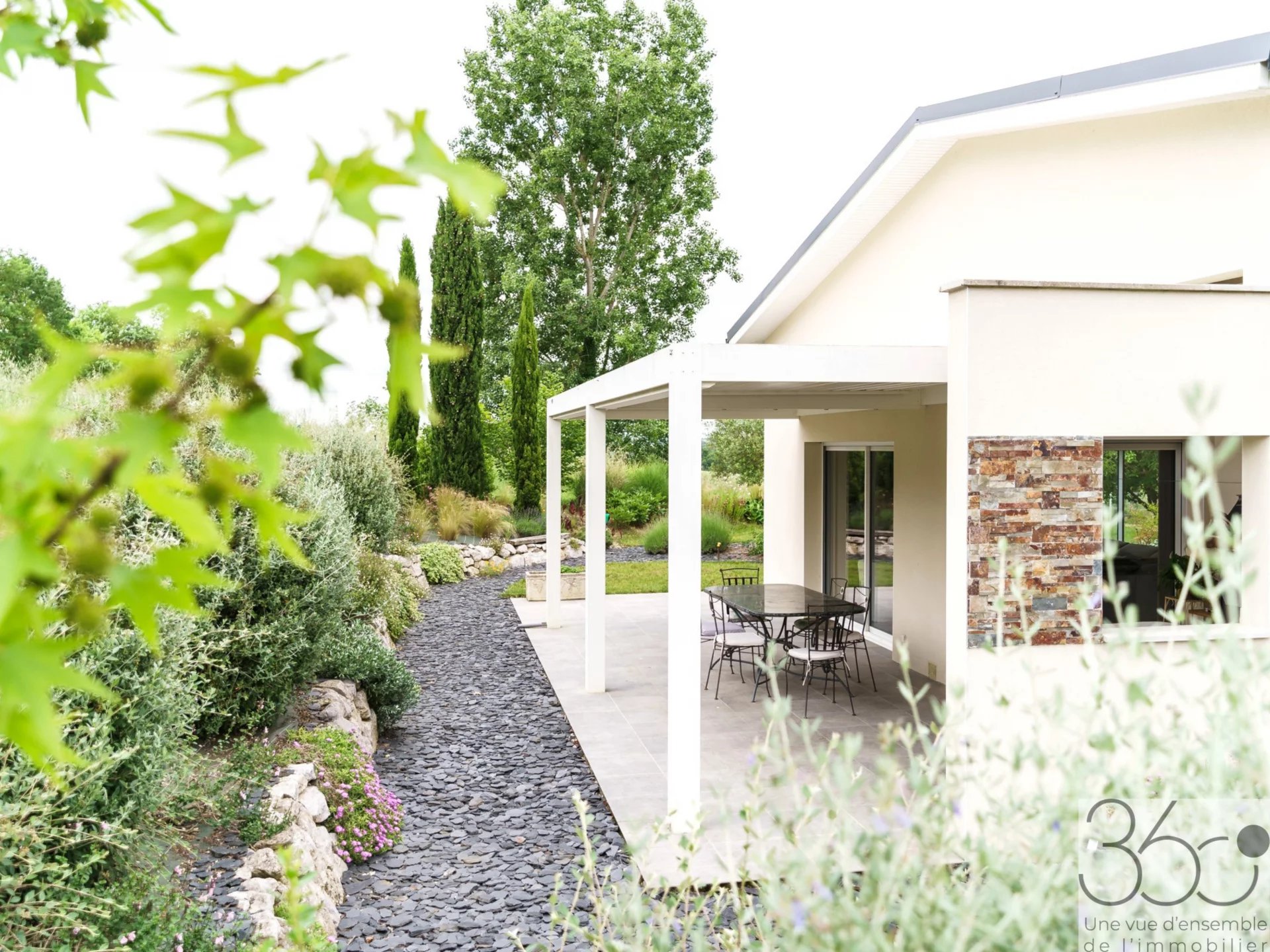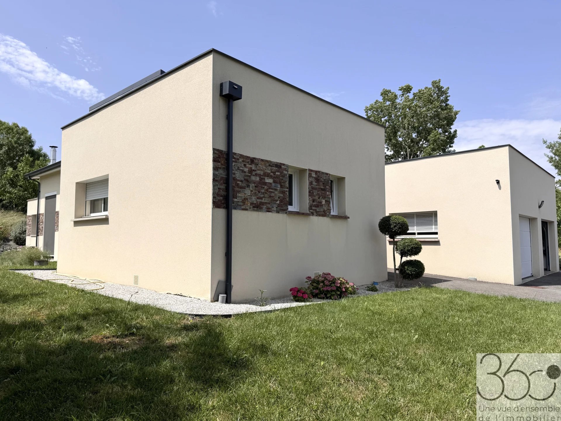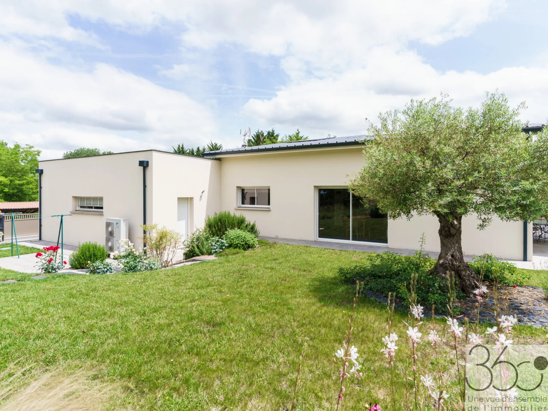 Maison moderne T4/5 sur terrain de 1075m² A la recherche de calme et de modernité? Cette maison contemporaine construite en 2020, située à Auradé (5min de l'Isle-Jourdain), petit village paisible à la campagne, est faite pour vous! D'une surface habitable de 135m², cette maison T4 évolutive en T5 grâce à sa mezzanine lumineuse vous séduira par ses prestations haut de gamme et son cadre de vie serein. Côté jour, une entrée dessert un dressing ainsi que des toilettes. Une grande pièce de vie de 57m² lumineuse, exposée sud et ouest et dans sa continuité une terrasse de plus de 50m². Une cuisine ouverte avec plafond cathédrale vient sublimer ce bel espace. Côté nuit une suite parentale avec dressing, salle d'eau et WC, 2 chambres et une salle d'eau. En mezzanine, une pièce de 10m². Un double garage, un cellier et une cave complètent cette habitation. Caractéristiques principales: Construction récente (2020), normes RT 2012 Chauffage au sol alimenté par une pompe à chaleur Ballon thermodynamique Climatisation Fibre Aspirateur centralisé Pergola bioclimatique Panneaux solaires Terrain paysagé et arrosage automatique Terrain piscinable Double garage carrelé Le +: Vous avez l'opportunité d'acquérir un terrain constructible viabilisé attenant de 825m². C'est une maison moderne, clé en main dans un environnement privilégié.