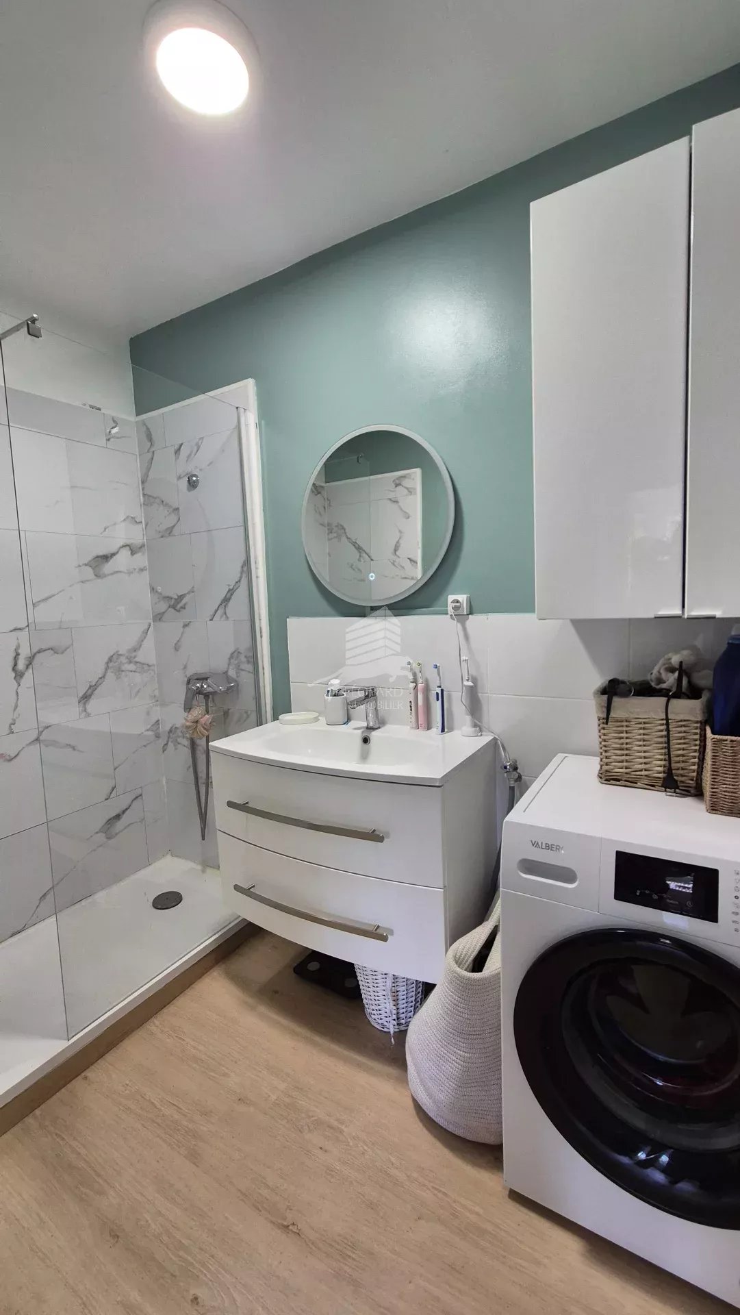 La partie nuit comprend trois belles chambres équipées de dressings, une salle d’eau moderne avec douche à l’italienne, ainsi qu’un WC indépendant. La cuisine, entièrement neuve, est séparée, aménagée et équipée avec goût.