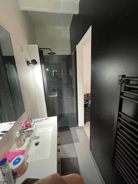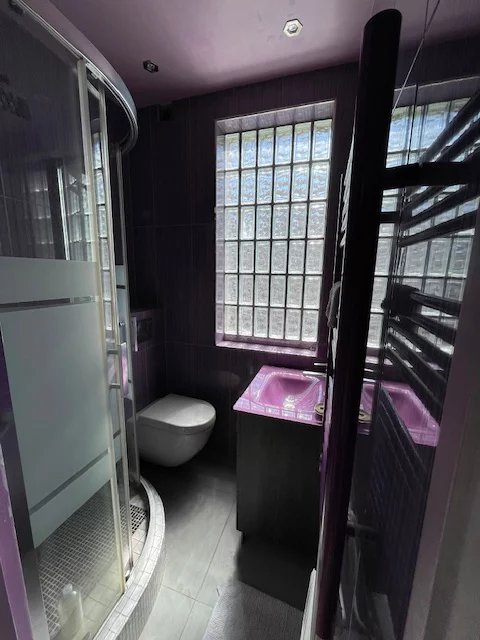 Étage : une chambre avec salle de douche et toilette.