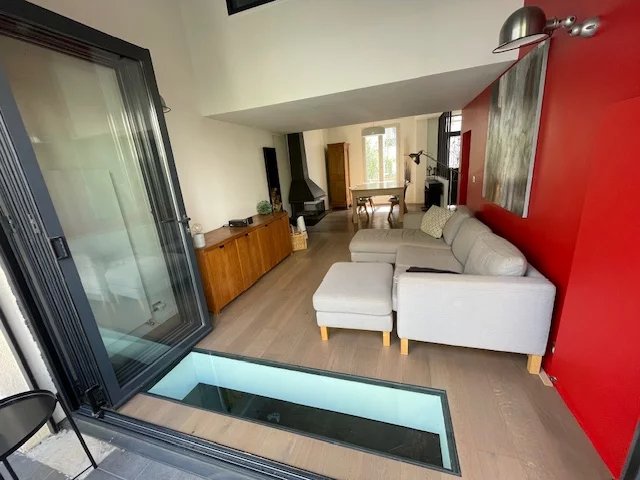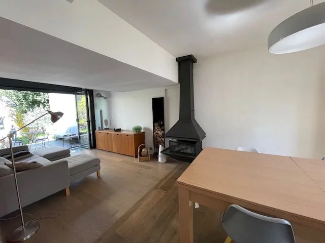 Rdc : Entrée séjour et salle à manger, avec baies vitrées qui s’ouvre totalement sur la terrasse sans vis-à-vis, cuisine équipée haute gamme ouverte sur séjour. Toilette invitée.