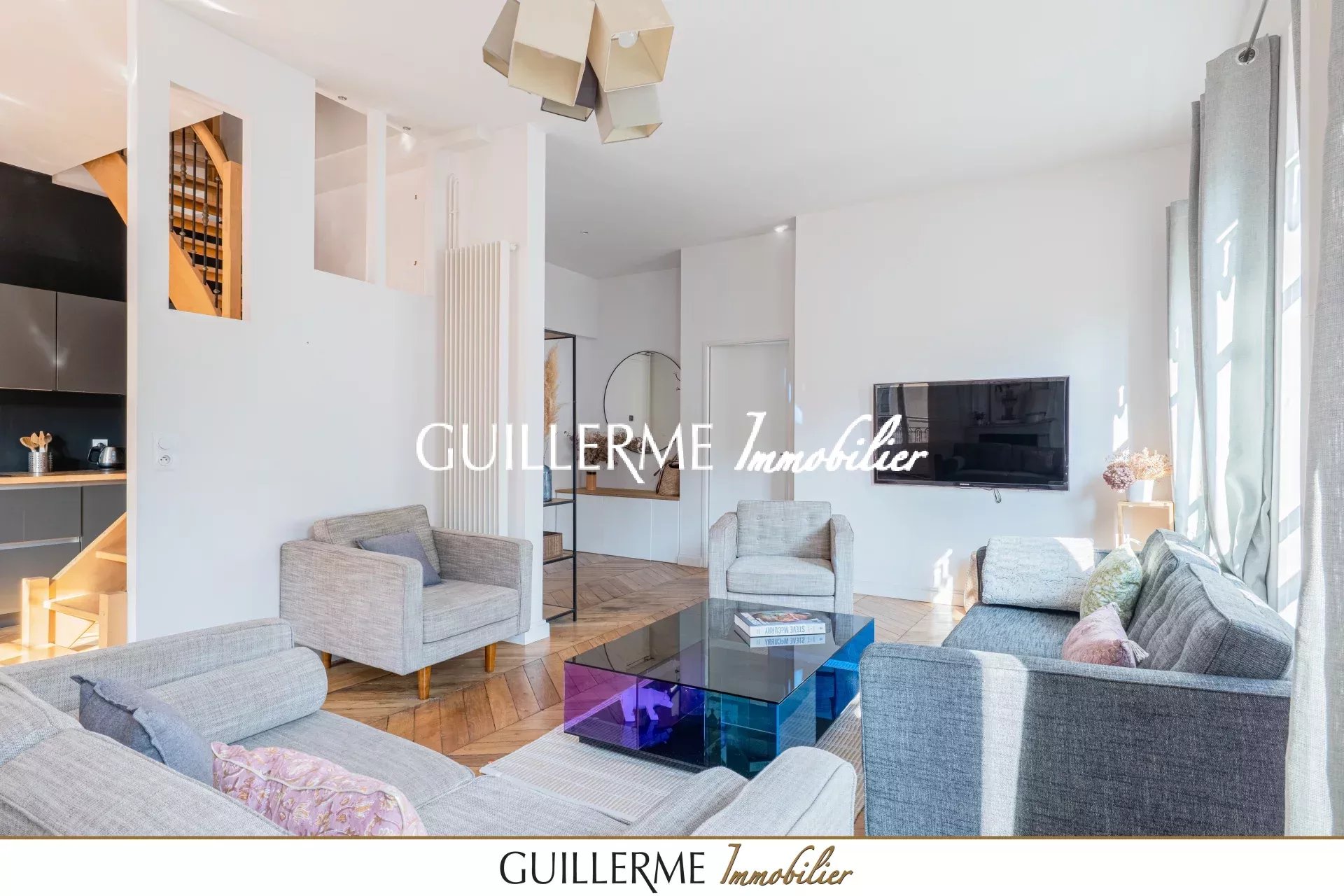 —-GUILLERME immobilier—- Découvrez ce magnifique appartement en duplex de 135 m² utiles (107.15 m² Carrez), idéalement situé au dernier étage d'un immeuble plein de charme à la façade refaite. Son exposition est-sud vous garantit une luminosité exceptionnelle tout au long de la journée. Au 1er niveau, vous profiterez d’une belle pièce de vie de presque 40m2 (entrée, cuisine US, salon/SAM), une suite parentale et des toilettes. Au 2ème étage, dont l’accès se fait par l’escalier intérieur ou par une entrée indépendante, vous apprécierez les 2 autres très grandes chambres, de nombreux rangements, une SDE avec douche italienne et un deuxième WC. Cet appartement comporte 2 entrées distinctes. Vous pouvez à la fois jouir de votre habitation principale et gérer vos locations du niveau supérieur pour un revenu locatif supplémentaire. On aime : - l’atmosphère paisible tout en étant proche des commodités - La sensation d’espace accentuée par les 3m de hauteur sous plafond de la pièce de vie - le cachet de l’appartement avec le très beau parquet chevron et la cheminée d’époque - les 2 entrées distinctes par niveau offrant une indépendance appréciable - les très nombreux rangements Info vérité : pas d’ascenseur dans cet immeuble haussmannien. Que vous soyez une famille à la recherche d'un espace de vie confortable ou un investisseur en quête d'un bien d'exception, cet appartement saura vous séduire. Ne manquez pas cette opportunité rare d'acquérir un bien d'exception au cœur de la ville. Contactez-nous pour organiser une visite ! Stéphanie Thévenon o6 09 25 94 79 Agence Guillerme Immobilier 4 Bis Ruelle des Soeurs 69570 DARDILLY