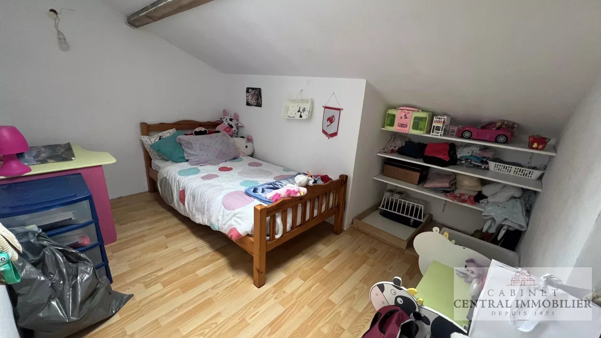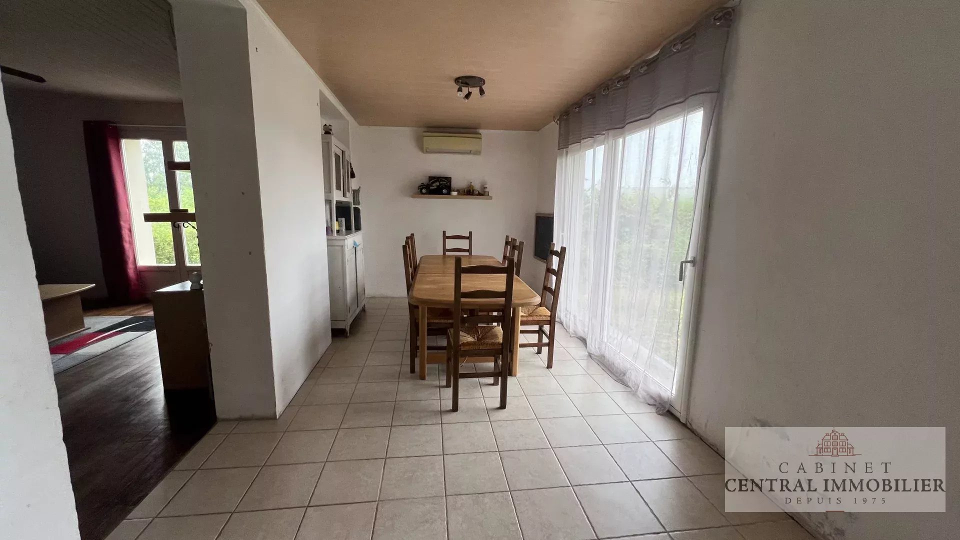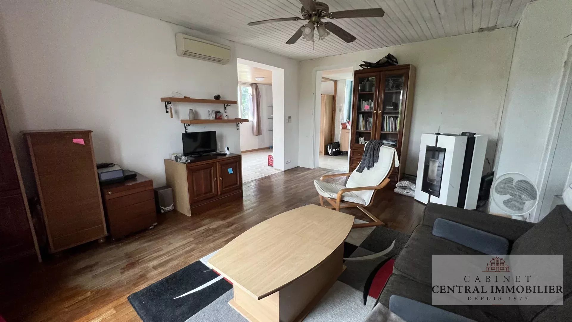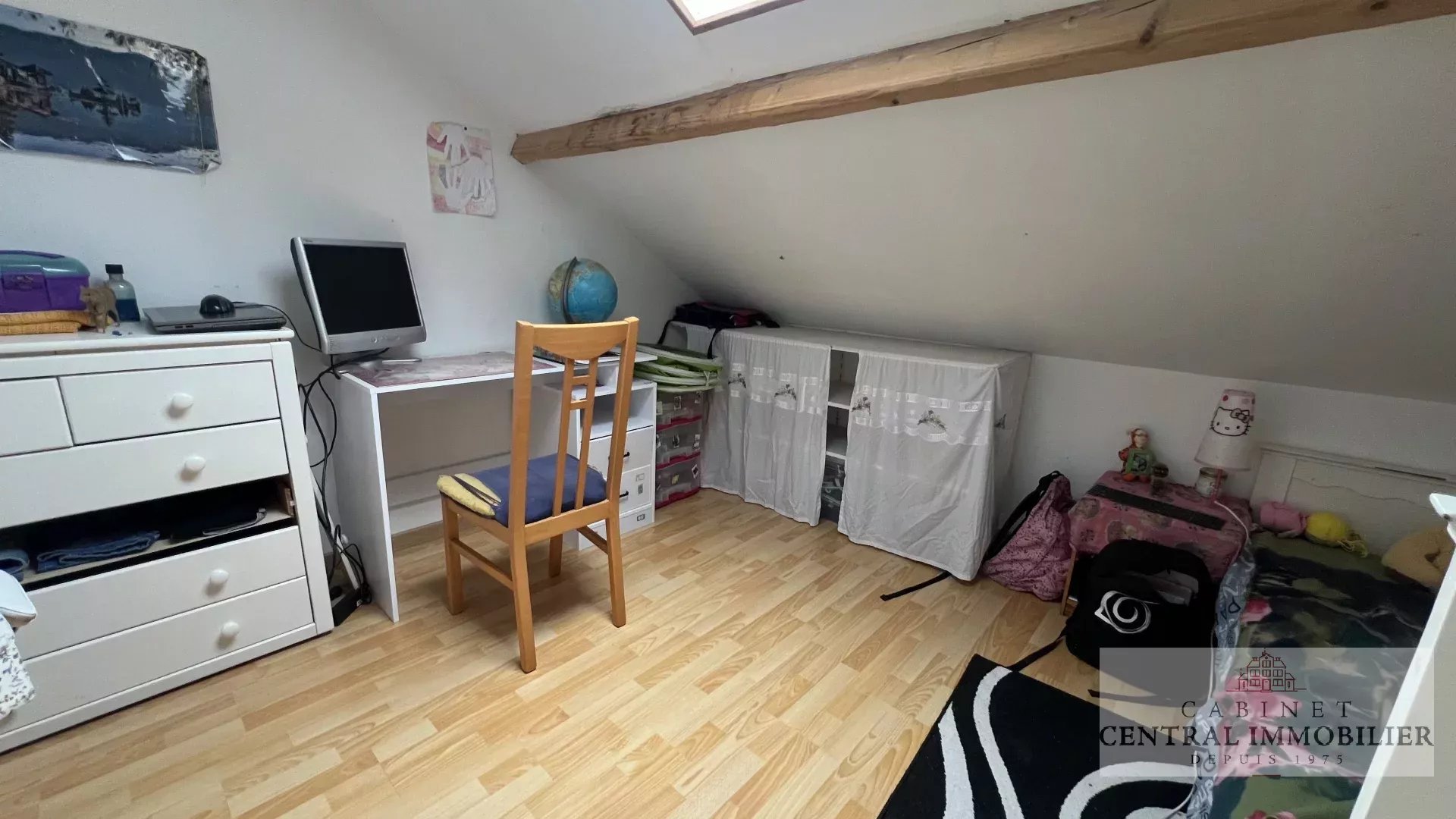 Exclusivité: Maison comprenant : une entrée carrelée de 2.87m² avec rangement, cuisine de 11.96m² carrelée aménagée/équipée ouverte sur un salon de 21m² parqueté et séjour de 19m² carrelé, une chambre de 11 m² parquetée, une salle de bain carrelée faïencée avec sèche serviettes, WC carrelé avec lave mains. À l'étage : palier parqueté à usage de bureau, trois chambres mansardées parquetées de 10m², 11m² et 11.71m². Chauffage par climatisation réversible et poêle à granulés. Double vitrage/PVC. Volets roulants. Un terrain clos de 1 037m² une cave, un garage avec atelier, une remise, appentis, terrasse.