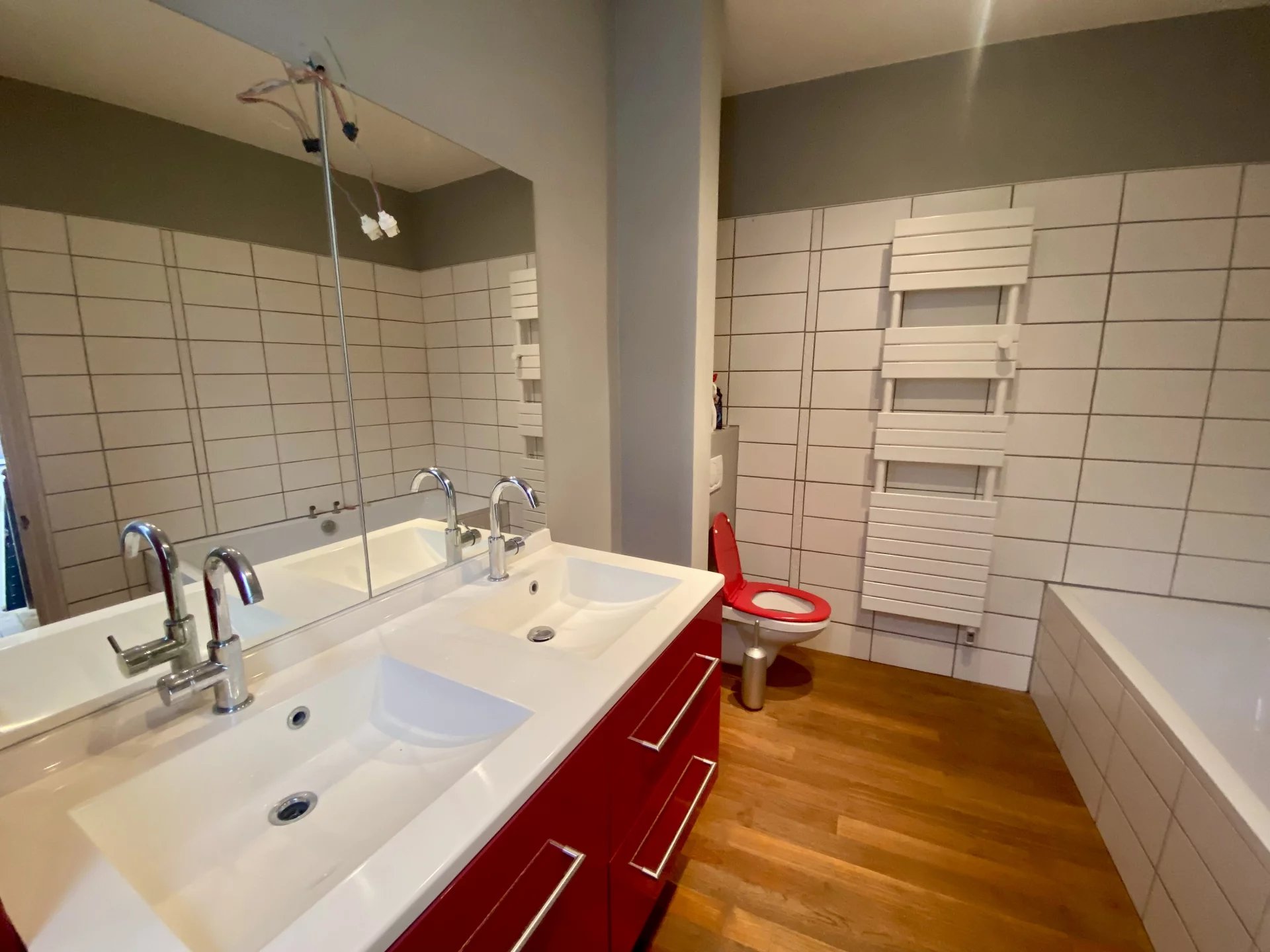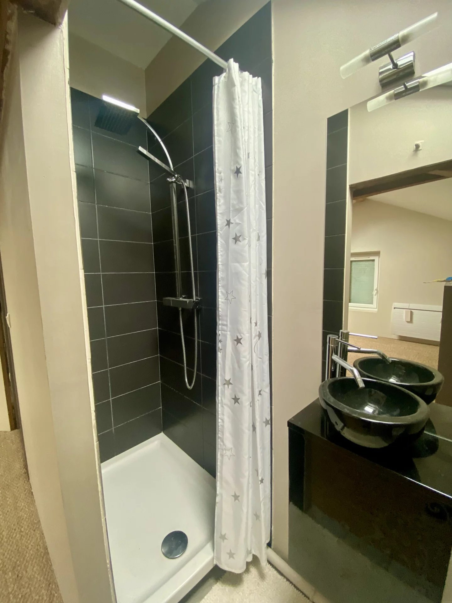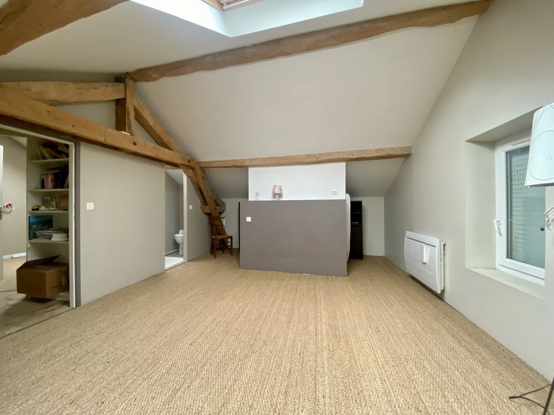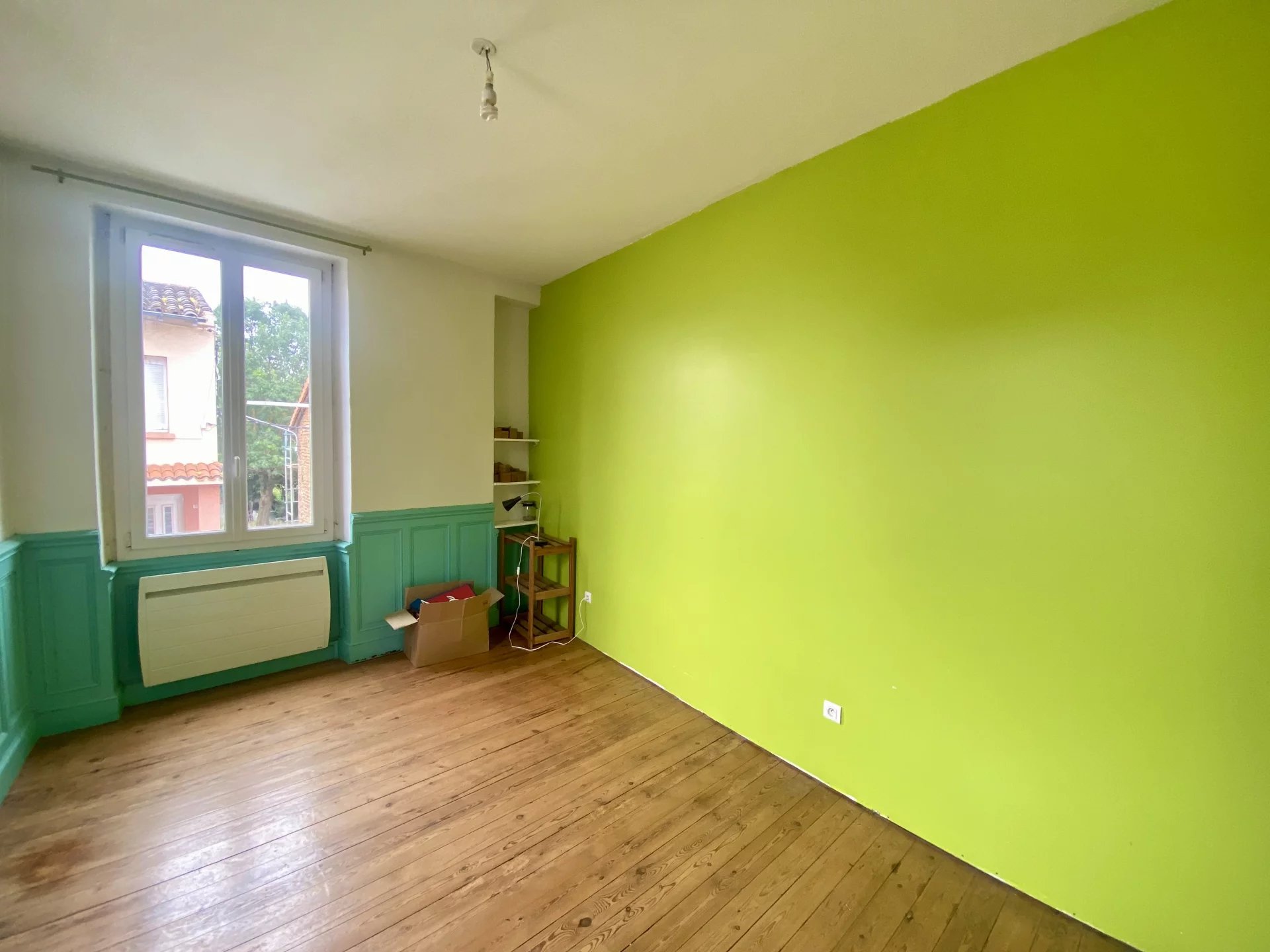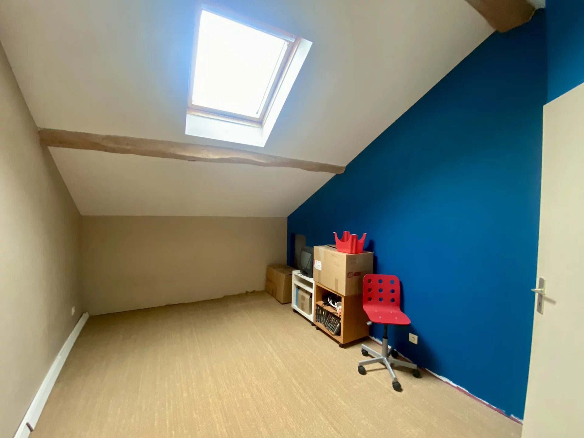 Le premier niveau distribue 2 belles chambres (avec placards) et une salle de bains-wc.