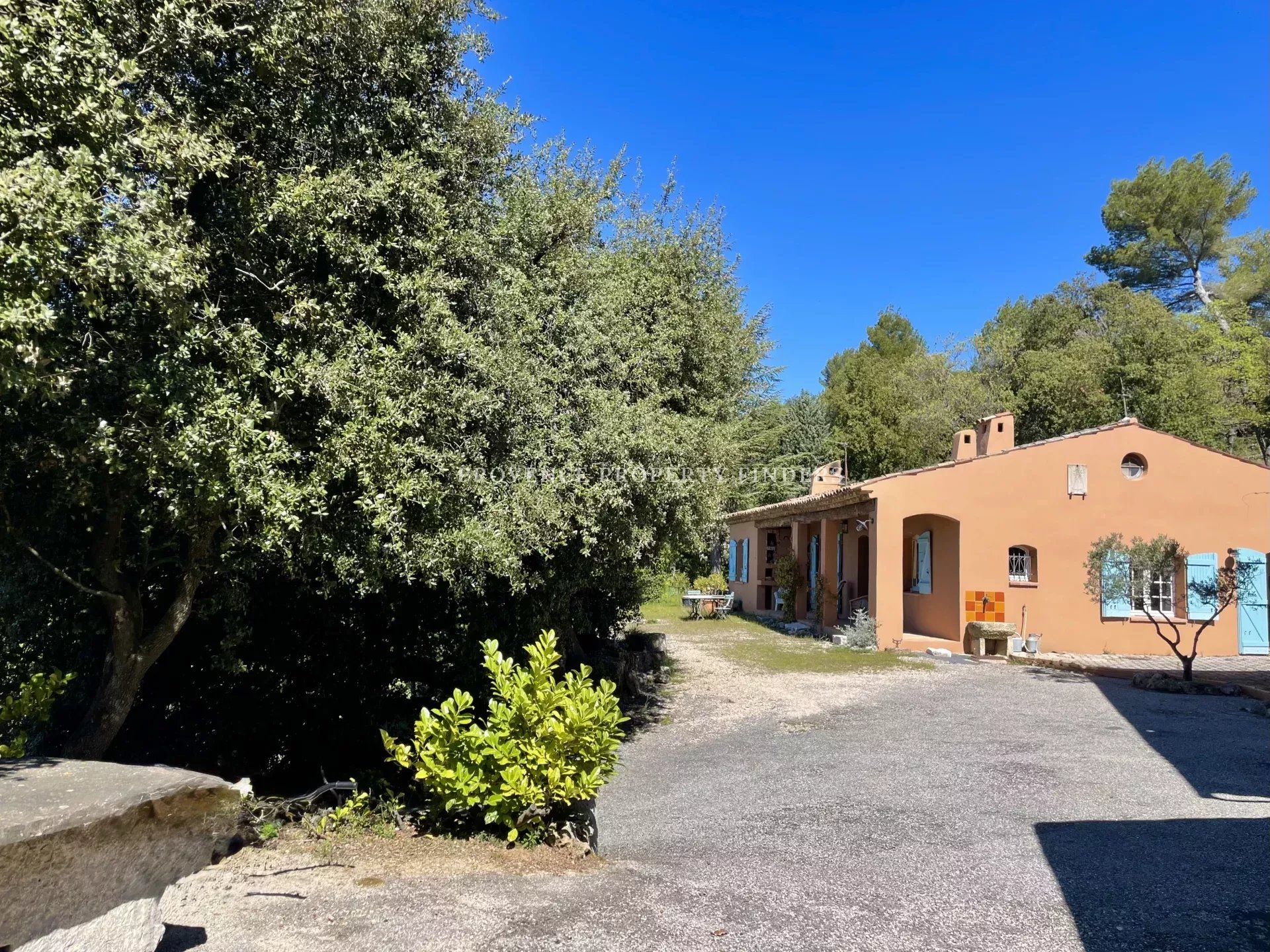 À Tourtour, idéalement située à 400 mètres à pied du centre et en pleine nature, belle propriété de 2 maisons sur environ 4000 m² de terrain avec une vue magnifique. La maison principale propose 3 chambres, 1 salle de bains, 1 salle de douche, une belle et spacieuse cuisine-salle à manger, ainsi qu'un grand salon ensoleillé avec cheminée, le tout sur 115m2. Dans la seconde habitation au premier étage on trouve un appartement indépendant (55m2) comprenant 1 salon avec cheminée, 1 petite chambre, une cuisine et une salle de bains ainsi qu'une grande chambre au rez-de-jardin. Le garage et 2 grandes remises complètent ce bien. La piscine/bassin (11/5) est située sur une restanque en contrebas. Derrière la maison les berges sont plantées de nombreux chênes verts. Tourtour, surnommé le village dans le ciel, fait partie des plus beaux village de France. La place des Ormeaux ombragée par ses grands platanes propose plusieurs restaurants et galeries. A 25mn en voiture vous vous baignerez dans les eaux turquoises du superbe lac de Sainte Croix et en une heure sur les plages varoises de la Méditerranée.