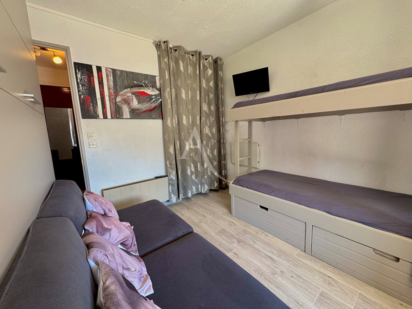 Situé dans une résidence idéalement placée face à un arrêt navette et à proximité immédiate des commerces, cet appartement T2 de 26.25 m² est en réalité la réunion de deux logements, offrant une belle surface et une configuration idéale pour accueillir famille et amis. Dès l'entrée, un hall dessert l'ensemble des pièces. Vous trouverez tout d'abord une première salle d'eau avec WC, puis une chambre confortable dotée d'une loggia avec vue directe sur les pistes. Cette chambre dispose d'un placard astucieusement aménagé en lit escamotable, optimisant l'espace. Le séjour, lumineux, s'ouvre lui aussi sur une loggia qui comprend un coin repas avec la même vue imprenable sur les montagnes. Une cuisine équipée et fonctionnelle complète l'espace de vie, avec de nombreux rangements. Enfin, une seconde salle d'eau avec WC apporte un vrai plus en termes de confort, surtout pour les séjours à plusieurs. Cet appartement est idéal pour profiter pleinement de la station été comme hiver. Les + : Vue dégagée sur les pistes Deux loggias Deux salles d'eau avec WC Cuisine équipée et rangements Navette gratuite au pied de la résidence Commerces accessibles à pied Deux casiers à ski Copropriété de 108 lots. Charges annuelles : 1296.28 euros.