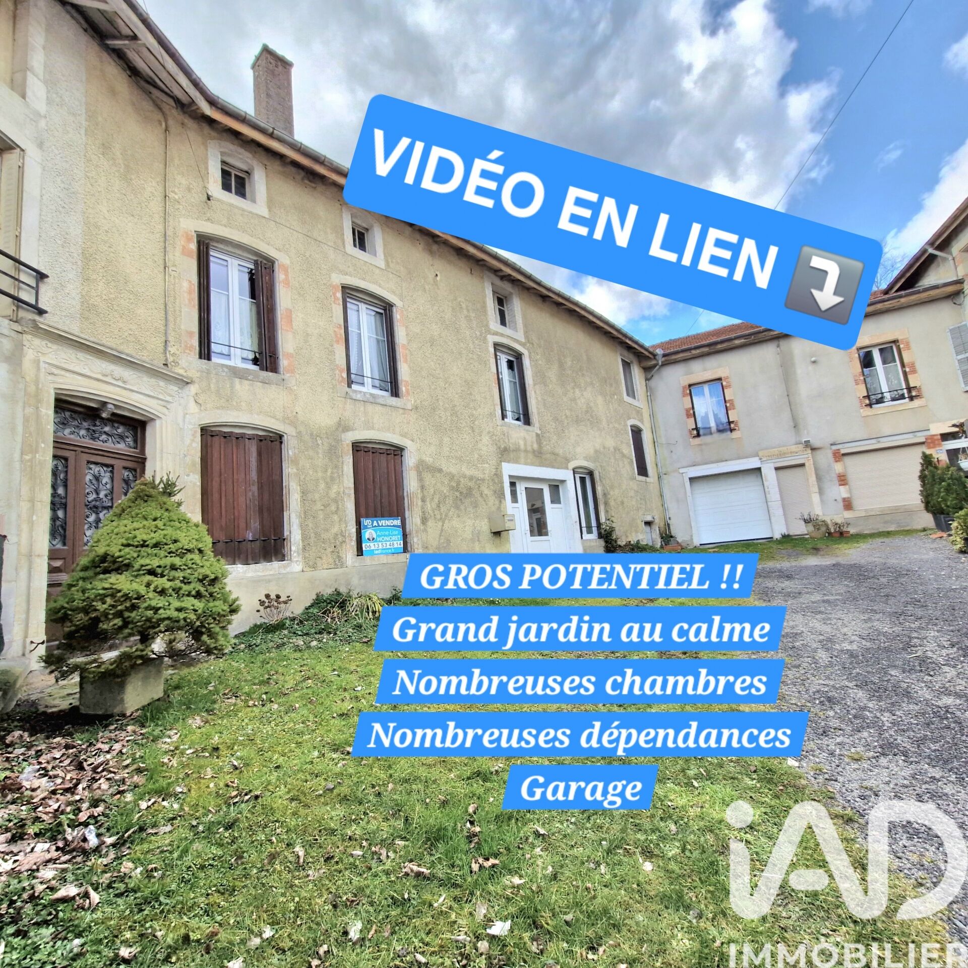 Iad France - Anne Lise Honoret vous propose : Ensemble de 2 MAISONS : une maison d'une surface de 156 m² avec GRAND GARAGE / JARDIN AU CALME AVEC GRAND COUVERT / PLUSIEURS GRANDES DEPENDANCES + une maison de 106 m² idéal INVESTISSEMENT LOCATIF ou autres projets. Chauffage fuel. Toutes les menuiseries sont récentes : double vitrage et oscillo-battantes, volets électriques sur l'arrière. Toiture entretenue, en bon état. Relié à l'assainissement collectif. Fibre. Taxe foncière : 1300¤ (p