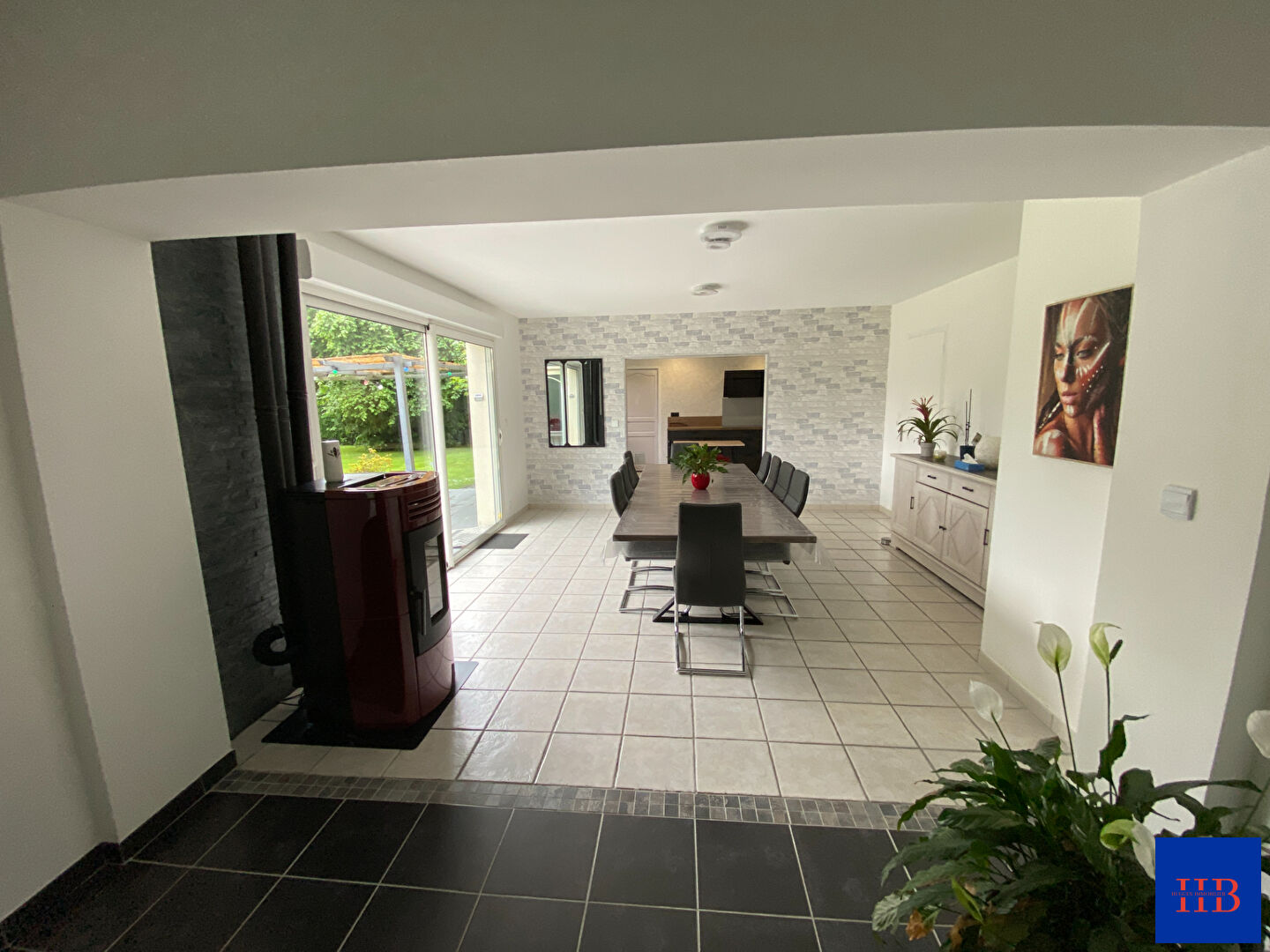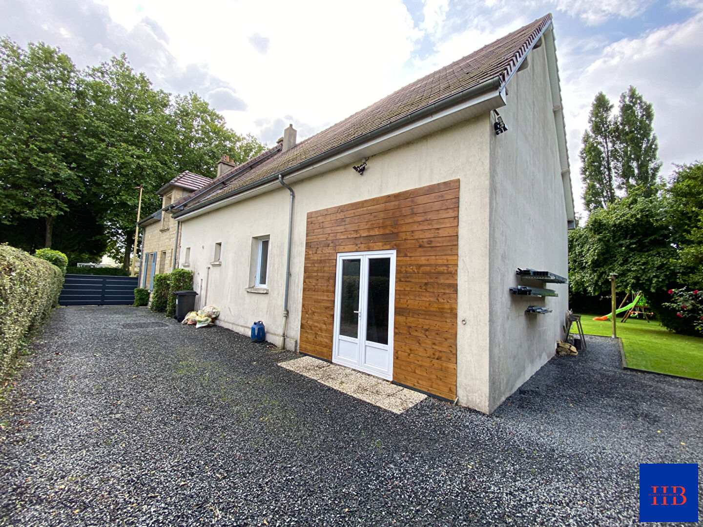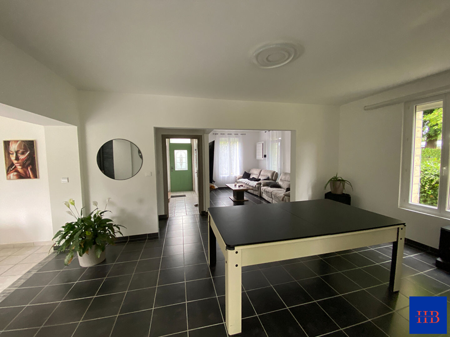 Proche Villers-Bocage, Maison d'environ 250m2 comprenant au rdc : entrée, ar-cuisine, buanderie, cuisine aménagée équipée neuve, véranda, séjour-salon d'environ 60m2 avec poêle à granulés, salle d'eau avec wc et 1 chambre. Au 1er étage : palier / mezzanine, sdb avec wc, salle de jeux et 5 chambres. Garage accolé, carport, terrasse, portail électrique. Travaux récents : Ballon thermodynamique, vmc, volets roulants solaires, peintures.... Terrain clos et arboré avec puits d'environ 1200m2. Maison raccordée à la fibre.