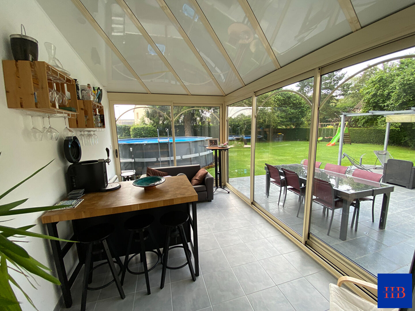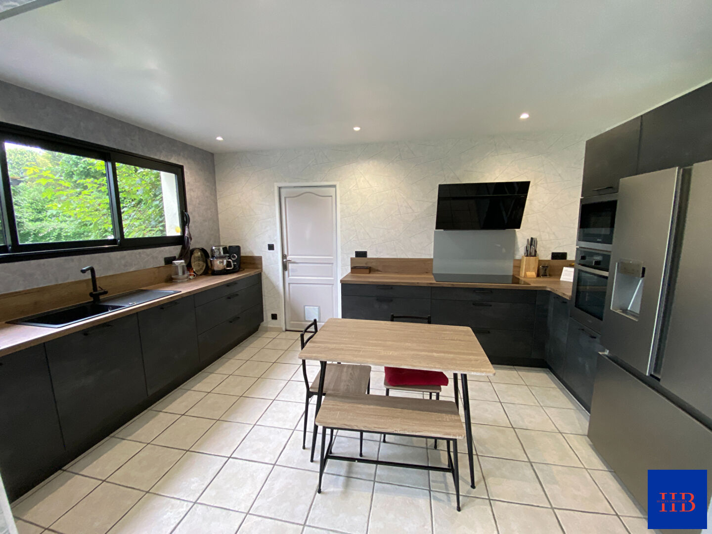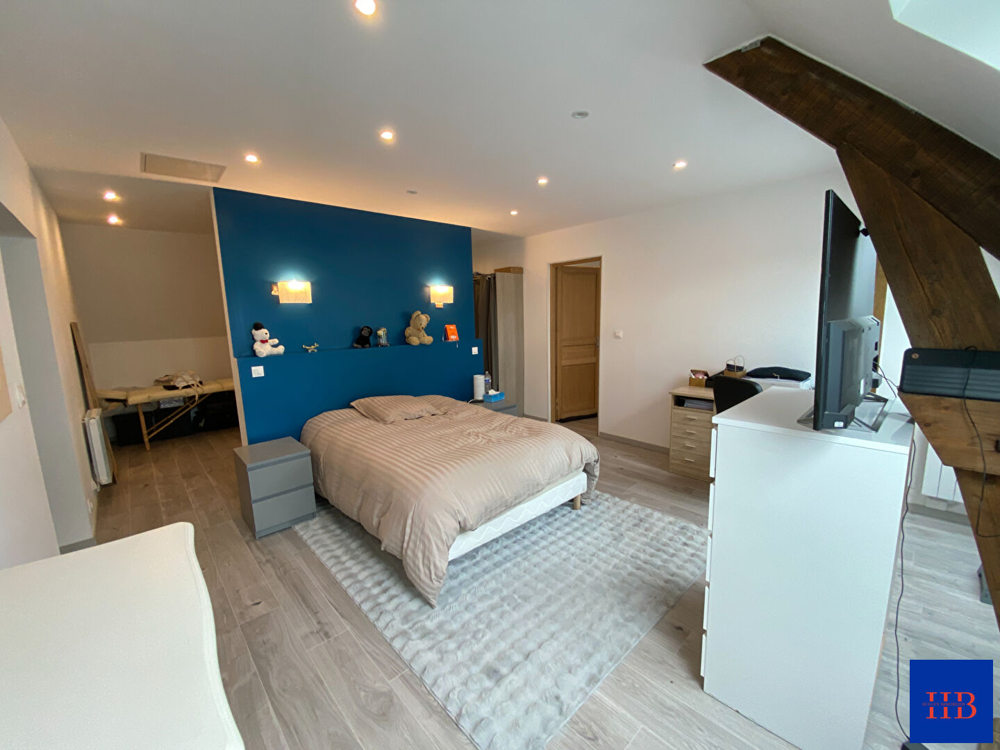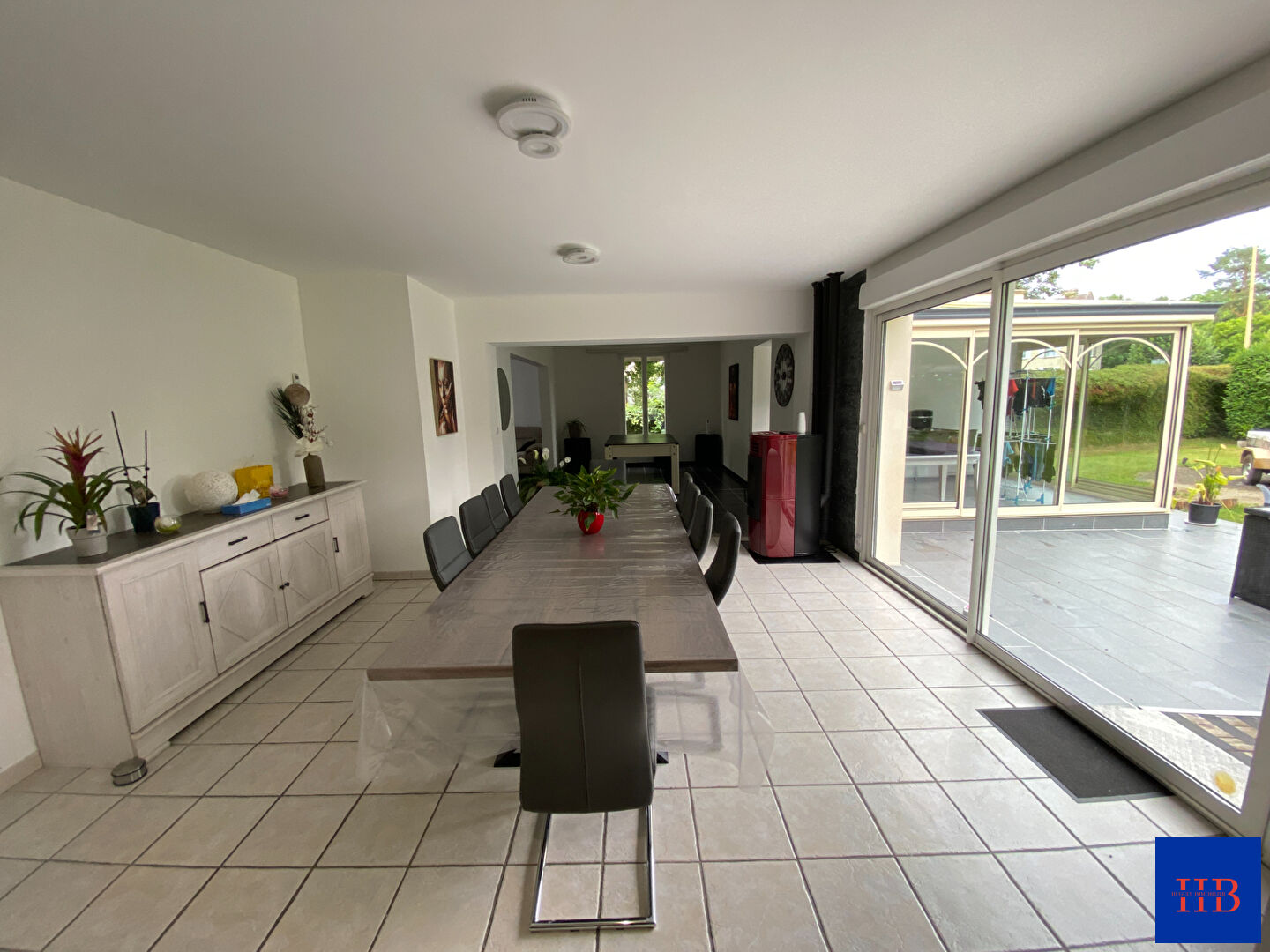 Proche Villers-Bocage, Maison d'environ 250m2 comprenant au rdc : entrée, ar-cuisine, buanderie, cuisine aménagée équipée neuve, véranda, séjour-salon d'environ 60m2 avec poêle à granulés, salle d'eau avec wc et 1 chambre. Au 1er étage : palier / mezzanine, sdb avec wc, salle de jeux et 5 chambres. Garage accolé, carport, terrasse, portail électrique. Travaux récents : Ballon thermodynamique, vmc, volets roulants solaires, peintures.... Terrain clos et arboré avec puits d'environ 1200m2. Maison raccordée à la fibre.