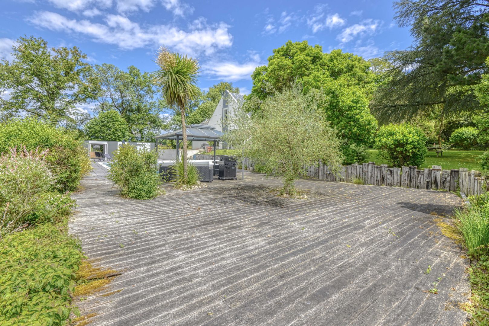 EXCLUSIVITÉ - CÔTÉ PARTICULIERS NANTES. Au coeur d'un écrin de verdure, sur les hauteurs de Mauves-sur-Loire, à proximité des transports et des commerces, cette splendide villa sur deux niveaux agencée avec goût et aux prestations abouties dispose d'une superficie utiles de 240 m2. Un hall d'entrée dessert un bel espace de vie de plus de 80 m2 baigné de lumière de par ses nombreuses ouvertures le tout en accès direct à une terrasse extérieure avec vue imprenable sur la piscine et son jardin verdoyant. La pièce de vie est agrémentée d'une cheminée en insert ouverte sur une cuisine prémium équipée et aménagée. Une arrière cuisine ainsi qu'une buanderie complètent l'espace de vie. La partie nuit se compose de deux chambres dont une suite parentale venant parfaire la vie de plain-pied. A l'étage l'espace nuit comprend trois belles chambres dont deux suites parentales, une salle de bains ainsi que des W.C. séparés. L'émerveillement se poursuit à l'extérieur avec environ 5000 m2 de terrain, une vaste terrasse entourant la piscine, un pool house, un terrain de tennis ainsi que deux dépendances mettant un point final à ce bien d'exception située à l'abri des regards. (2.65 % honoraires TTC à la charge de l'acquéreur.)