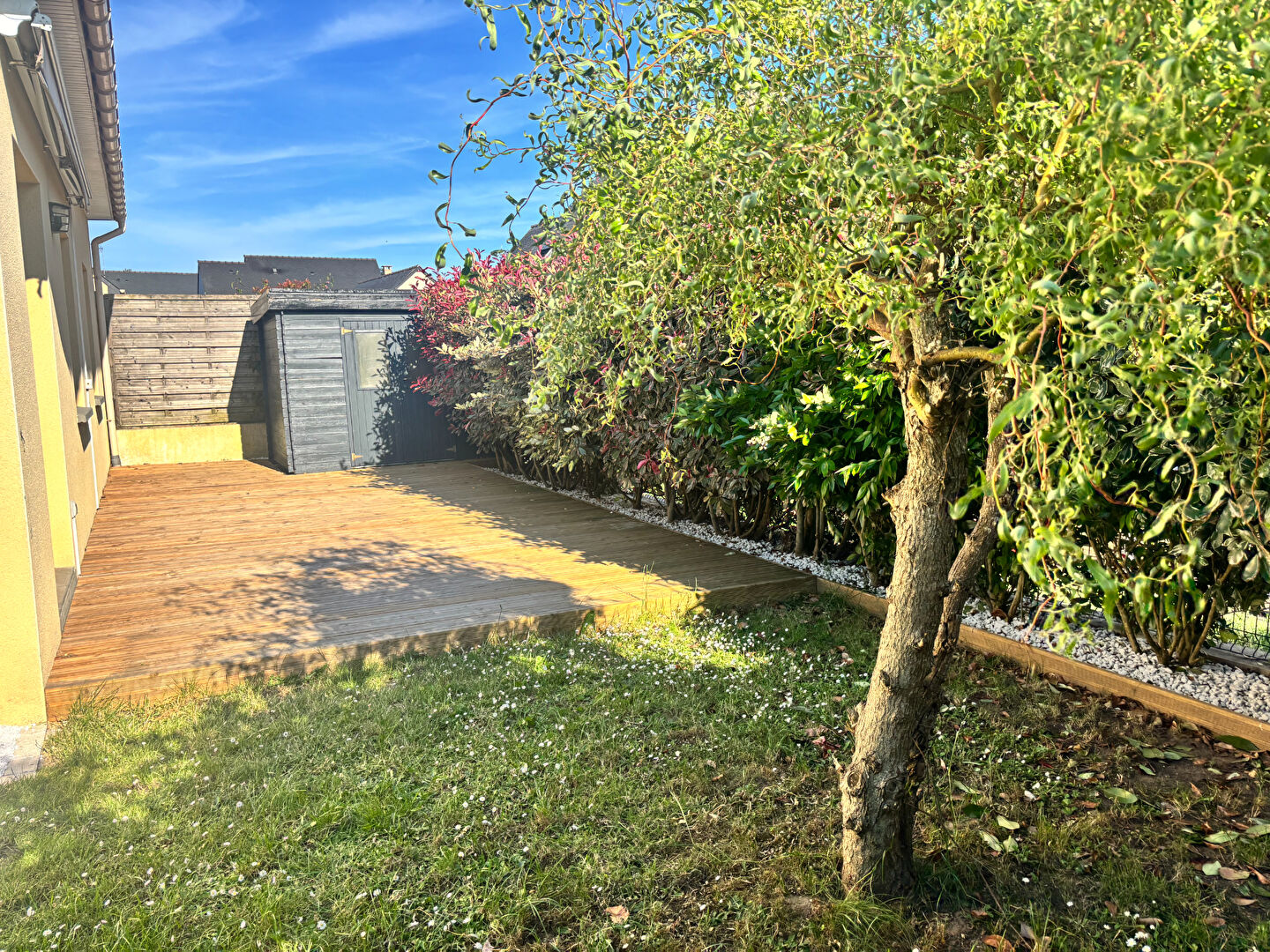 BOURG DES COMPTES - 20 km au Sud de Rennes Maison en parfait état construite en 2012, au calme, à 5mn à pied de la Courbe ainsi que de la gare SNCF et 10 mn à pied du centre ville et des commerces offrant séjour-salon avec poêle à granulés, cuisine ouverte aménagée et équipée donnant sur terrasse plein Sud, une chambre et sa salle de bain au rdc, salle d'eau, wc et 3 grandes chambres à l'étage. Garage avec coin buanderie, jardin, cour bitumée, cabane de jardin. Production d'eau chaude avec ballon et chauffage électrique. DPE classé C en terme de consommation et A en gaz à effet de serre. Travaux de peinture et rénovation de la sde/sdb récents. Store banne sur la terrasse bois refaite à neuf. Parcelle de 337 m2. Prix de vente de 279 500 euros FAI comprenant un forfait d'honoraires de négociation de l'agence HBG IMMOBILIER de 5000 euros HT soit 6000 euros TTC de Frais d'agence à la charge du vendeur (2,15%). BOURG DES COMPTES : Ville dynamique proposant tous les commerces de proximité, écoles primaires privée et publique, collège à 10 mn avec desserte en bus scolaire. 5 mn à pied de la gare de Guichen - Bourg des Comptes. 20 mn en voiture de Rennes 50 mn de Nantes.