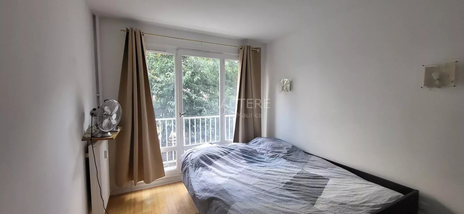 Dans immeuble des années 80 avec ascenseur, au 1er étage, bel appartement offrant une entrée avec placard sur séjour avec cuisine ouverte équipée donnant sur balcon, une chambre avec rangement, un bureau ou dressing, une salle d'eau avec w-c. Chauffage et chaude collectifs. Commerces à proximité et métro ligne 9 et 10 et RER C. Bail en cours.