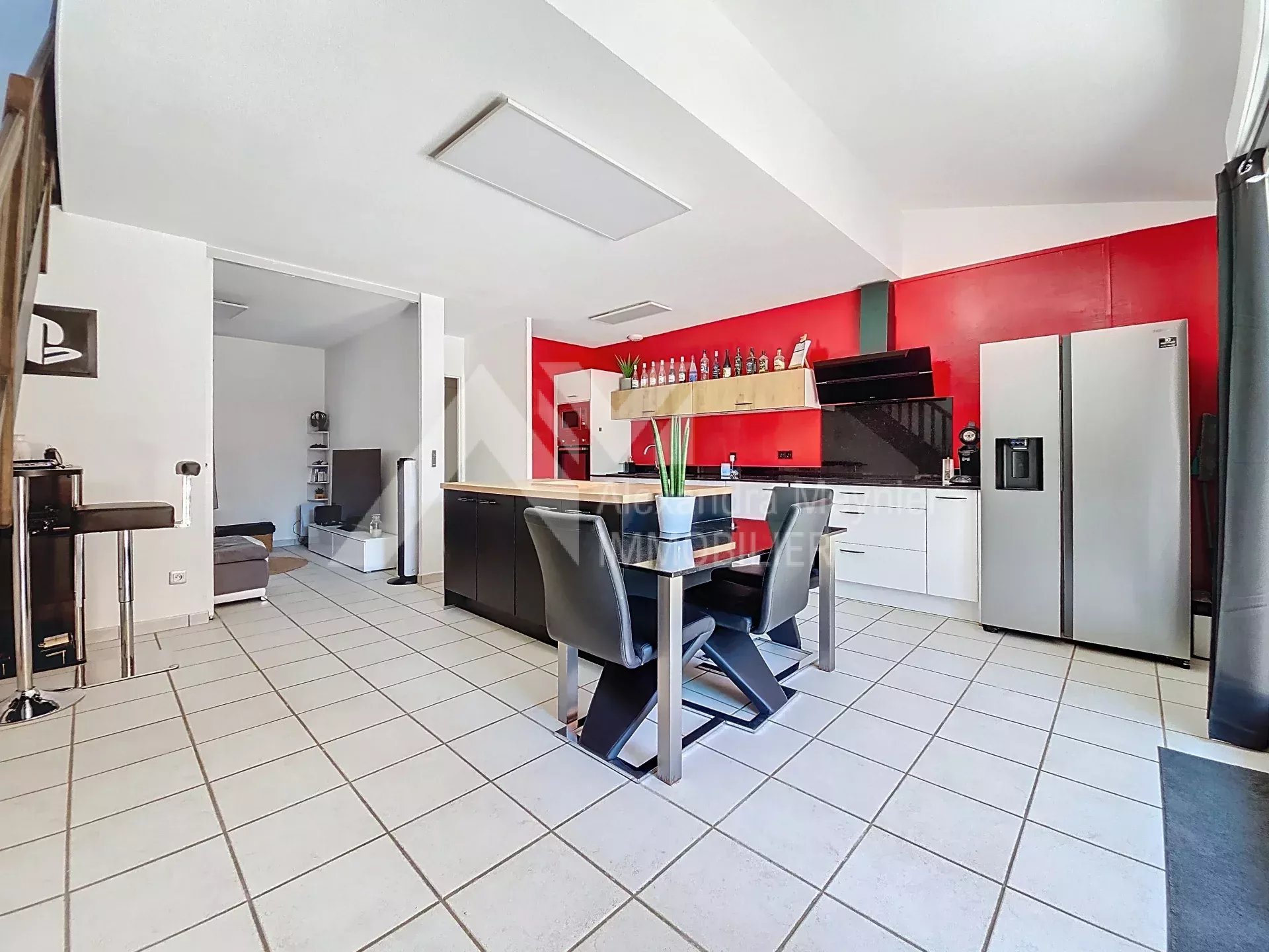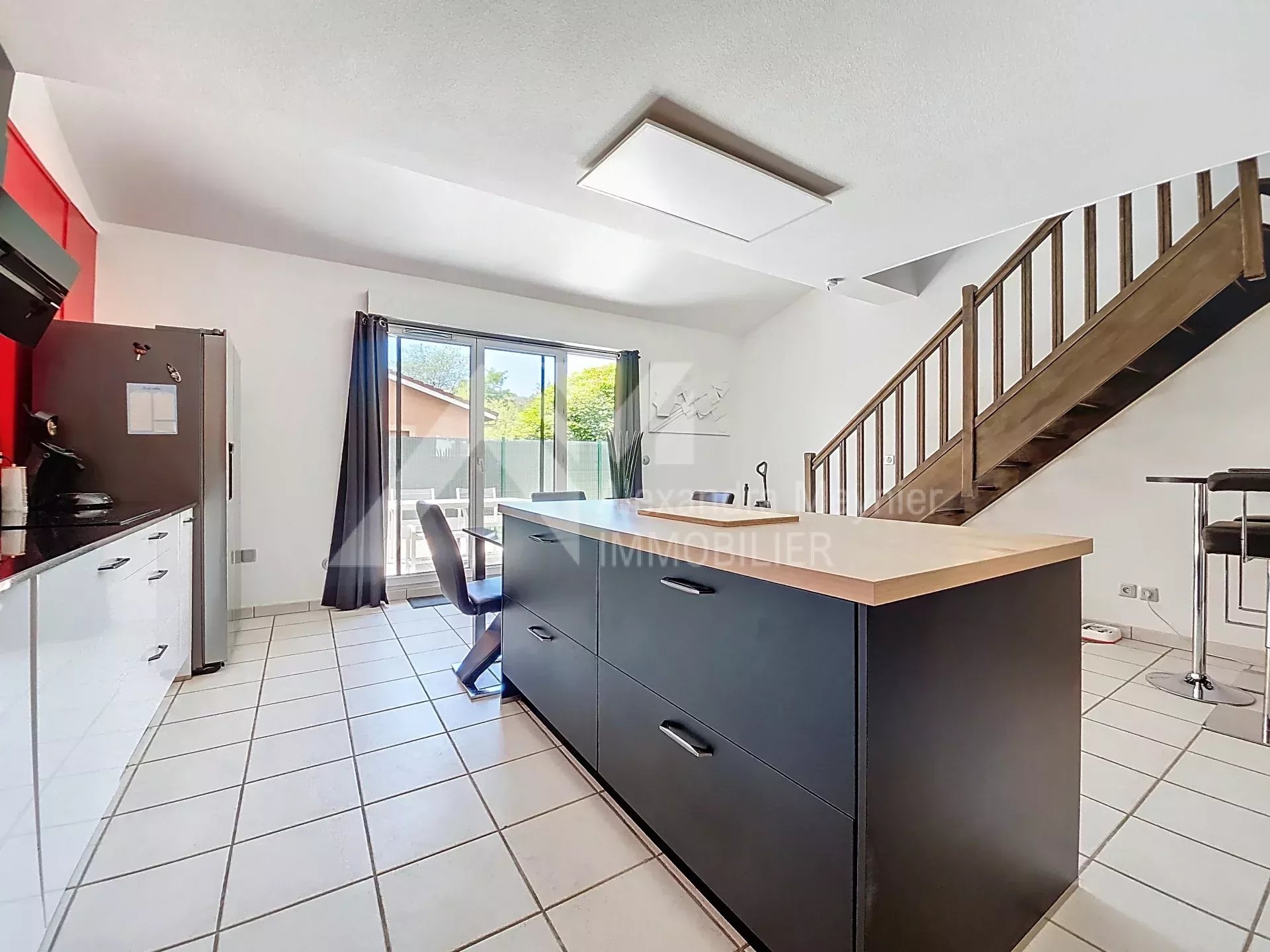 Belle villa T3/T4 dans résidence sécurisée avec piscine – 75 m² – Jardin & Garage Située au cœur d’une belle copropriété sécurisée et au calme de 2007, à proximité immédiate de toutes les commodités à pied (écoles, collège, lycée, commerces, gare…), venez découvrir cette agréable maison mitoyenne, offrant une superficie habitable d’environ 75.40 m² sur deux niveaux. Au rez-de-chaussée, elle se compose d'une entrée avec placard, d'une cuisine équipée neuve et d'un espace salon pouvant être aménagé en chambre selon vos besoins. Accès direct à un jardin clos d’environ 60 m² avec terrasse. À l’étage, deux chambres avec placards, une salle de bains et toilettes séparés. Un garage d’environ 16m² avec mezzanine vient compléter ce bien, offrant un espace de stockage. Les plus : résidence sécurisée avec piscine, environnement familial, chauffage électrique individuel, maison en très bon état. Montant des charges de copropriété : 292 € / trimestre, incluant l’eau froide. À visiter sans tarder ! Le bien comprend 1 lot, et il est situé dans une copropriété de 132 lots (les charges courantes annuelles moyennes de copropriété sont de 1168 € et le syndicat des copropriétaires ne fait pas l'objet d'une procédure citée à l'article L. 721-1 du code de la construction et de l'habitation).
