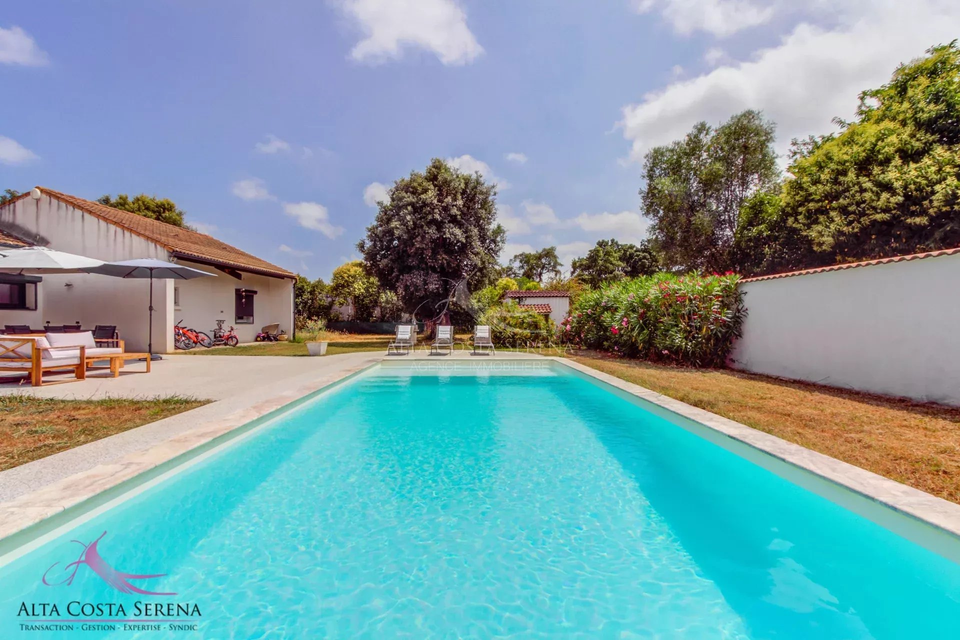 Maison de plain-pied de 127m² habitables environ avec piscine chauffée et grand terrain. À seulement 10 minutes de la plage et proche des commerces, cette belle maison offre un cadre de vie agréable sur un vaste terrain clos de 1 973 m², équipé d’un portail électrique. D’une surface généreuse, elle comprend 3 chambres, dont une suite parentale avec dressing, une salle de bain avec baignoire et douche, ainsi que deux belles mezzanines offrant des espaces supplémentaires. Le salon chaleureux avec cheminée s’ouvre sur une cuisine moderne et fonctionnelle, parfaite pour les moments de convivialité. Une buanderie vient compléter les nombreux rangements. À l’extérieur, profitez d’une piscine au sel chauffée, d'une terrasse exposée ouest de 110m² et d’un grand garage. La maison est construite avec des matériaux de qualité, dispose de fenêtres en aluminium double vitrage et de la climatisation pour un confort optimal toute l’année. Nichée dans un environnement paisible tout en restant à proximité des commodités, cette maison combine charme, modernité et praticité. Une opportunité rare à découvrir rapidement. Contactez-nous pour une visite.