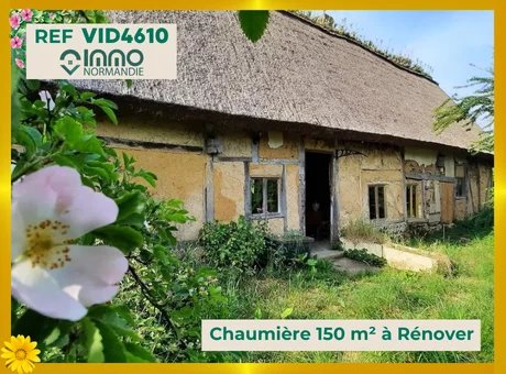 En campagne, commerces à 8 minutes en voiture. Nous vous proposons cette chaumière de style normand. Le toit de chaume a été refait en 2022, reste à imaginer la suite... Au rez-de-chaussée 74 m² à réinventer A l'étage 74 m² à imaginer A l'extérieur: - Grande dépendance attenante à la maison + Garage - Beau jardin + mare Prévoir une rénovation totale ( isolation, électricité, assainissement, sanitaires ....) Contact : Benjamin ROMUALD - 06.33.72.85.24. - entrepreneur individuel (E.I.) agissant en sa qualité d'agent commercial, inscrit au Registre Spécial des Agents Commerciaux, sous le numéro RSAC 812 264 455 00013