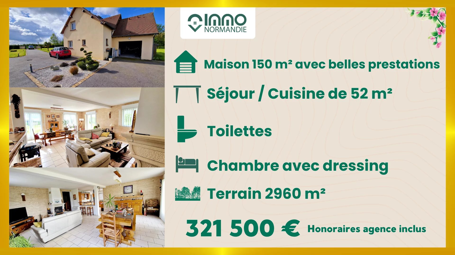 BELLE DE JOUR COMME DE NUIT DESCRIPTIF: - Contemporaine de 150m² habitables - 53m²(triple exposition) de séjour avec cheminée insert ET cuisine aménagée/équipée - arrière cuisine/buanderie - 1 chambre avec dressing au RDC + 3 chambres dont 1 avec dressing à l'étage - 1 salle de bain (baignoire et douche) - 2 toilettes - GARAGE de 25m² (accès par l'intérieur) BELLES PRESTATIONS : - MAISON 2006 - 150 m² habitables - DPE B 99 - GES A 3 - Consommation annuelle estimée ENTRE 800€ ET 1140€/AN - Chauffage central par POMPE A CHALEUR Air/Eau - Panneaux Photovoltaiques - Ballon d'eau chaude Thermodynamique - Cheminée avec insert - Double vitrage + volets électriques - Terrasse avec stores bannes - SPA - Piscine hors-sol chauffée - KOTA finlandais - Espace BRASERO pour 20 personnes environ - Allée et aire de parking bitumées - Porte de garage + portail automatisés + interphone - TERRAIN DE 2960 m² environ cloturé et planté EMPLACEMENT: - A 7 minutes en voiture des commerces - services - écoles et collège - A 15 minutes en voiture de la gare de Bernay CONTACT: Benjamin Romuald - 06.33.72.85.24 - Entrepreneur Individuel (E.I) agissant en sa qualité d'agent commercial, inscrit au Registre Spécial des Agents Commerciaux sous le numéro RSAC 812 264 455 00013.