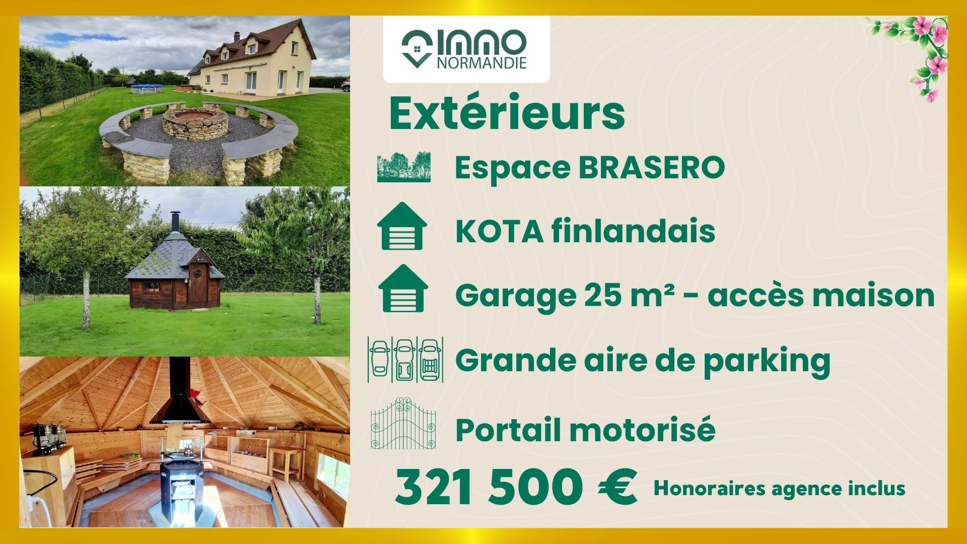 BELLE DE JOUR COMME DE NUIT DESCRIPTIF: - Contemporaine de 150m² habitables - 53m²(triple exposition) de séjour avec cheminée insert ET cuisine aménagée/équipée - arrière cuisine/buanderie - 1 chambre avec dressing au RDC + 3 chambres dont 1 avec dressing à l'étage - 1 salle de bain (baignoire et douche) - 2 toilettes - GARAGE de 25m² (accès par l'intérieur) BELLES PRESTATIONS : - MAISON 2006 - 150 m² habitables - DPE B 99 - GES A 3 - Consommation annuelle estimée ENTRE 800€ ET 1140€/AN - Chauffage central par POMPE A CHALEUR Air/Eau - Panneaux Photovoltaiques - Ballon d'eau chaude Thermodynamique - Cheminée avec insert - Double vitrage + volets électriques - Terrasse avec stores bannes - SPA - Piscine hors-sol chauffée - KOTA finlandais - Espace BRASERO pour 20 personnes environ - Allée et aire de parking bitumées - Porte de garage + portail automatisés + interphone - TERRAIN DE 2960 m² environ cloturé et planté EMPLACEMENT: - A 7 minutes en voiture des commerces - services - écoles et collège - A 15 minutes en voiture de la gare de Bernay CONTACT: Benjamin Romuald - 06.33.72.85.24 - Entrepreneur Individuel (E.I) agissant en sa qualité d'agent commercial, inscrit au Registre Spécial des Agents Commerciaux sous le numéro RSAC 812 264 455 00013.