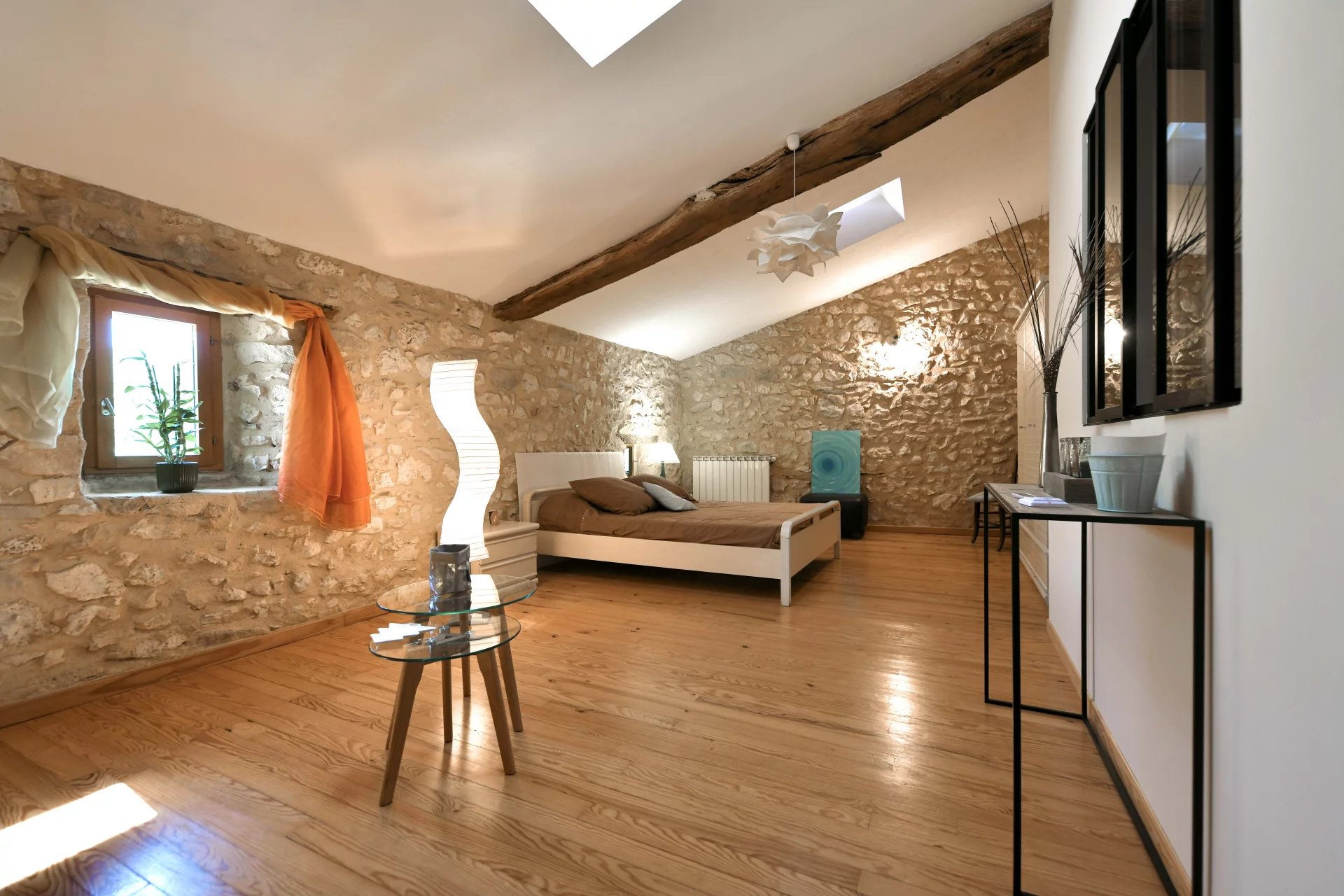 Charme et Authenticité, beaux éléments architecturaux 3 chambres, 1 salle de bains Grange de 50 m² à aménager, stationnement privatif Au cœur d’un beau village à 18 kms d’Uzès