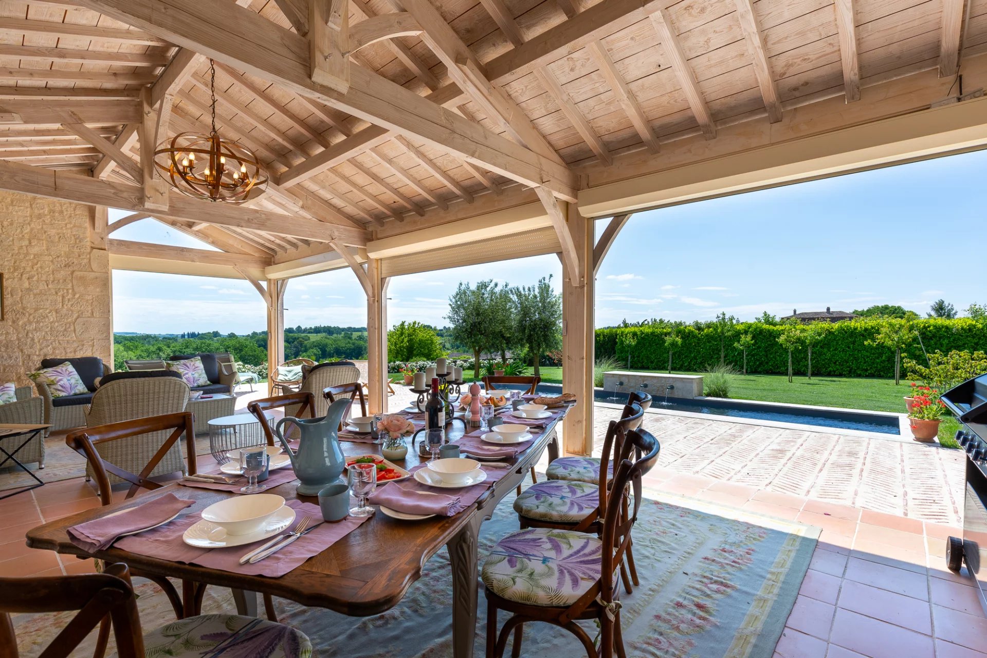 La Tour Sud est une résidence unique et historique, offrant un style de vie raffiné au cœur des célèbres vignobles primés du sud-ouest de la France. Dominant son environnement depuis une position surélevée, la propriété bénéficie de vues imprenables sur la campagne environnante, visibles depuis de grandes fenêtres qui apportent une abondante lumière naturelle à l’intérieur. Avec 350 m² d’espace habitable, la propriété a été aménagée avec un goût exquis, alliant grandeur architecturale et confort contemporain, et comprend une cuisine et des appareils électroménagers de haute qualité. Les espaces de réception sont généreux et adaptés aussi bien à un usage privé qu’à des réceptions. La cuisine/salle à manger, avec ses magnifiques plafonds en voûte en berceau, constitue un espace impressionnant pour des réunions de famille ou des dîners entre amis raffinés. À l’étage, chaque chambre dispose de sa propre salle de bain privative, et le dernier niveau dévoile un vaste grenier de 95 m², offrant un grand potentiel de transformation en atelier d’artiste, cinéma privé, salle de sport ou suite d’invités luxueuse (sujet à l'obtention des autorisations nécessaires). Au niveau du jardin, un bel escalier en pierre descend vers un espace accueillant pensé pour les plaisirs estivals. Un spacieux salon agrémenté d’une cheminée en pierre y est accompagné d’une cave à vin climatisée, et une cuisine d’été parfaitement équipée s’ouvre directement sur de magnifiques jardins paysagers et un parking privé. Une piscine au sel et une élégante maison d’été complètent ce havre extérieur, idéal pour des moments de calme ou des rassemblements conviviaux. Facilement accessible depuis les aéroports de Bordeaux et de Bergerac, la propriété se situe dans un village dynamique et convivial, doté d’un restaurant réputé, et à seulement quelques minutes du prestigieux Golf du Château des Vigiers. Cette demeure exceptionnelle est proposée en parfait état et prête à être appréciée dès votre arrivée. Rare, raffinée et riche de caractère, La Tour Sud est prête à écrire son prochain chapitre. Contactez-nous pour organiser une visite et découvrir par vous-même son charme.