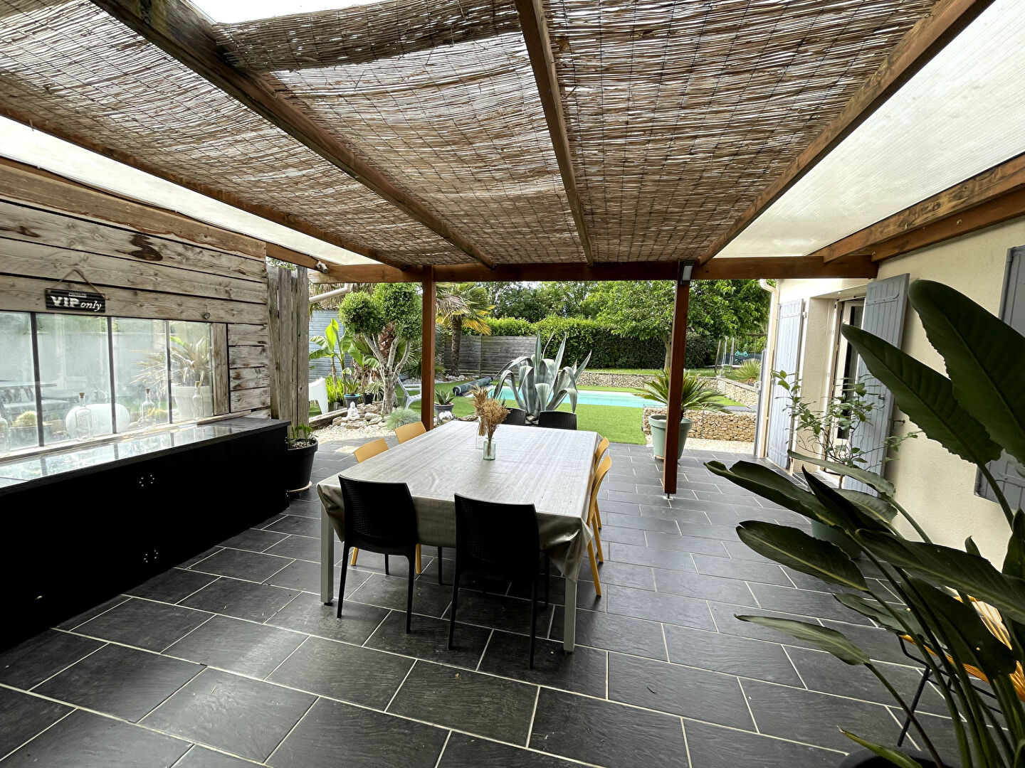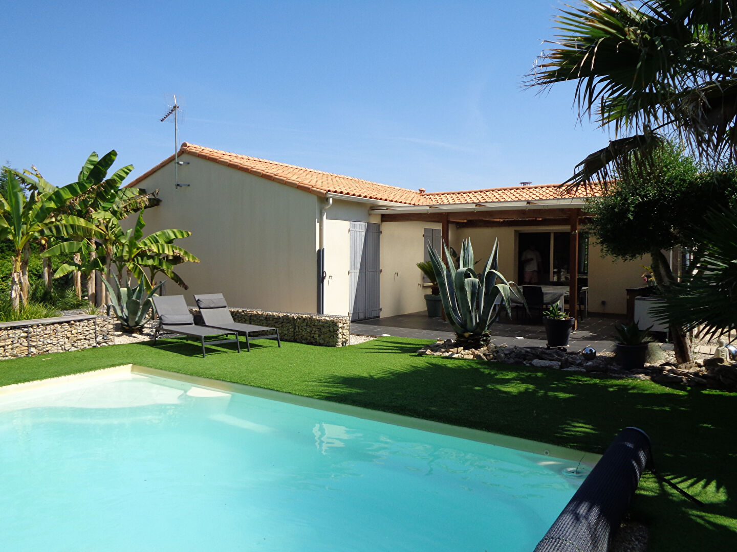 Fors, beau pavillon individuel de plain pied en excellent état sur terrain clos et paysager de 1200m2 comprenant/ Entrée avec placard, belle pièce de vie de 55m2 avec cuisine aménagée et équipée donnant sur terrasse et piscine, salon, suite parentale avec dressing et salle d'eau privative, bureau, cellier, wc, dégagement, trois chambres avec placard, salle d'eau avec wc. Local piscine, dépendance et garage. Construction de 2003 d'une superficie habitable de 165m2. Lumineuse, conviviale et très agréable à vivre. Chauffage électrique avec poêle à pellet dans la pièce de vie. (3.64 % honoraires TTC à la charge de l'acquéreur.)