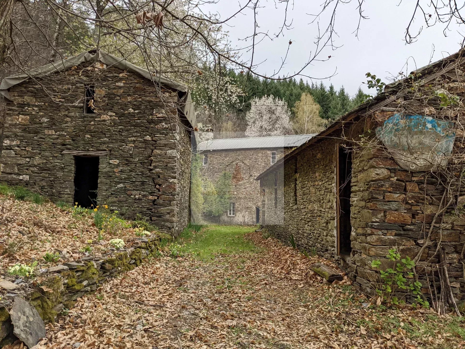 Dans une clairière au calme loin de toute nuisance, propriété du XVIIIème, à recréer entièrement, 3 bâtiments en schiste d'environ 253 m², 125 m² et 62 m² structurellement en bon état mais vide, vous pourrez laisser libre cour à vos envies. Une construction récente de 45 m² avec sanitaires. Alimentation en eau de ville. Il y a une source, la fosse septique à mettre aux normes, il n’y a pas de réseau EDF. Terrain relativement plat de 22 640 m². Châtaigniers, fruitiers et prés. Accès par une piste en terre carrossable.