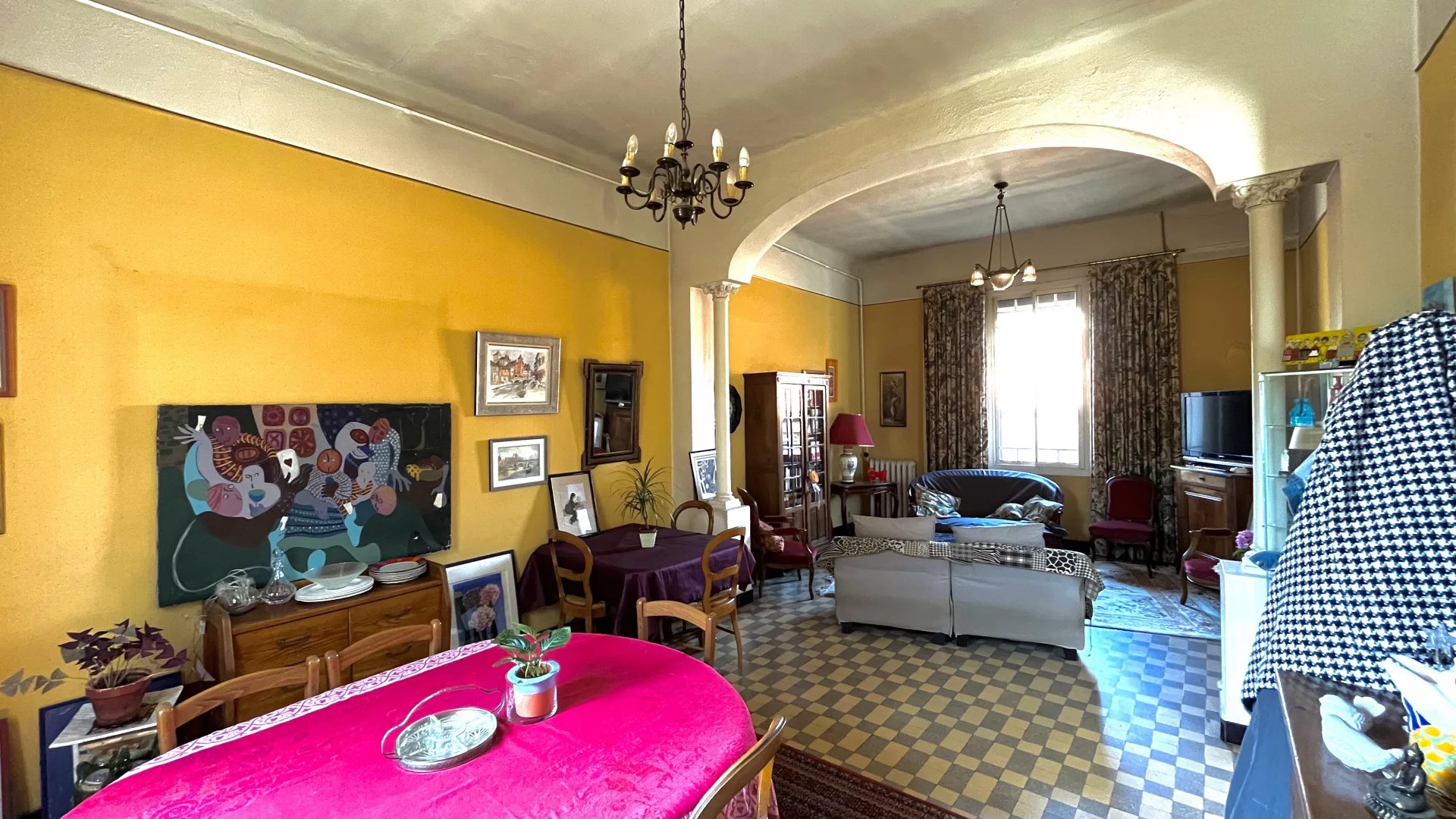 Exceptionnelle bâtisse ! Au cœur du quartier de Mar Vivo, Marché et plage des Sablettes à pieds, cette maison de type 4 d'environ 100 m2 de grande valeur architecturale liée à l'histoire locale, à fort cachet (hauts plafonds, moulures), vous propose : 1 hall d'entrée, 1 séjour double, 1 cuisine, 1 arrière cuisine, 2 grandes chambres, Demi étage à aménager, Le terrain d'environ 390 m2, vous offre plusieurs espaces de vie : Pergola, Terrasses sous tonnelle ombragée, Possibilité de stationner plusieurs véhicules, Garage et dépendances aménageables.
