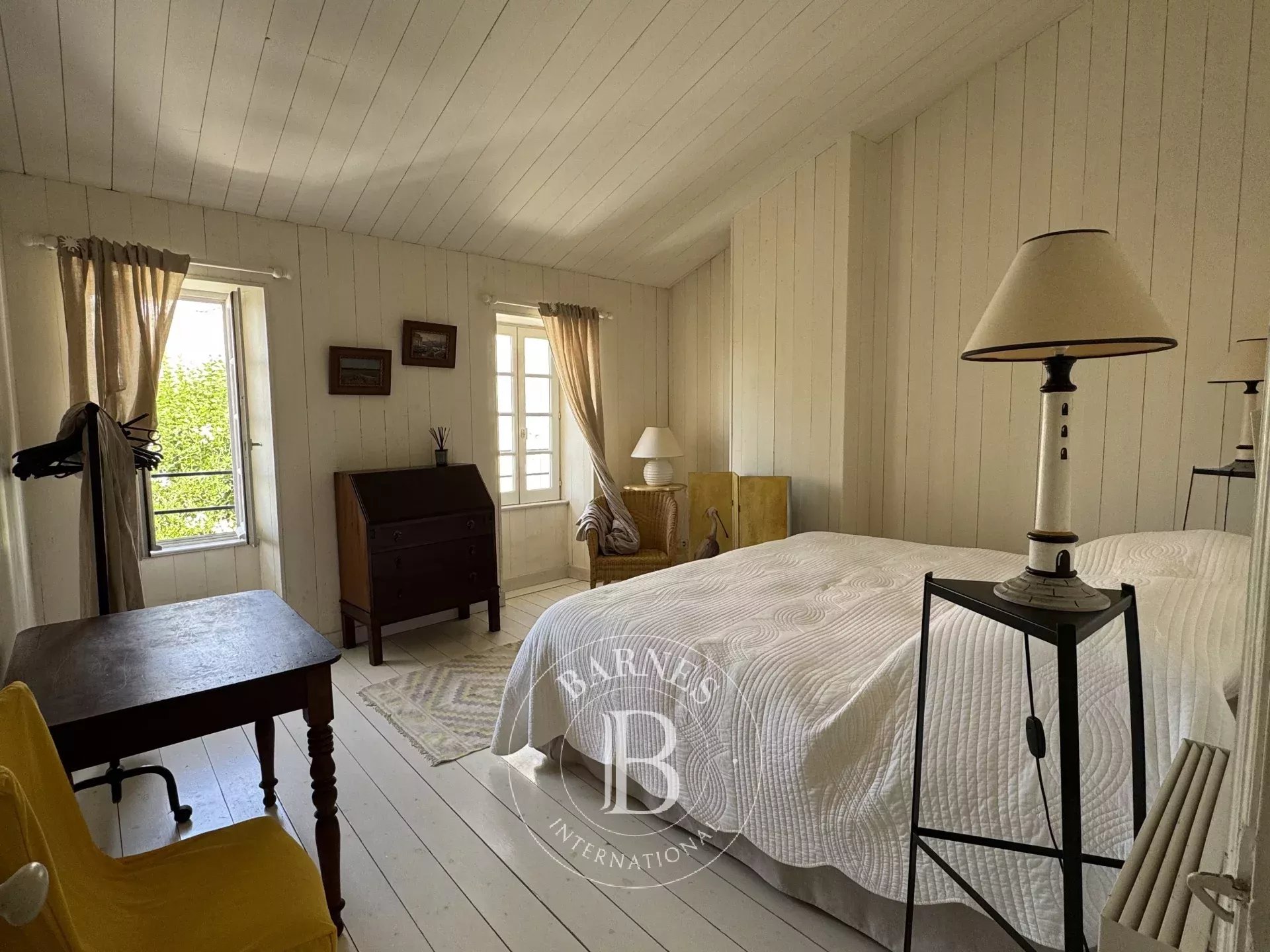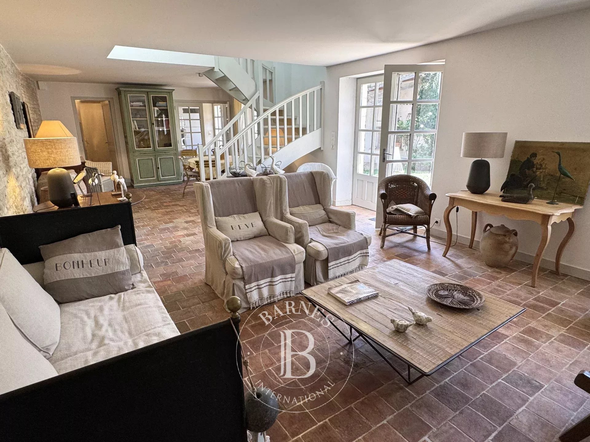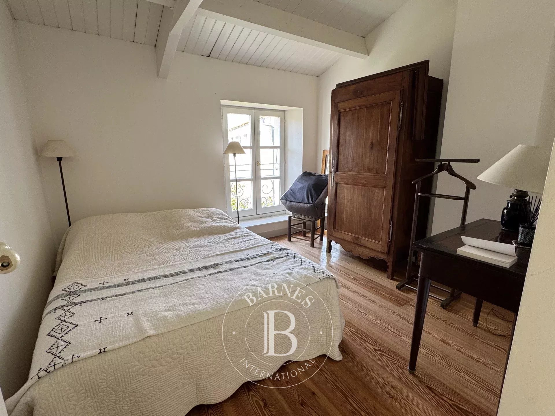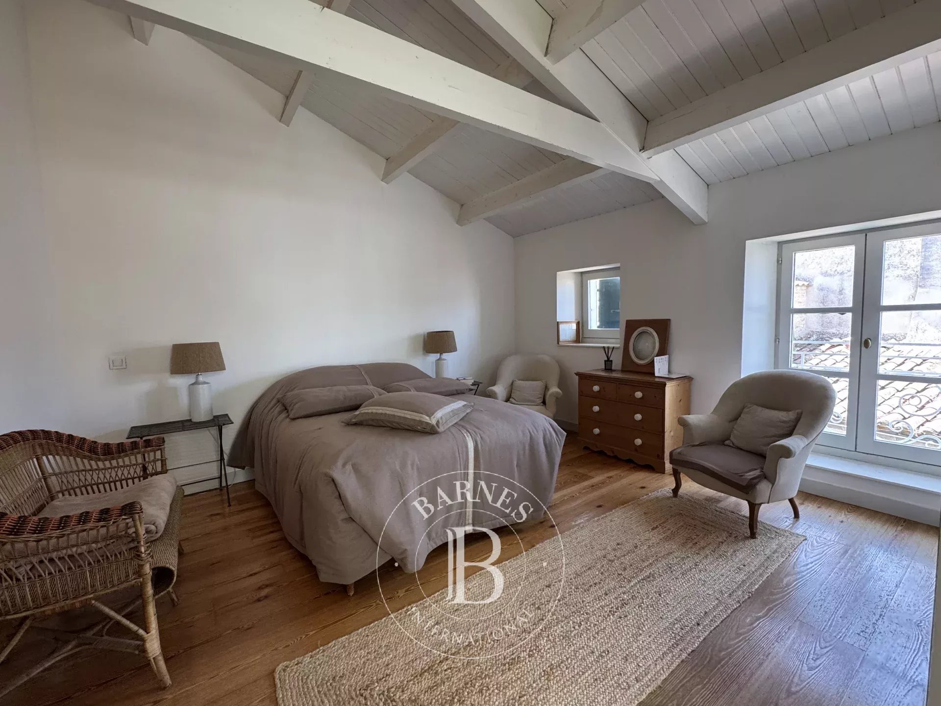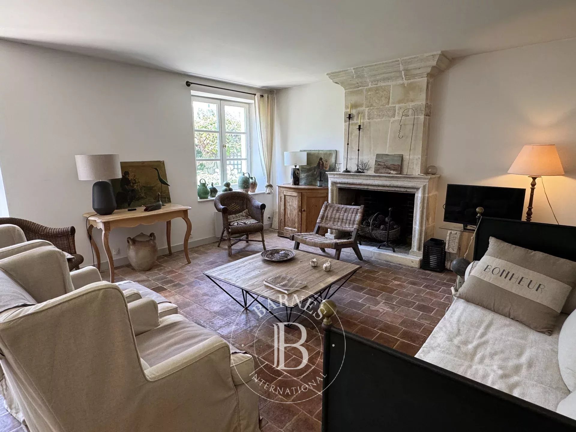 À 2 pas du centre village, charmante maison de village avec une annexe et un jardin. La partie principale se compose d'un séjour avec cheminée, une cuisine séparée. À l'étage, le palier dessert 3 chambres et 2 salles d'eau/bains. En annexe, au rez-de-chaussée, 1 chambre avec une salle de bains, un bureau. À l'étage, 2 autres chambres. Jardin ensoleillé avec terrasse, préau avec cheminée et un local vélos.