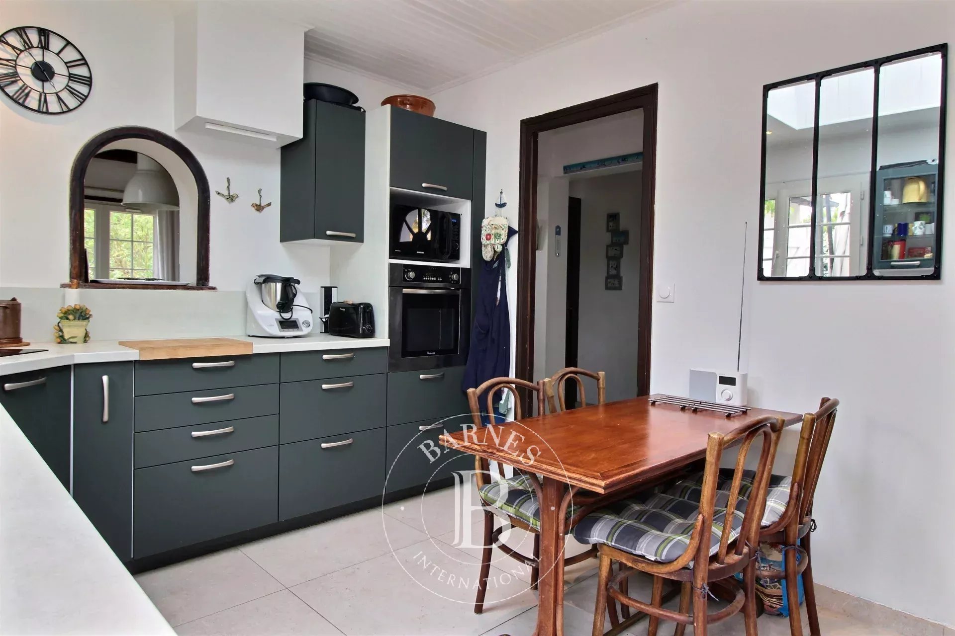 Maison de 145 m² située tout proche de la plage. Accessible par une ruelle partagée. Située en zone blanche. la propriété offre un potentiel de transformation intéressant avec peu de contraintes d'urbanisme. Construite en 1971 et rénovée en 2005. elle comprend un salon avec cheminée et poêle. une cuisine fermée refaite il y a quatre ans. 5 chambres dont deux en annexe. 3 salles d’eau. un espace buanderie extérieur. une cave et un grand garage de 36 m² en sous sol.