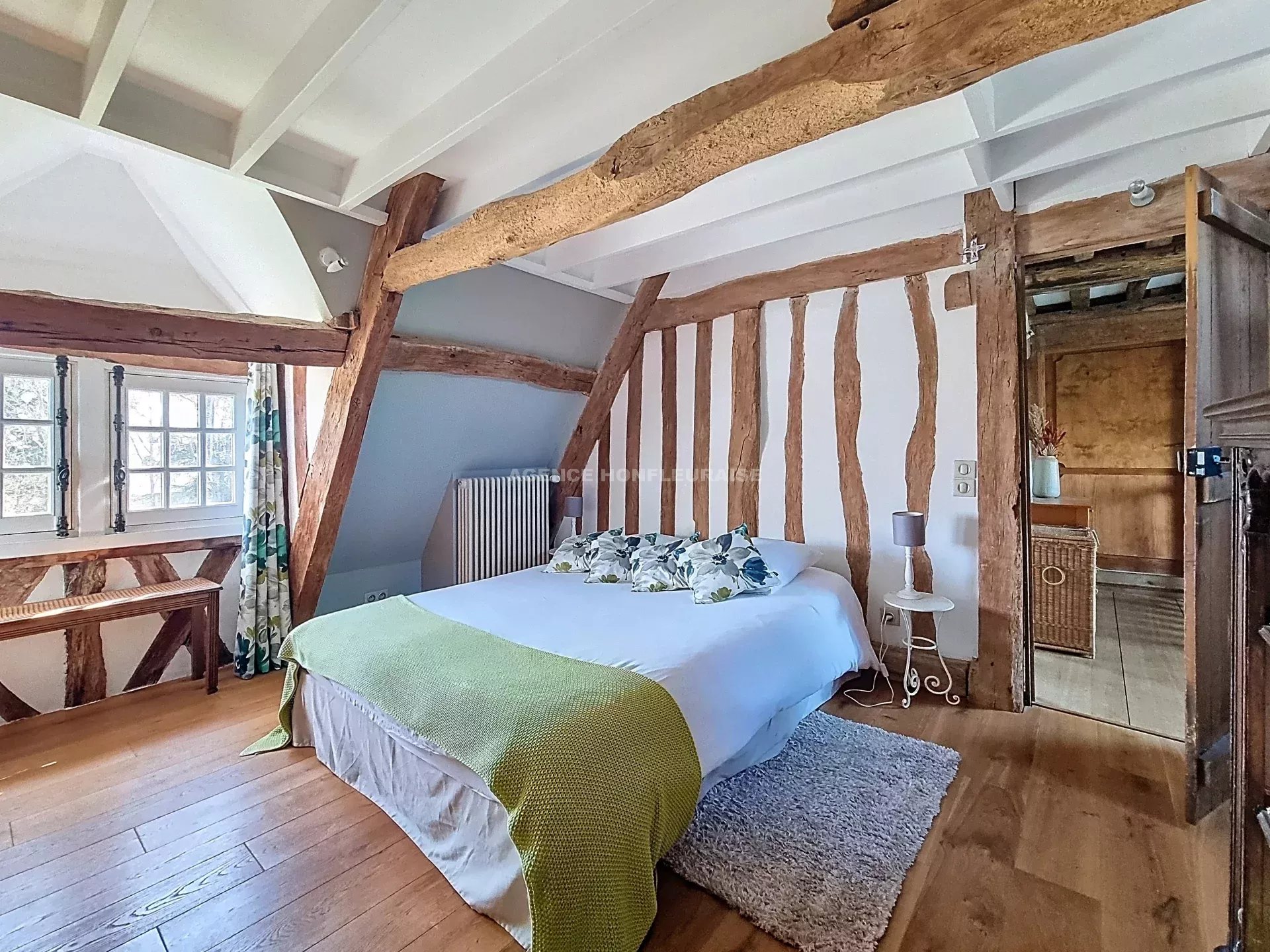Dans la campagne, dans un environnement champêtre à 15 minutes de Honfleur, manoir en pierre dont les premiers éléments datent du XVème siècle et son corps de ferme comprenant un pressoir transformé en habitation, une remise et une bergerie le tout sur un terrain de 3 hectares répartis en parc, prairie et bois. Le manoir sur 4 niveaux avec une surface habitable de 240 m²comprend : Au rez-de-chaussée : entrée, cuisine dînatoire, séjour-salon avec cheminée, toilettes ; Au 1er étage : une suite parentale (33 m²) avec murs en pierre et cheminée, sa salle d’eau attenante avec toilettes, une grande chambre (17 ²) avec boiseries, cheminée et sa salle d’eau attenante également avec toilettes et un bureau ; Au 2nd étage mansardé : une chambre-bureau, deux chambres avec mezzanine, une salle d’eau avec toilettes, une salle de jeu avec partie dressing ouvert. Sous-sol vouté semi-enterré à usage de buanderie. Très beaux volumes, escalier en pierre. Le pressoir sur 2 niveaux, d’une surface habitable de 85 m² comprend - au rez-de-chaussée un grand séjour avec cheminée-insert, une cuisine, une salle d’eau avec toilettes, une chambre ; - au 1er étage mansardé : une chambre en mezzanine et une chambre fermée. Dépendances : bergerie, remise. Belle propriété pouvant également accueillir des chevaux avec sa propre stelle de pansage.