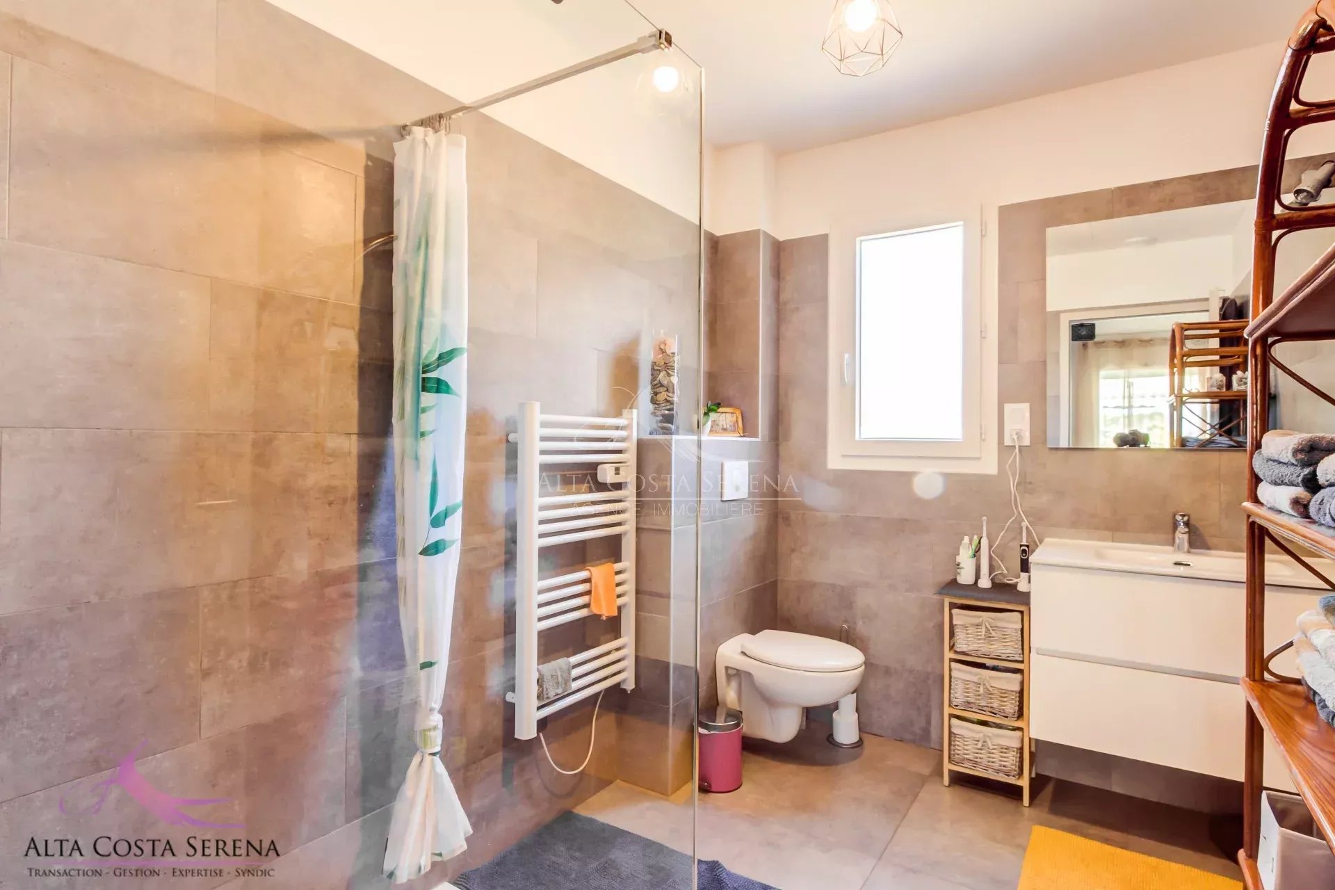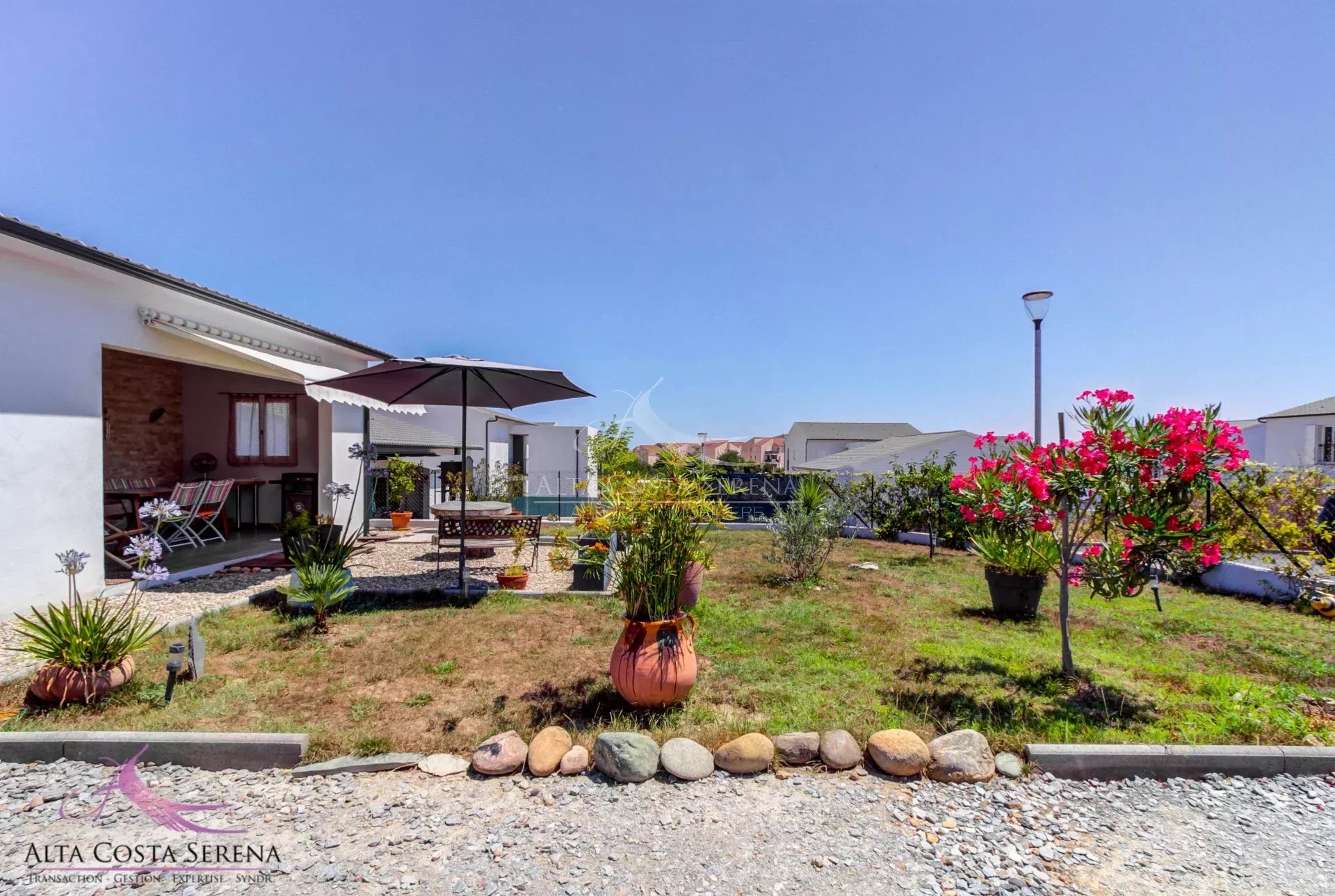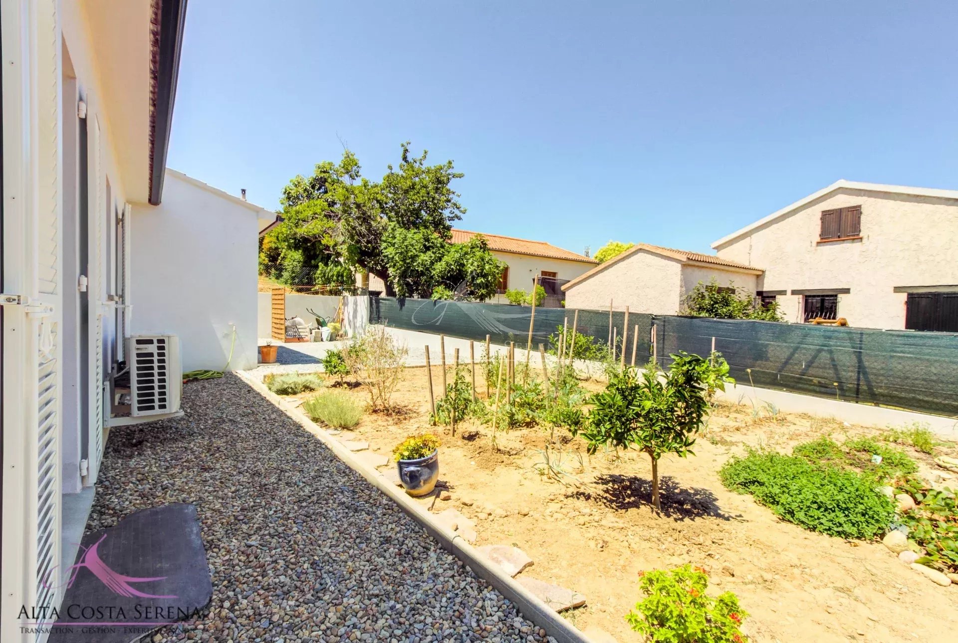 Située dans une résidence calme et recherchée à Aléria, cette charmante maison individuelle de plain-pied construite en 2021 vous séduira par son confort et sa fonctionnalité. D’une superficie de 70m² habitables environ, bien agencée, elle offre deux chambres lumineuses, une salle d’eau avec WC, un salon convivial et une cuisine entièrement équipée. Chaque pièce est climatisée pour un confort optimal tout au long de l’année. De nombreux rangements ont été prévus pour un intérieur toujours bien organisé. L’extérieur, entièrement clos, propose un beau potentiel avec un terrain piscinable, idéal pour vos projets d’aménagement. Le garage attenant complète parfaitement ce bien, tout comme le portail électrique sécurisant l’accès. La maison est très bien entretenue, prête à accueillir ses nouveaux propriétaires sans travaux à prévoir. Vous serez à proximité immédiate des commerces et à seulement 5 minutes des plages, un emplacement parfait pour profiter pleinement de la douceur de vivre en Corse. Idéale pour un primo-accédant, un investissement locatif ou en tant que résidence principale, cette maison combine tous les atouts pour un projet réussi. Une opportunité rare à saisir rapidement !