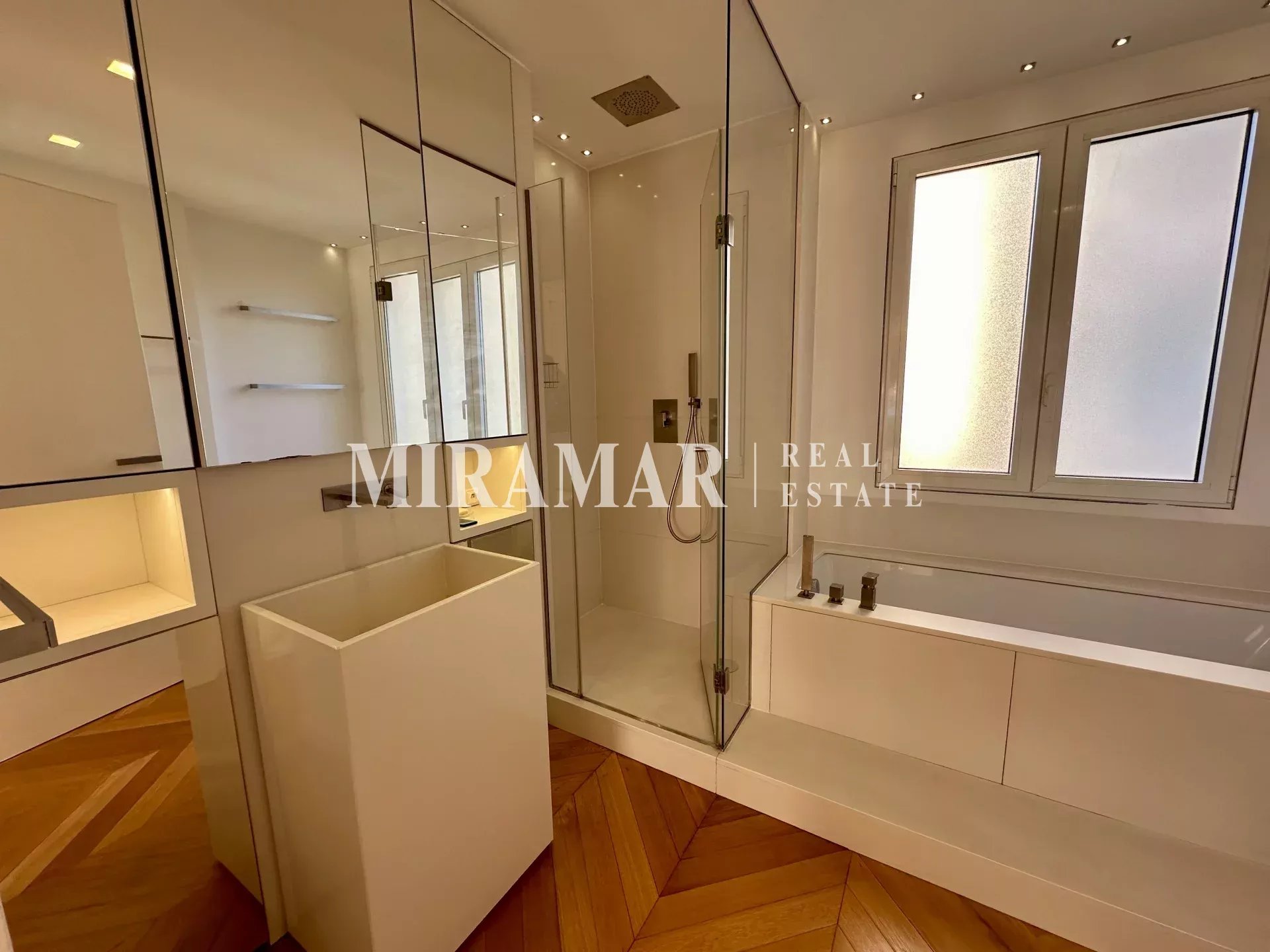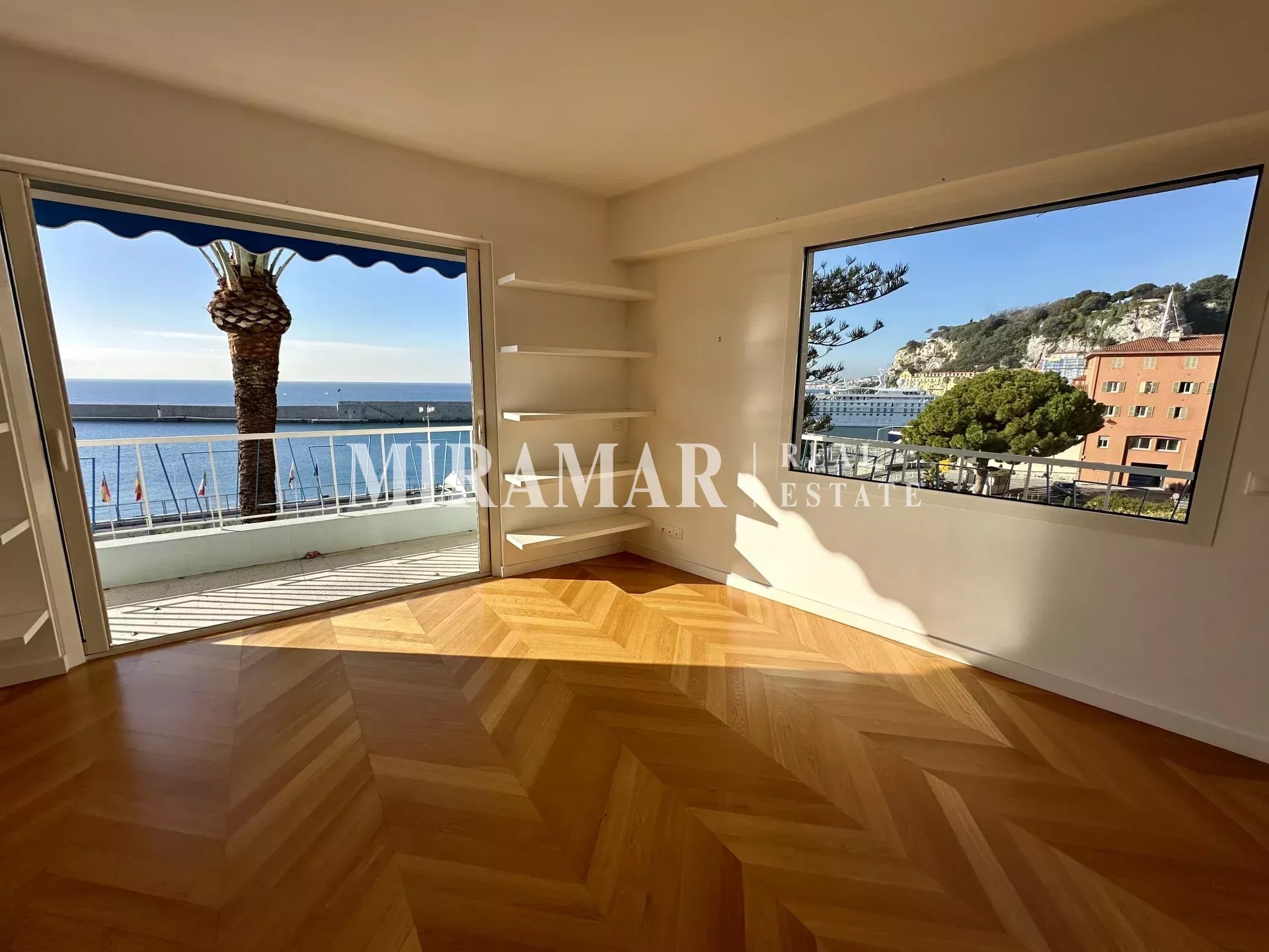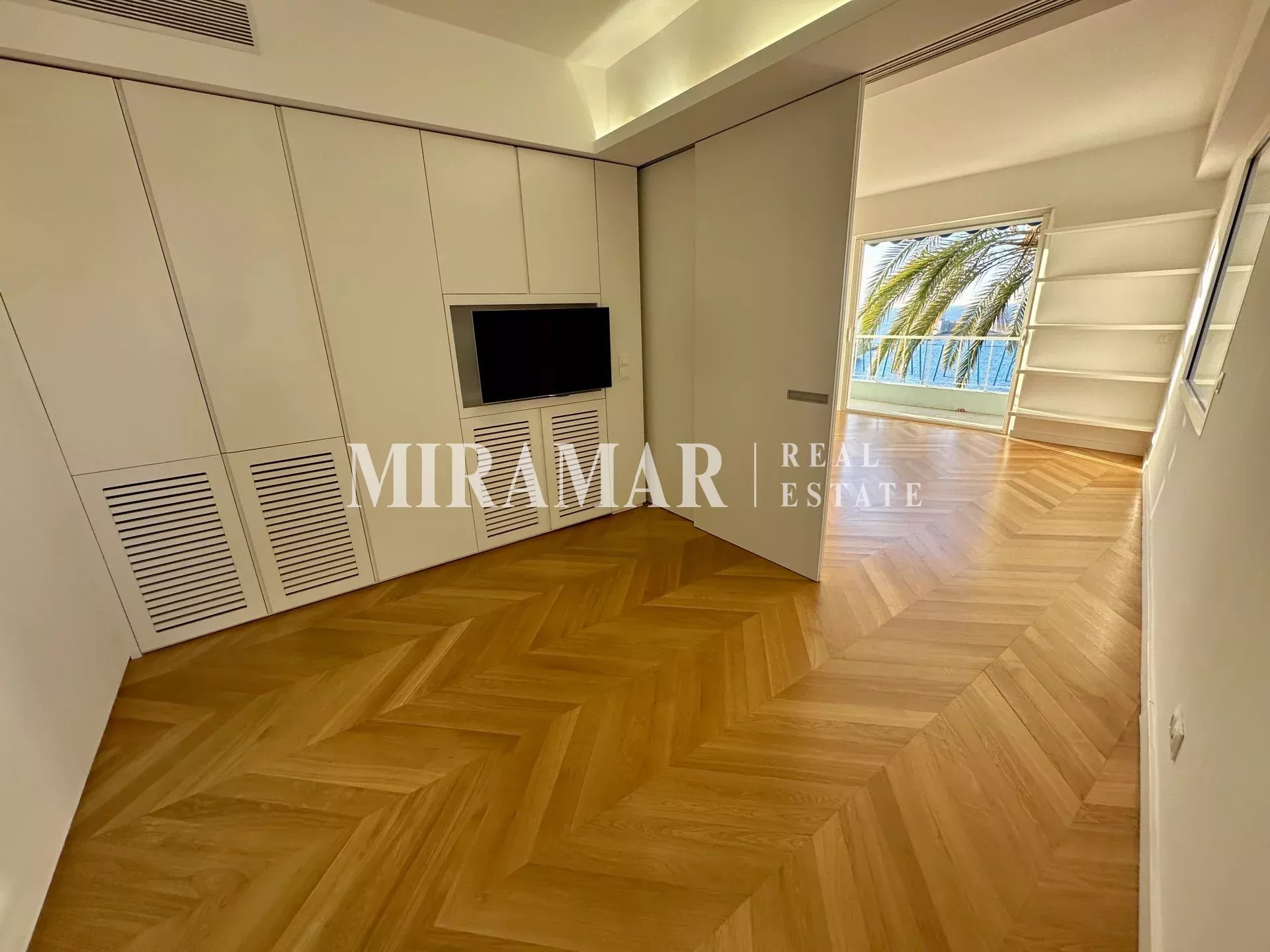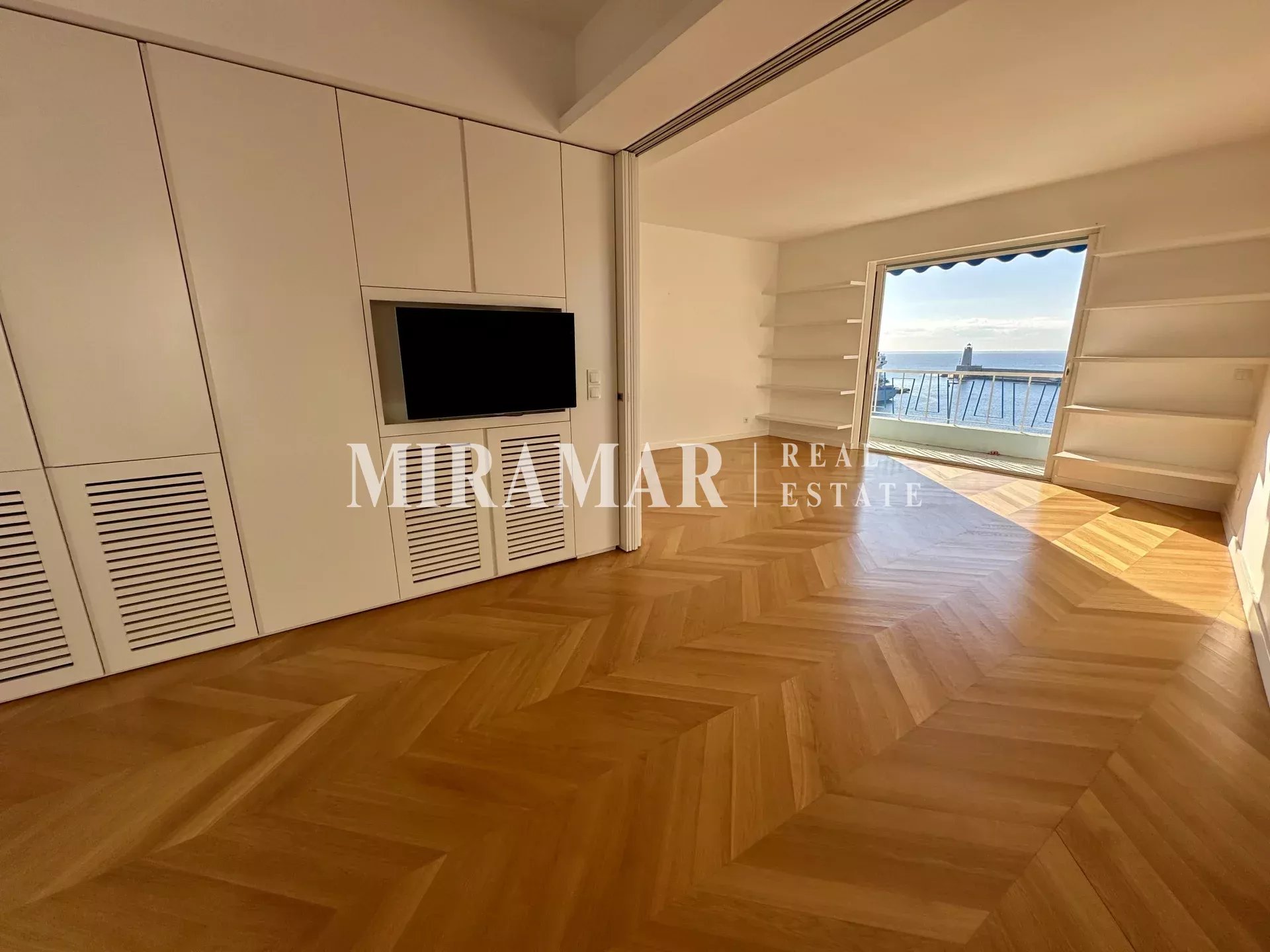 Franck Pilatte Vue panoramique mer et château pour ce superbe 3 pièces 80 m² face mer. L'appartement est composé comme suit : double séjour d'angle ouvert sur une terrasse. une chambre de maitre. porte coulissante dans le séjour permettant d'avoir une deuxième chambre. Salle de bain avec baignoire et douche. cuisine indépendante. nombreux rangements Appartement en parfait état avec des prestations de grande qualité. Cave. Possibilité Parking sous-sol en supplément