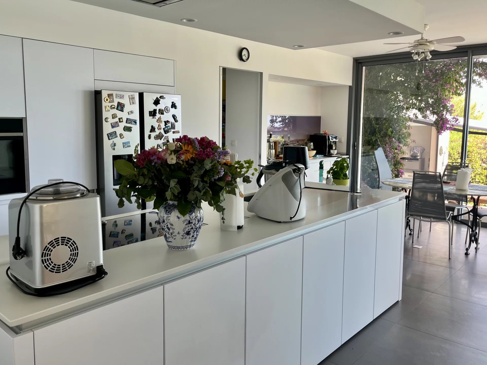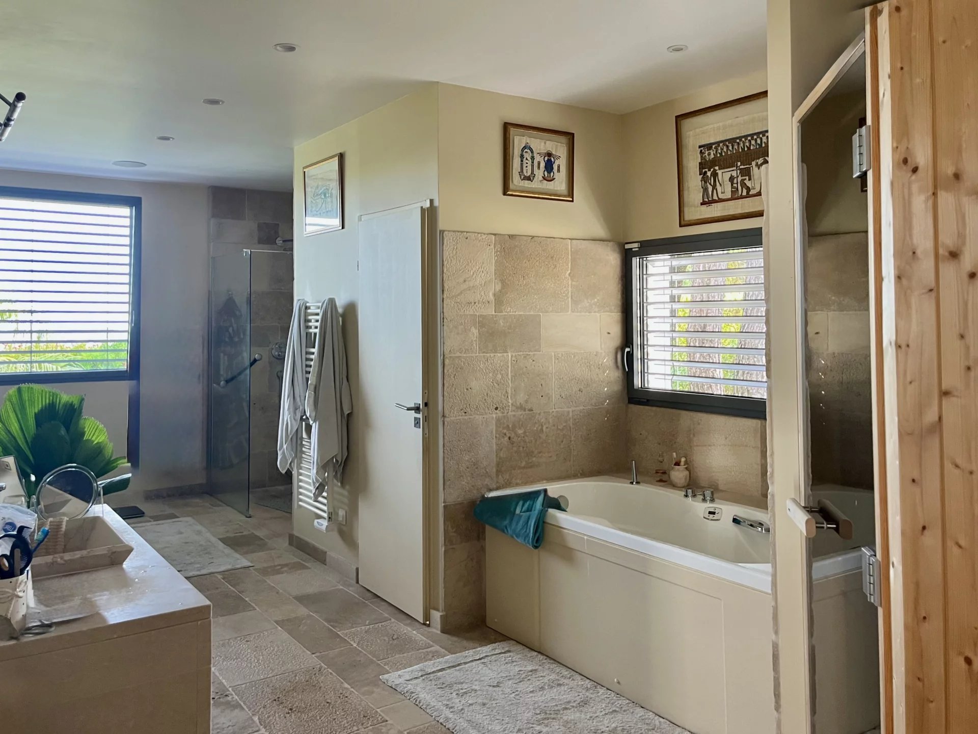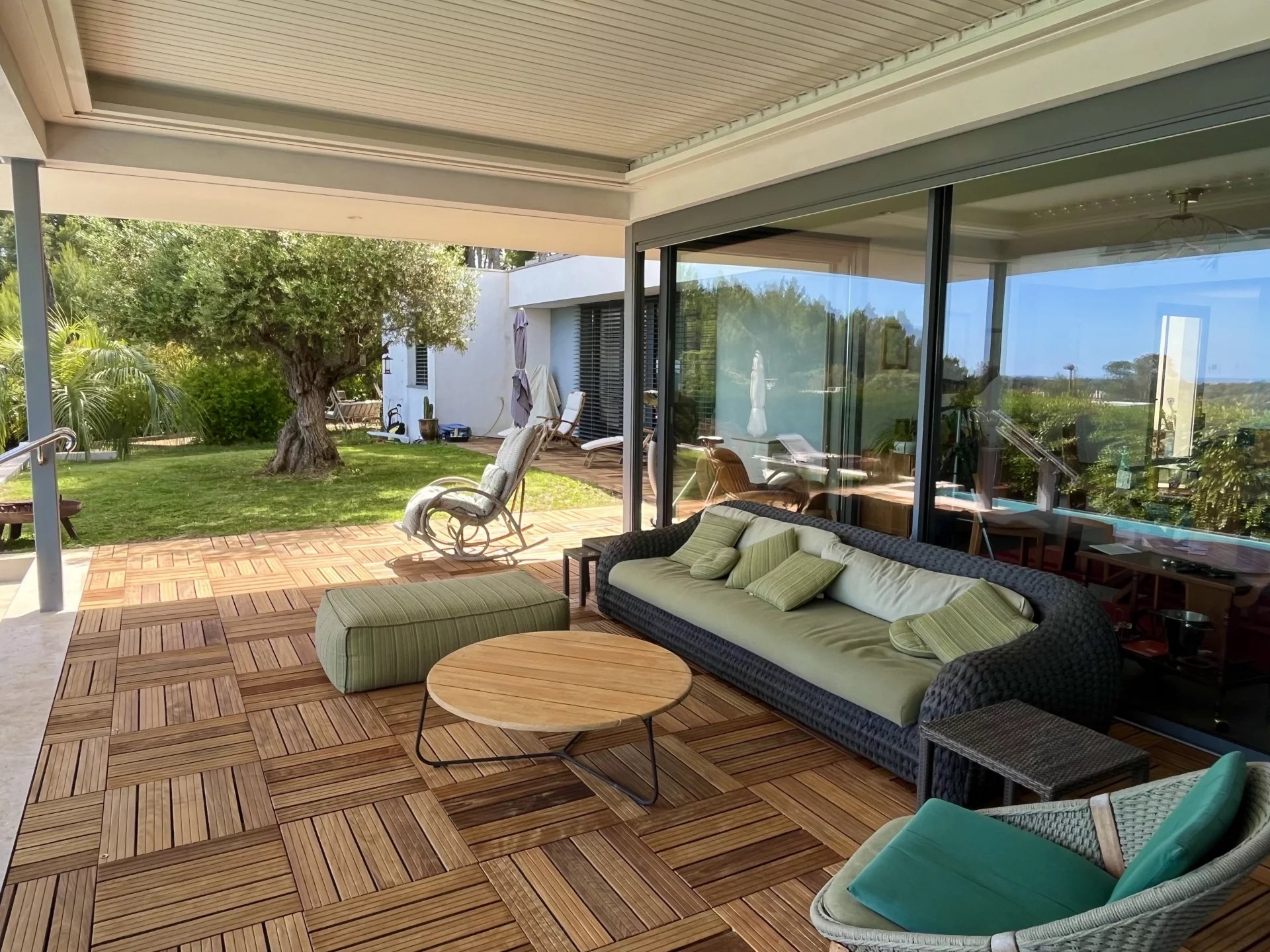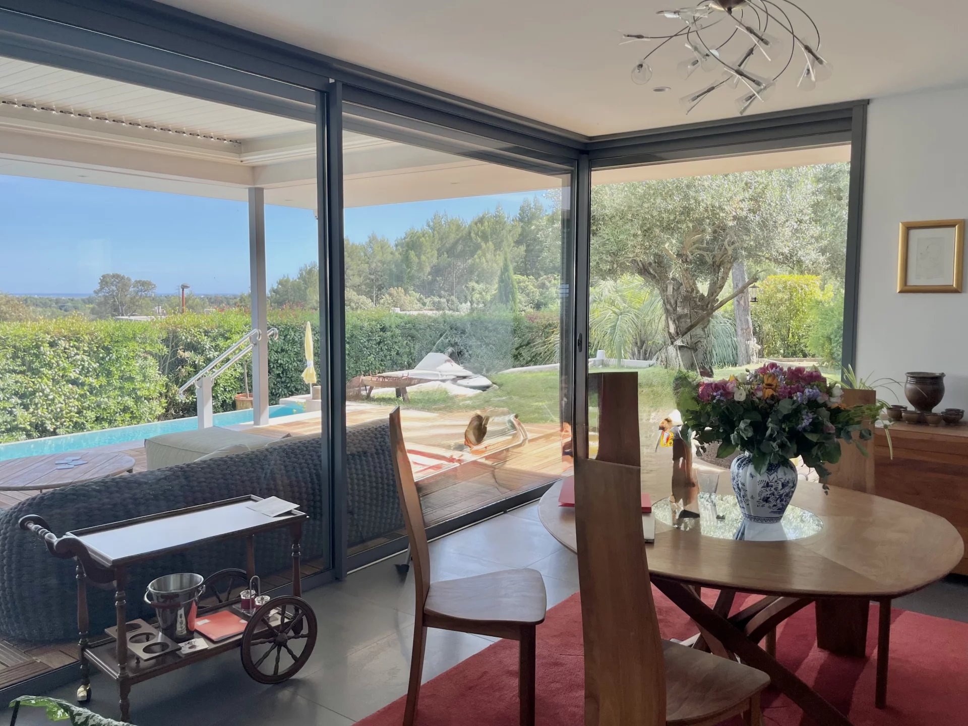 Le bien offre une vue panoramique spectaculaire jusqu’à Montpellier et la mer. Exposée plein sud, la villa est baignée de lumière et s’ouvre sur l’extérieur depuis toutes les pièces.