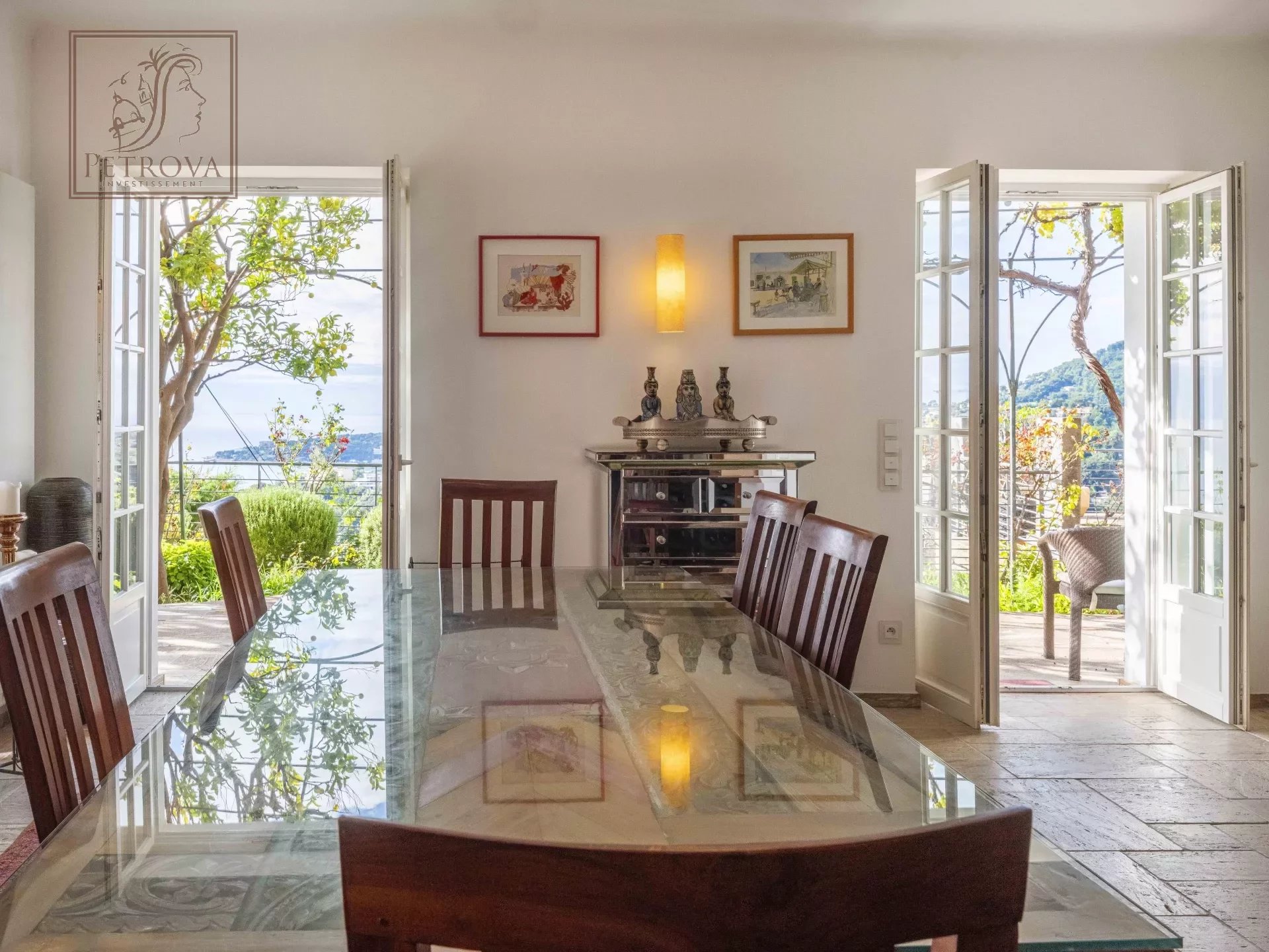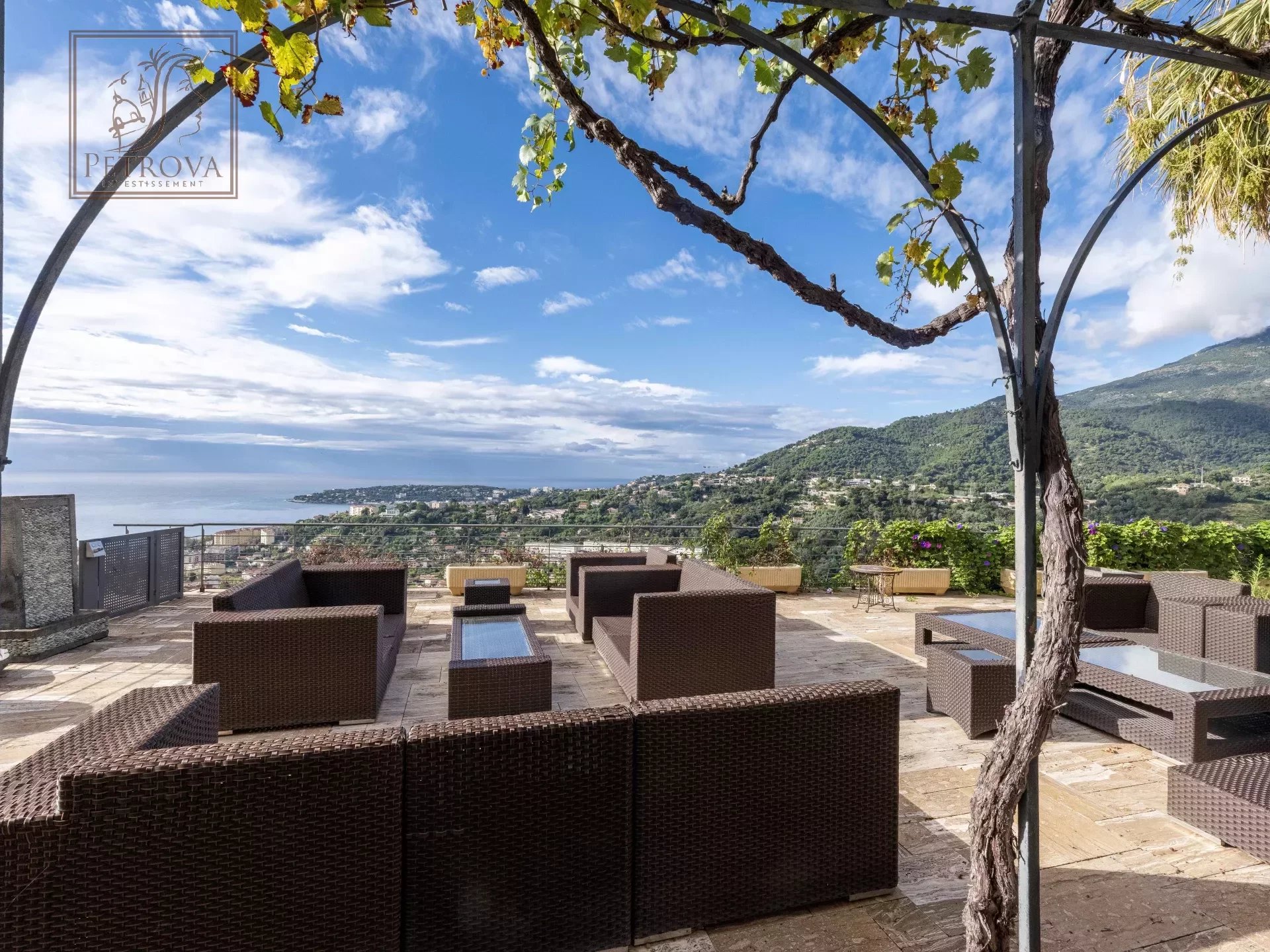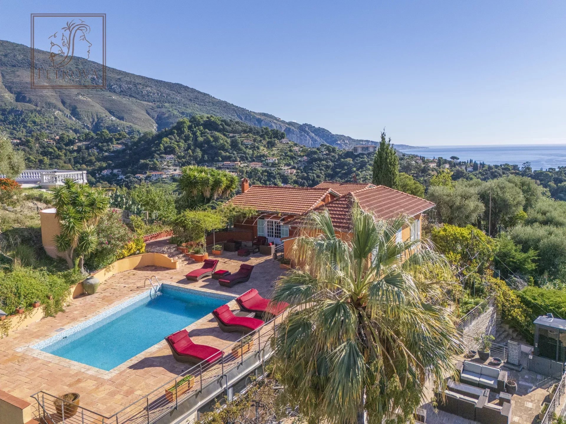 Perchée majestueusement au sommet d'une colline, cette demeure du XIXe siècle offre une vue imprenable sur la mer Méditerranée et les montagnes environnantes. À seulement 20 minutes de Monaco, ce domaine rare sur une parcelle de 1 840 m² se compose de plusieurs habitations indépendantes, toutes de plain-pied, conçues pour offrir luxe, intimité et confort absolu. Villa principale : Dès l'entrée, laissez-vous séduire par les volumes généreux et le caractère authentique de cette propriété. Au rez-de-chaussée, un vaste salon baigné de lumière vous invite à la détente, accompagné d'un bureau élégant, d'une salle à manger chaleureuse et d'une cuisine entièrement équipée, idéale pour les amateurs de gastronomie. À l'étage, une suite parentale spacieuse d'environ 47 m2 et accès direct à la piscine vous offre un havre de paix et de sérénité. Maisons indépendantes : Chacune équipée d'une terrasse privée, idéal pour accueillir vos invités en toute intimité. Pool house : Espace de détente attenant à la piscine, conçu pour les loisirs en toute tranquillité. Grand studio indépendant : Avec sa terrasse privée, cet espace est idéal pour des séjours prolongés ou une utilisation personnelle. Maison de gardien : Dépendance discrète pour garantir une présence attentive tout en préservant la quiétude du lieu. Cave à vin et cellier : Un espace atypique dédié aux passionnés d’œnologie, par exemple. Terrasses spacieuses : Offrant des vues spectaculaires sur la mer et les montagnes, ces terrasses sont idéales pour profiter de moments de contemplation. Piscine : Élégamment intégrée au paysage, entourée de jardins luxuriants, et d'une végétation méditerranéenne variée, comprenant oliviers et palmiers. Jardins : Un véritable écrin de verdure avec un espace de potager et des espaces aménagés pour la détente en plein air. Stationnement : 7 à 8 places de parking couvertes, offrant un accès aisé à vos invités. L'Ascenseur privé permet l'accès facile à la propriété. Idéale pour les amateurs de biens atypiques et artistiques, cette propriété possède une âme unique et offre un cadre de vie exceptionnel alliant calme absolu et panorama d’une beauté sauvage. Les maisons comprennent 5 chambres au total, chacune avec sa salle de bain privative et un accès extérieur indépendant, offrant un confort et une indépendance totale pour accueillir vos proches ou vos invités. Ces espaces sont également idéaux pour un projet de maison d'hôtes de luxe. Le terrain de 1 840 m², agrémenté de quatre oliviers centenaires, propose de nombreuses possibilités pour l'aménagement d'espaces de loisirs et de détente. Ce havre de paix respire l'authenticité tout en offrant des prestations modernes, faisant de cette propriété un lieu rare sur la Côte d'Azur. De plus, des agrandissements importants de plus de 100 m² sont possibles: contactez-nous pour un conseil personnalisé! PRIX: 2 800 000€ F.A.I à la charge du vendeur. Le bien n'est pas soumis au statut de la copropriété. Les informations sur les risques auxquels ce bien est exposé sont disponibles sur le site Géorisques : georisques.gouv.fr