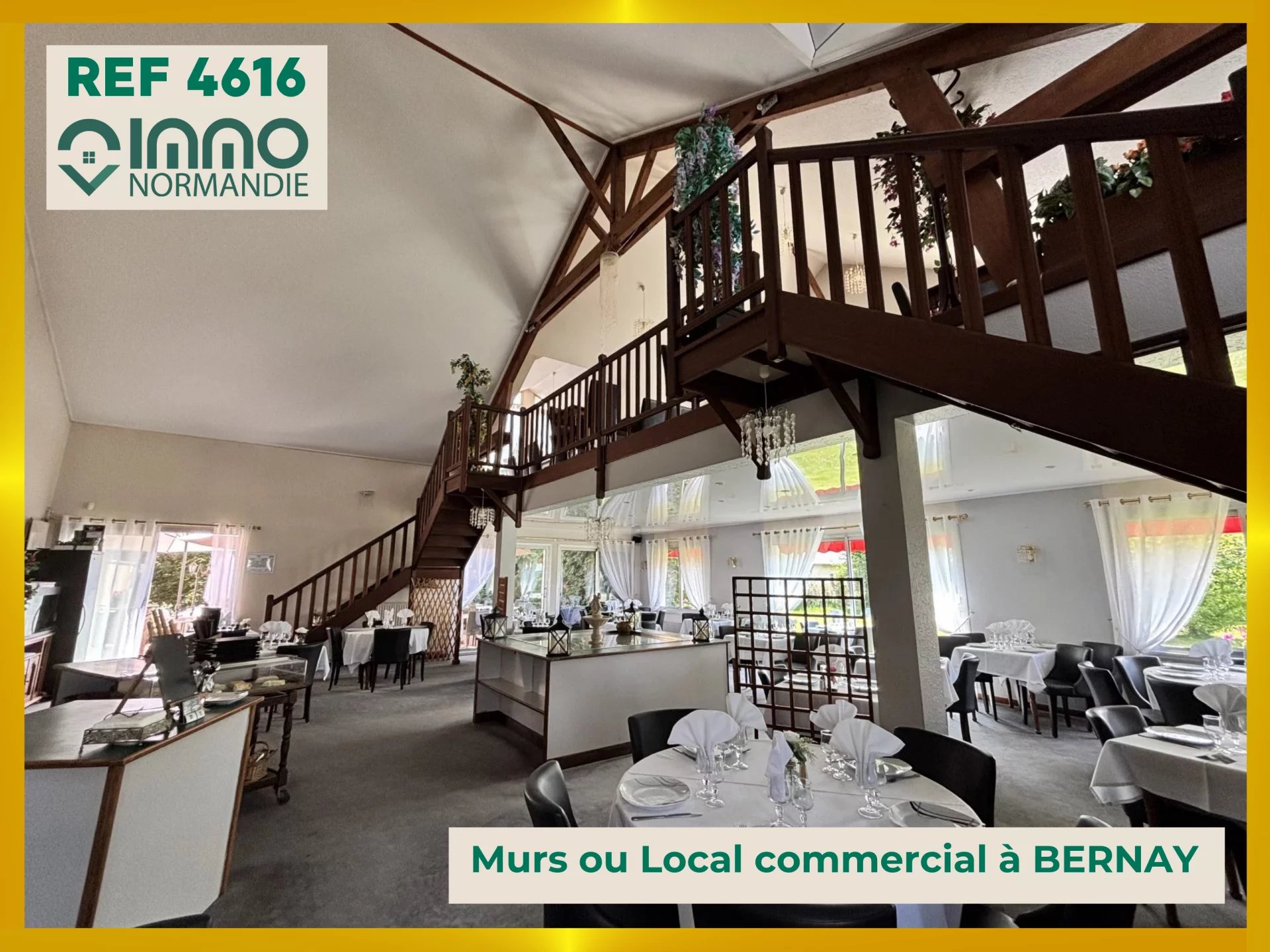Vous projetez une nouvelle activité sur Bernay, venez découvrir ce local commercial de 542m2 avec Parking. Au rdc, 300m2 environ de surface à exploiter. A l'étage, 2 Appartements autour de 100m2 et 150m2 (terrasses - communication possible) Agencement complet en bon état ; Peu de frais à prévoir (peinture). Fond de commerce en vente également au prix de 221000€. Joignez directement le négociateur (cf carte de visite) pour vous renseigner ou visiter. Alain prunier agent commercial immatriculé sous le numéro 750 321 838 agissant pour ImmoNormandie. Référence du bien 4516. Les informations sur les risques auxquels ce bien est exposé sont disponibles sur le site Géorisques : https://www.georisques.gouv.fr (https://www.georisques.gouv.fr/)