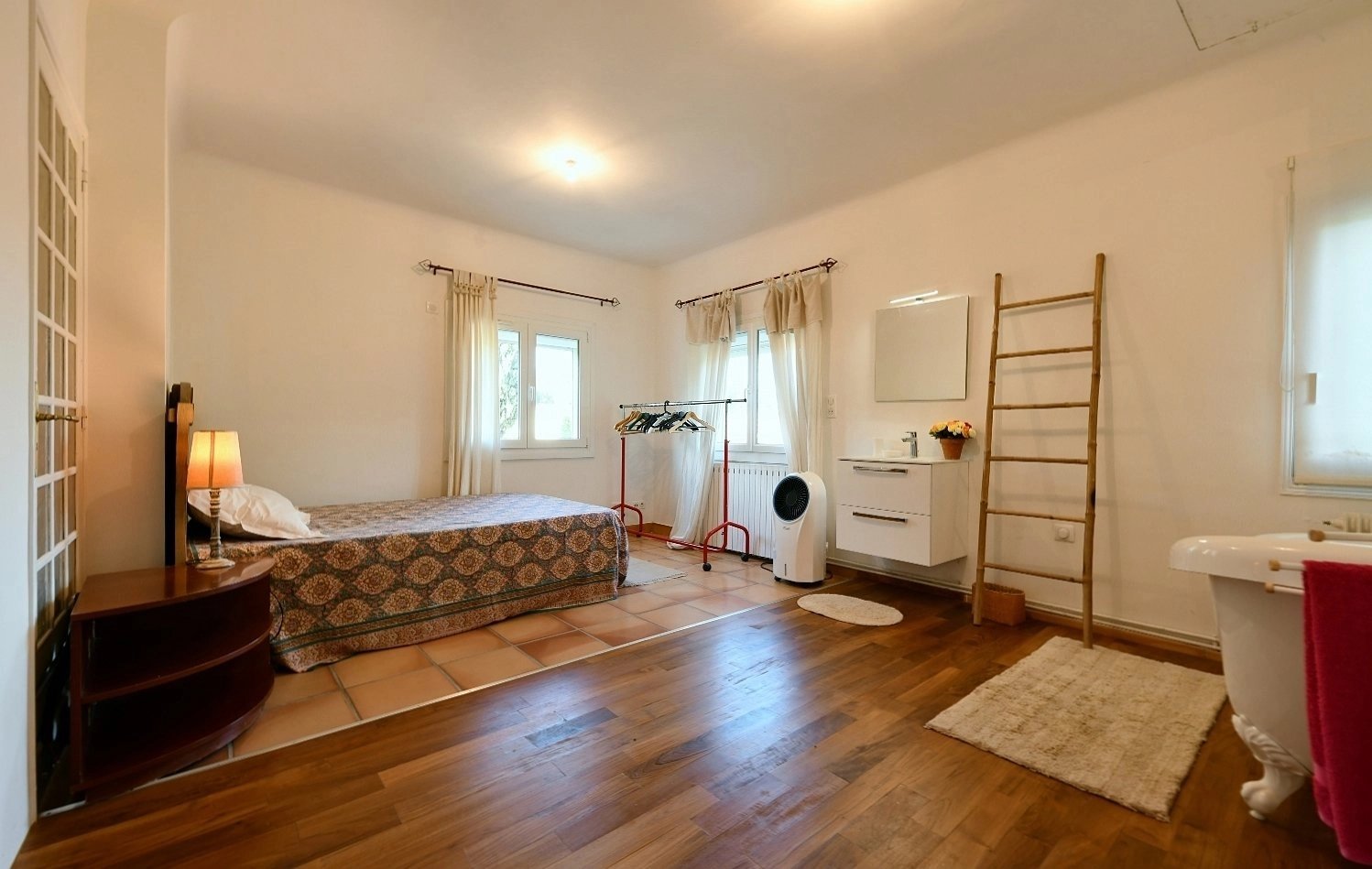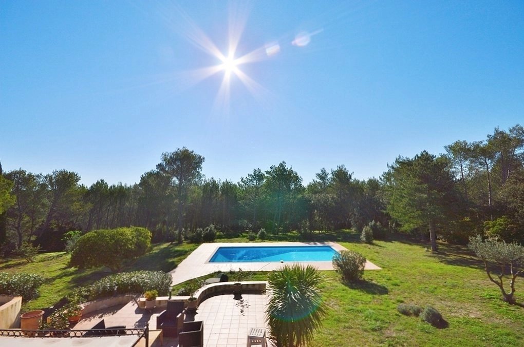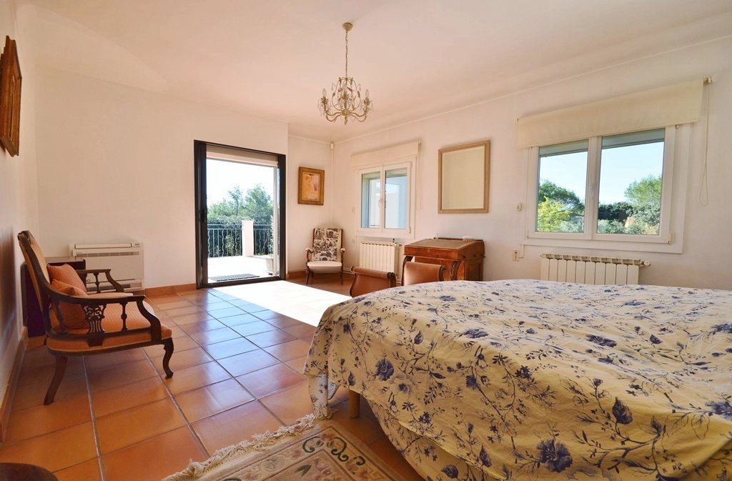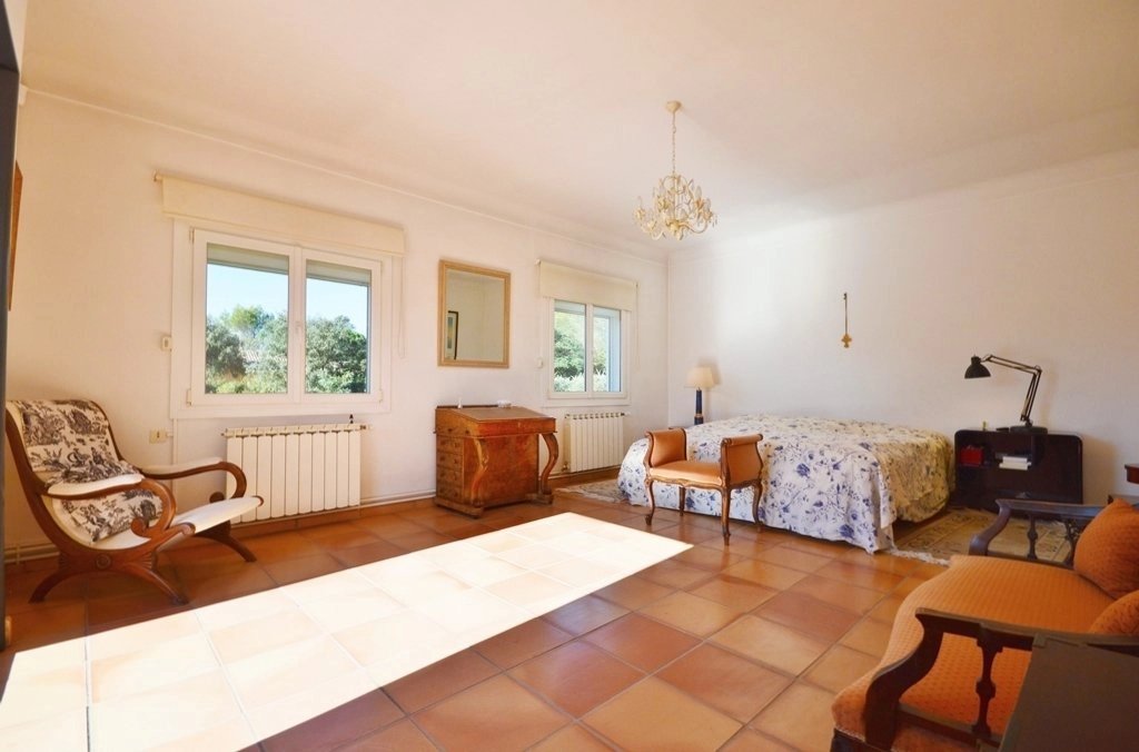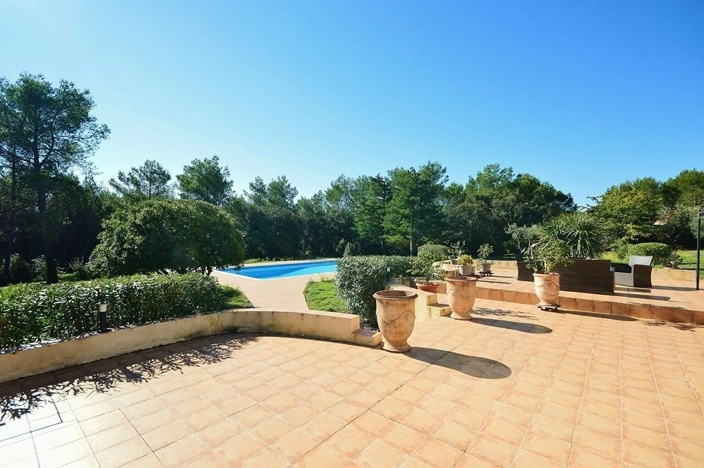 Superbe environnement et situation unique sur les hauteurs de Nîmes Larges pièces de réception ouvertes sur 360 m² de terrasse surplombant le parc 5 chambres, 4 salles de bains (dont studio indep.), 1 dressing room, cabinet d'invités Parc méridional avec pinède et piscine 13,5 x 6,5 m