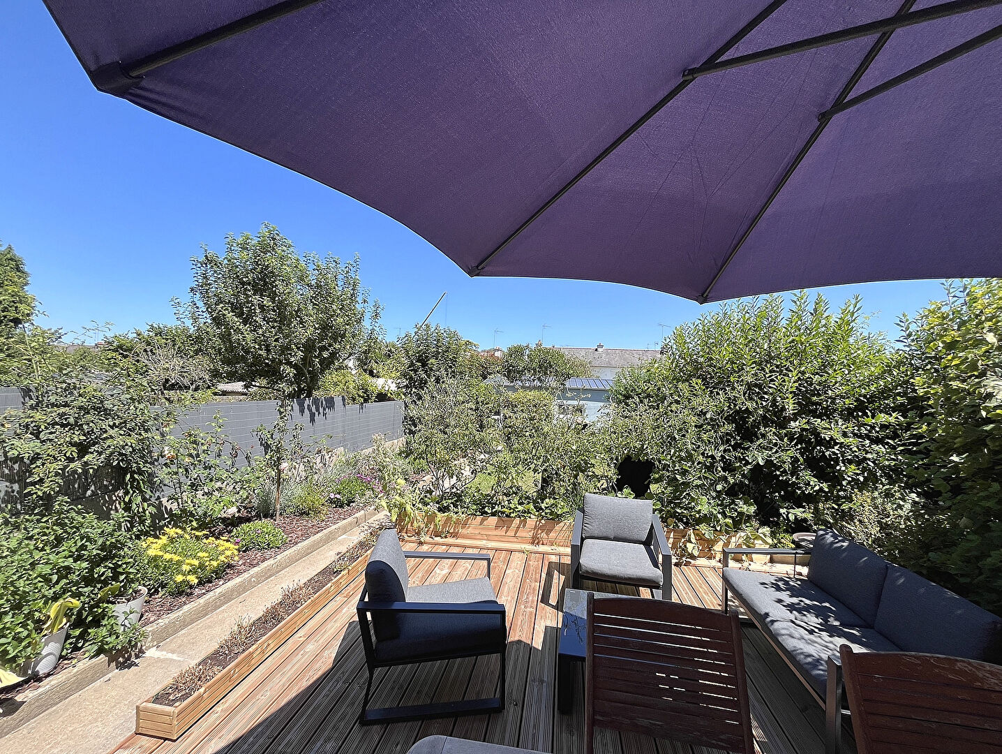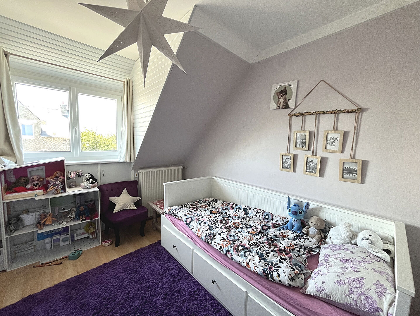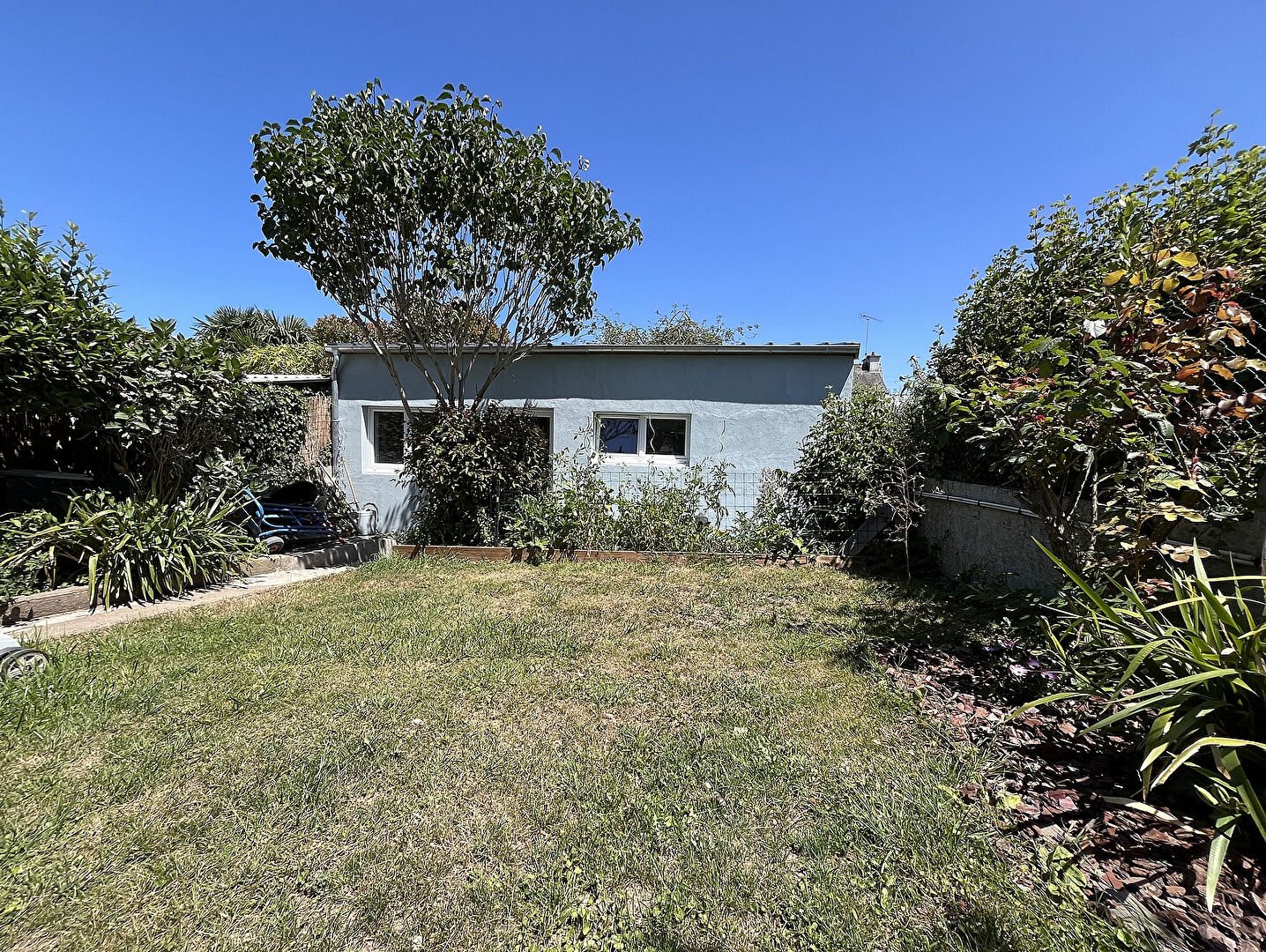 A VENDRE, SAINT-BRIEUC, quartier Beauvallon, maison de ville des années 50 entièrement rénovée, sur 300 m2 de terrain clos comprenant au rez-de-chaussée : entrée, deux bureaux (poss chambres), salle de bains, buanderie, véranda chauffée et wc avec lave-mains; A l'étage : grande pièce de vie sur parquet de 45 m² avec cuisine ouverte aménagée et équipée; Au-dessus : deux chambres dont une avec placards, dressing et salle d'eau avec wc; En fond de parcelle, une dépendance rénovée (isolation, carrelage, électricité); stationnement, isolation par l'extérieur, chauffage gaz à condensation; BEAUX VOLUMES, TRES BON ÉTAT GÉNÉRAL (3.81 % honoraires TTC à la charge de l'acquéreur.)