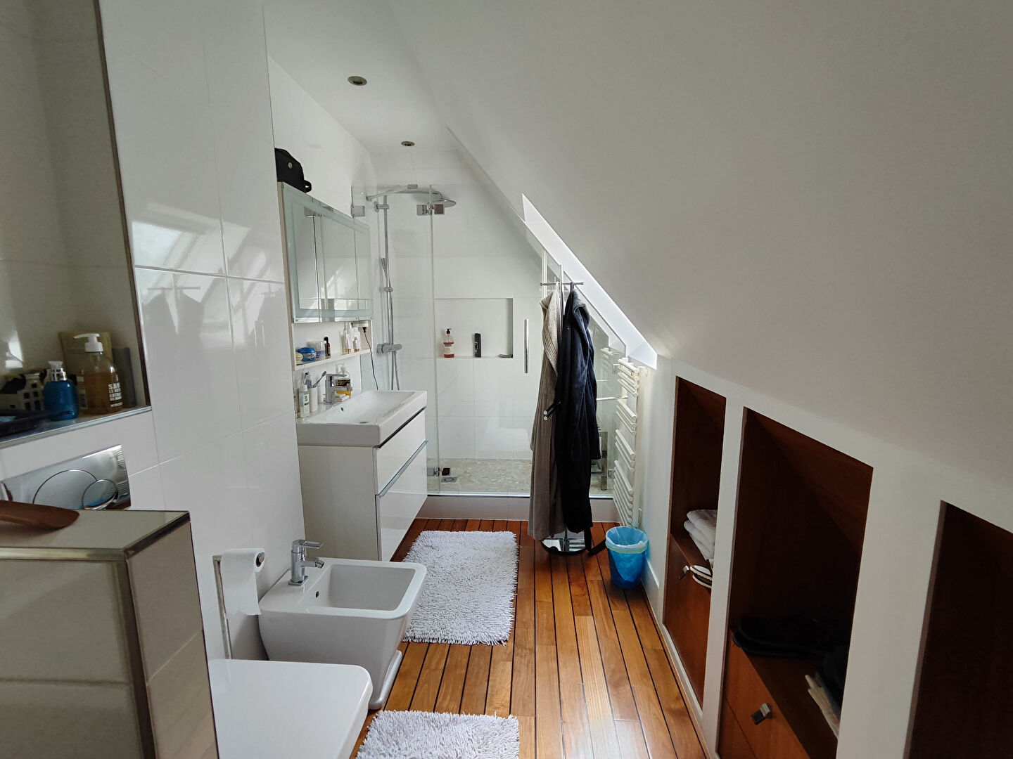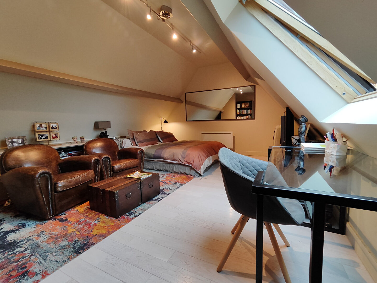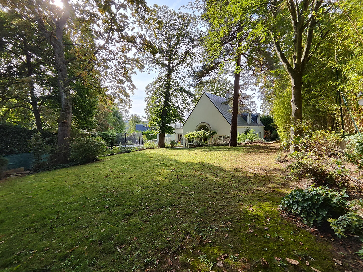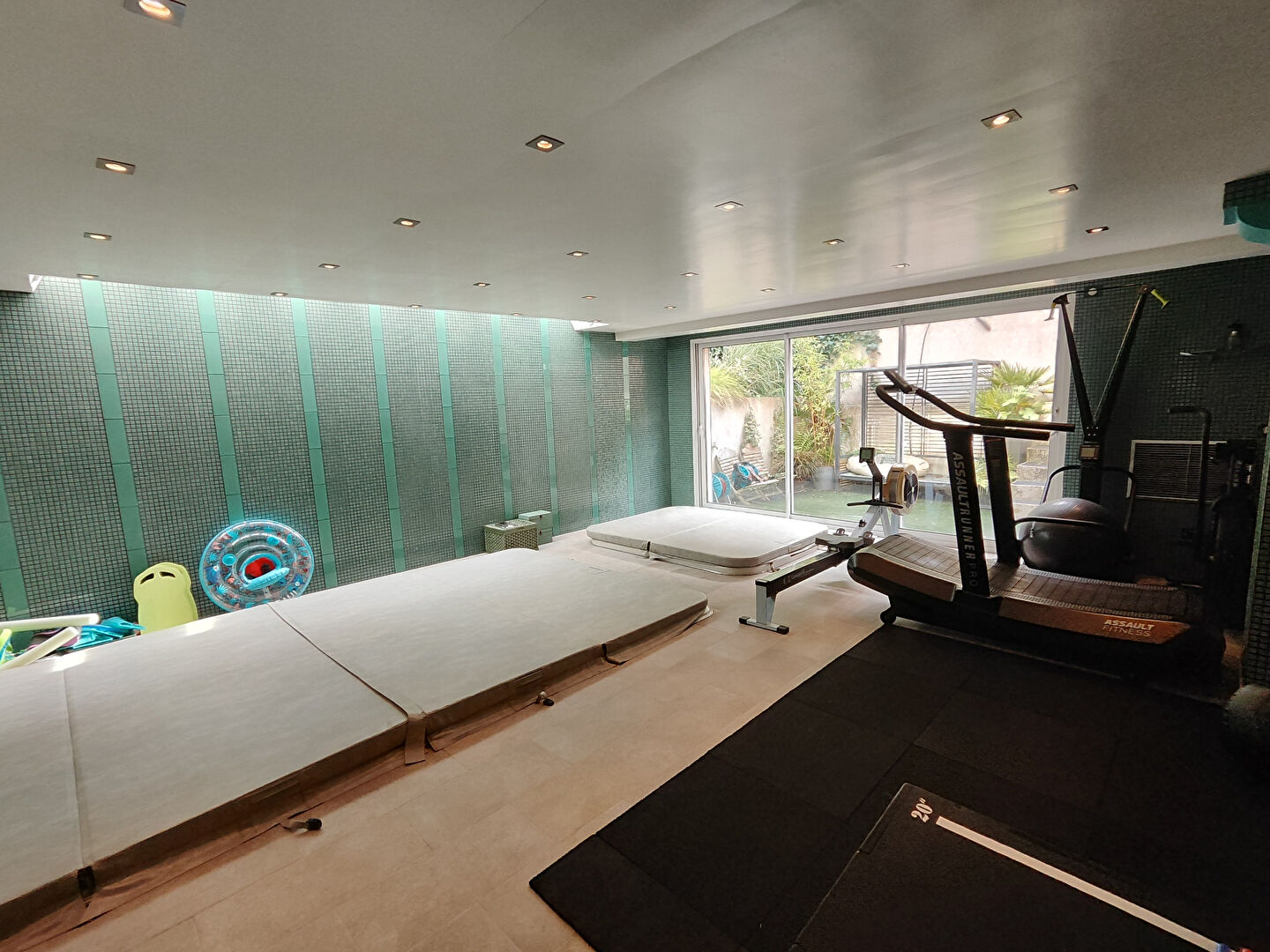 Dans un environnement sécurisé, à l'abri des regards, sur un joli jardin paysager, vaste maison entièrement rénovée de 465m² habitables (516m² utiles), plus un garage de 88m². La maison s'ouvre sur une entrée avec vestiaire et toilettes, menant au magnifique triple séjour avec cheminée et salle à manger de 114m², une cuisine entièrement équipée de 27m² avec coin repas, buanderie. Au même niveau, une suite avec une chambre généreuse, de plain-pied sur le jardin, une salle de bains avec baignoire, douche et toilettes, nombreux placards. A l'étage, deux autres suites avec pour l'une un grand dressing, une salle de bains (baignoire, douche et wc), et pour l'autre une salle de douche avec wc et nombreux placards. Un espace bureau, une grande salle de bains (baignoire, douche et wc), un dressing, 3 autres chambres, terrasse. En rez-de-jardin, un studio avec kitchenette et salle d'eau avec wc (possibilité d'entrée indépendante), un espace détente avec une piscine, un jacuzzi, une salle de massage avec hammam, salle de douche avec wc, une salle de billard, un salon télé, une salle de musique, dressing, cellier, cave à vin. Grand garage pour 2 voitures. Volets électriques, nombreux rangements. Emplacement idéal, à 5mn de la gare pour Paris St Lazare ou La Défense, à 12mn des écoles, à 8mn du centre-ville et de la forêt. Rare sur le secteur. (3.00 % honoraires TTC à la charge de l'acquéreur.)