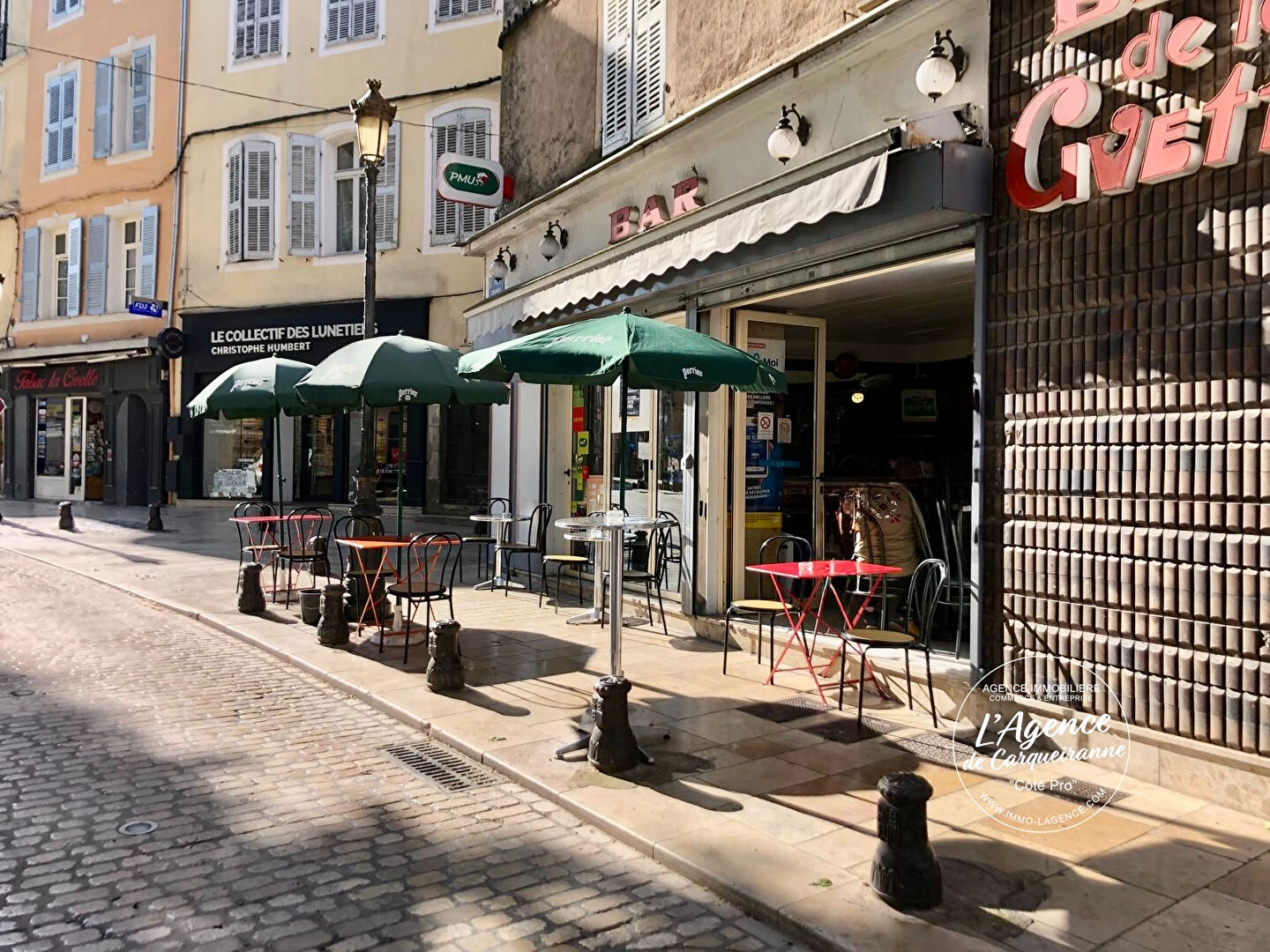 Samuel l'agence de Carqueiranne "Côté Pro" vous propose à la vente Fonds de commerce Bar PMU FDJ avec Licence IV idéalement situé dans le centre de Brignoles coeur de toutes les animations et événements de la ville. Emplacement stratégique avec fort passage piéton et excellente visibilité. Le bar se compose d'un comptoir entièrement équipé, d'une salle intérieure de 55 m² pouvant accueillir jusqu'à 20 places assises, ainsi que d'une cave de 50 m². Atout supplémentaire : un appartement de 70 m² à l'étage, comprenant deux chambres, idéal pour logement de fonction. Ce bien offre un fort potentiel de développement dans un cadre animé et convivial. Visites uniquement sur rendez-vous ! Aucune visite improvisée ne sera acceptée. Pour plus d'informations ou organiser une visite, merci de me contacter.