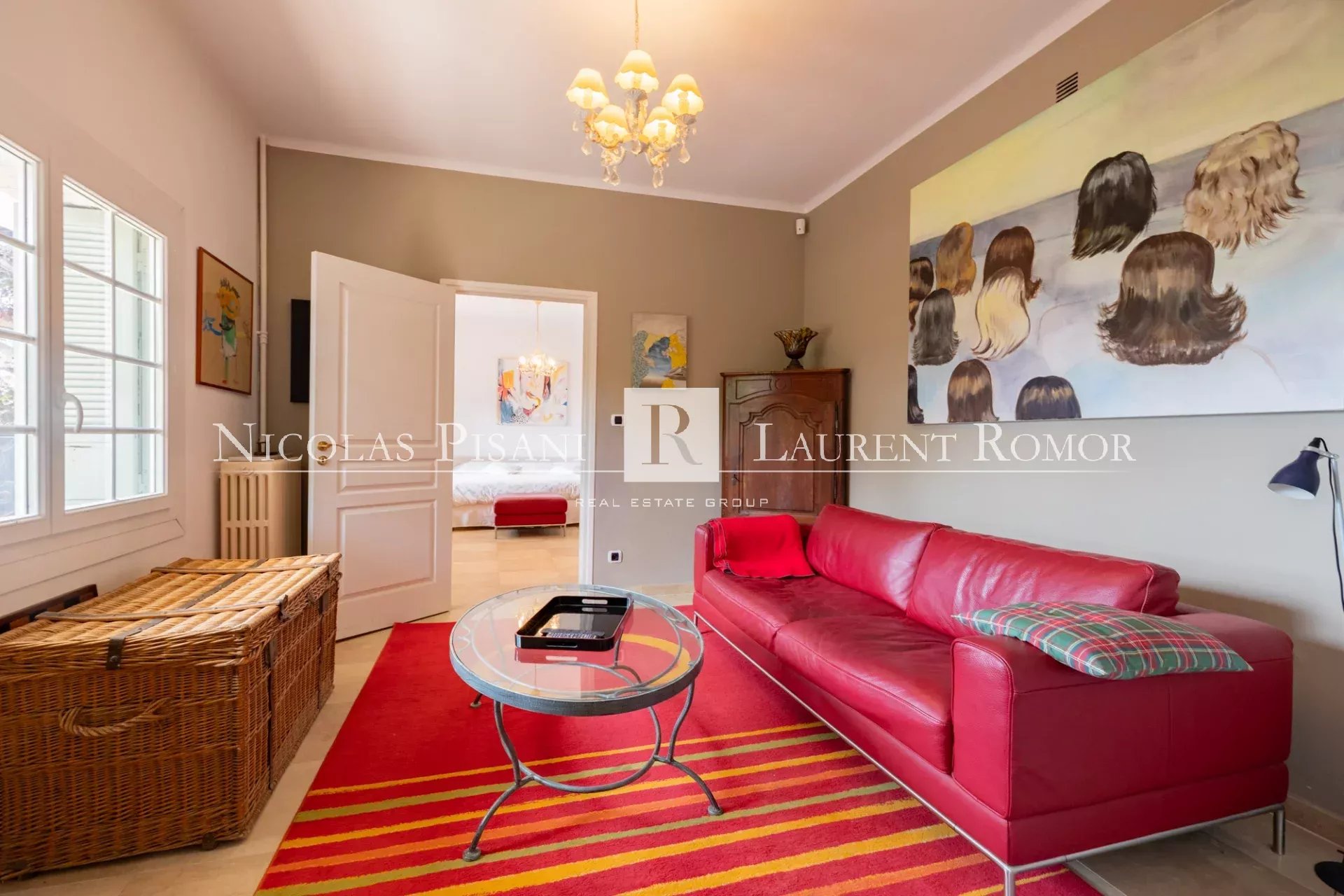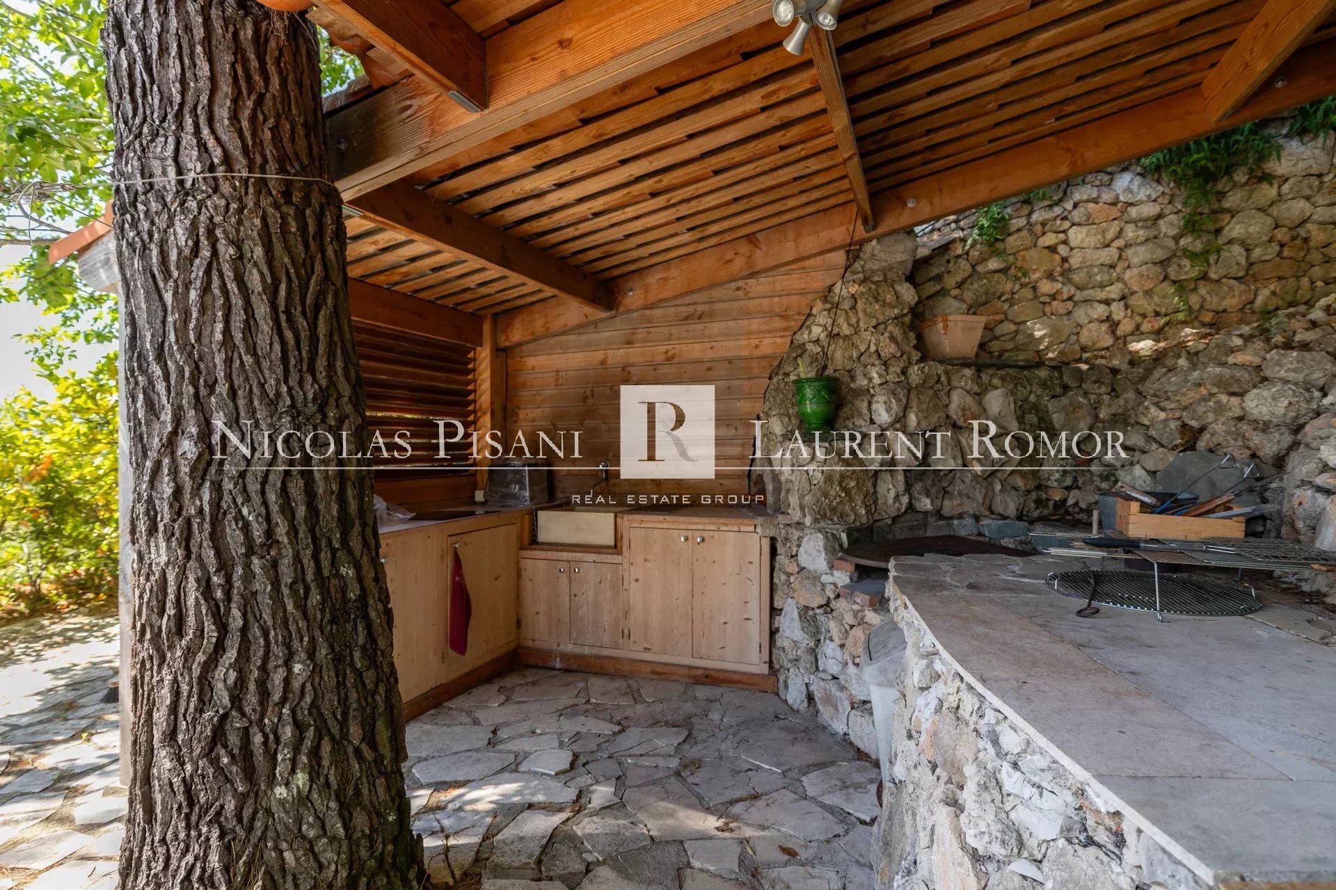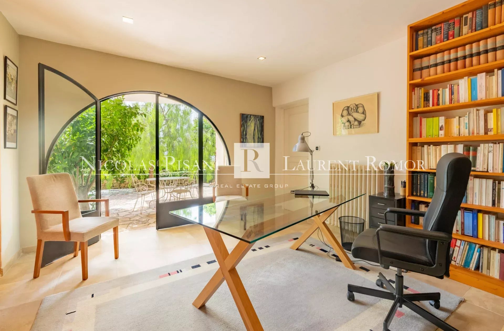 En Vente dans un écrin de verdure, au calme absolu à Nice, une luxueuse propriété de 1955 vous offre une vue panoramique sur les collines et montagnes environnantes et permet de profiter de magnifiques couchers de soleil. Sur un terrain de plus de 2000 m², la villa sur une surface totale de 236 m² habitables est construite sur 2 niveaux. Elle se compose: Rez-de-jardin: Une chambre lumineuse et sa salle de bains et douche et WC, une bibliothèque, un salon TV, une buanderie avec atelier, une chambre indépendante avec dressing et sa salle de douche. Toutes ces pièces s'ouvrent sur un agréable jardin. Ce niveau peut être aisément transformé en appartement indépendant. Rez-de-chaussée: Un grand salon / salle à manger avec cheminée, une cuisine équipée, un WC invité, une chambre avec sa salle de douche, une chambre de maître avec dressing et sa salle de bains avec douche et WC. Toutes ces pièces s'ouvrent sur une grande terrasse ensoleillée avec une vue panoramique sur les collines. Des combles se trouvent au niveau + 1. Un garage fermé de plus de 27 m² ainsi que de nombreuses places de stationnement extérieur sont également disponibles. Le terrain est agrémenté de nombreux arbres fruitiers et essences méditerranéennes et accueille sa grande piscine, sa cuisine d'été et des dépendances. Les honoraires d'agence sont à la charge du vendeur.