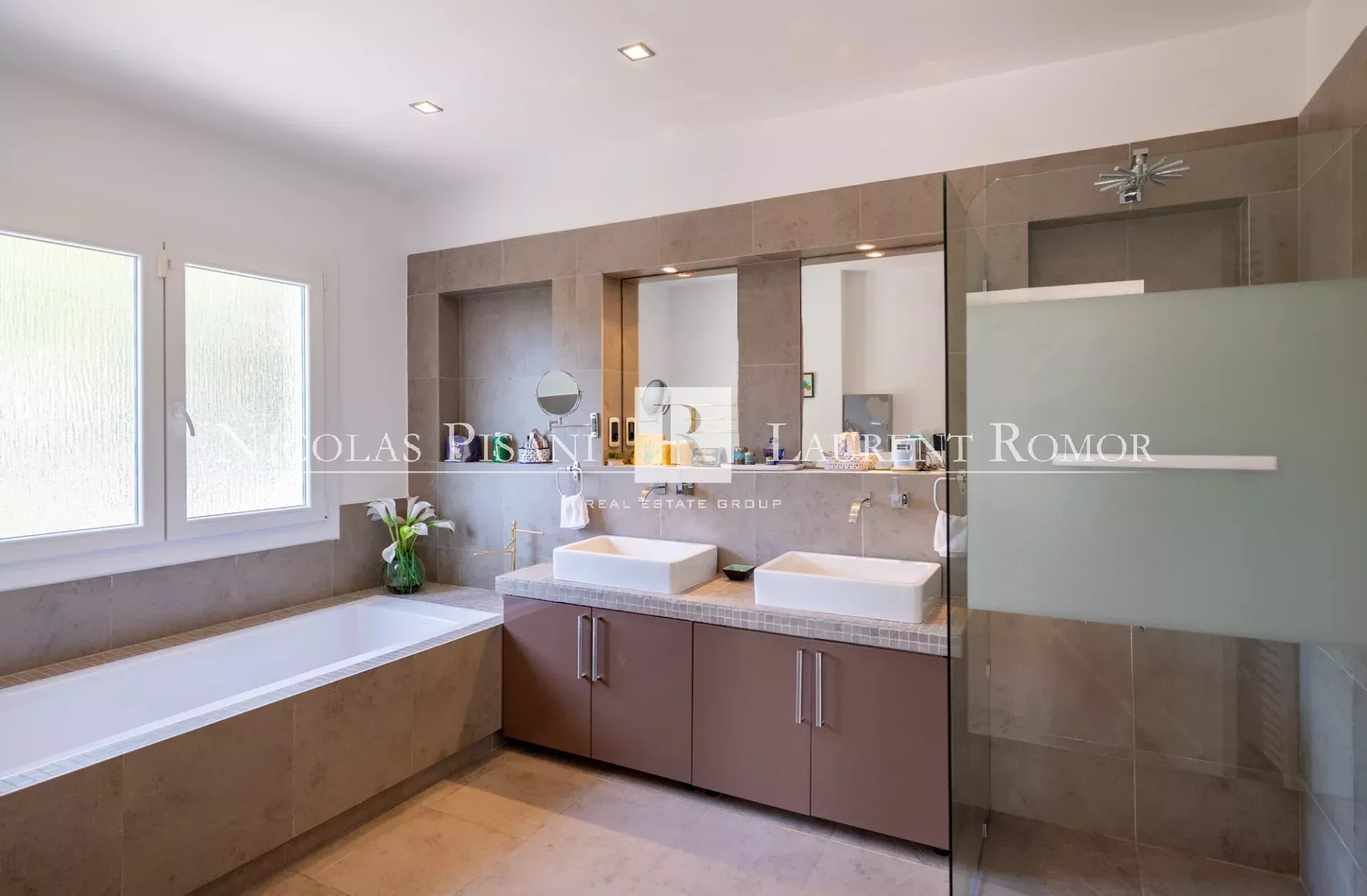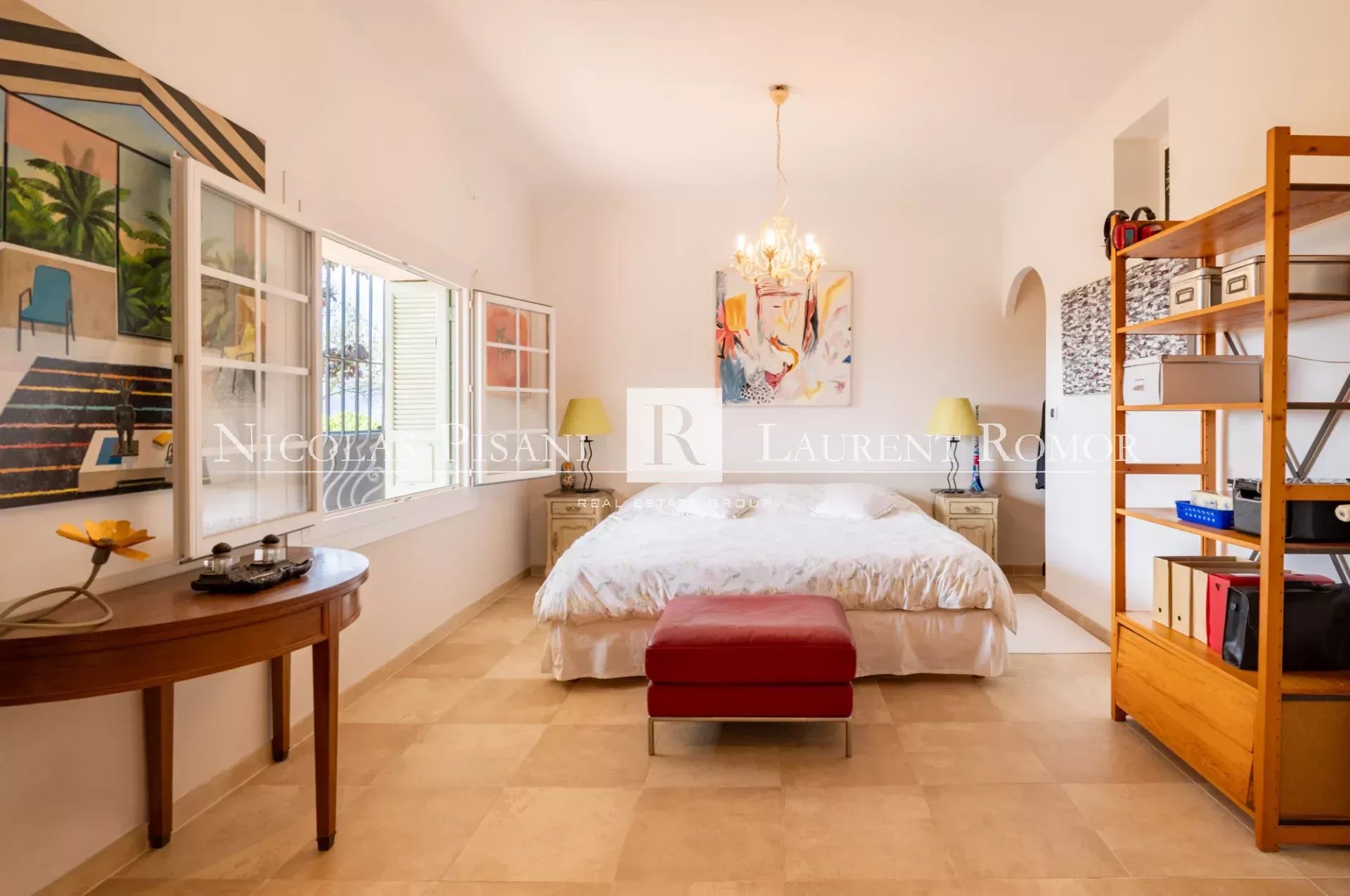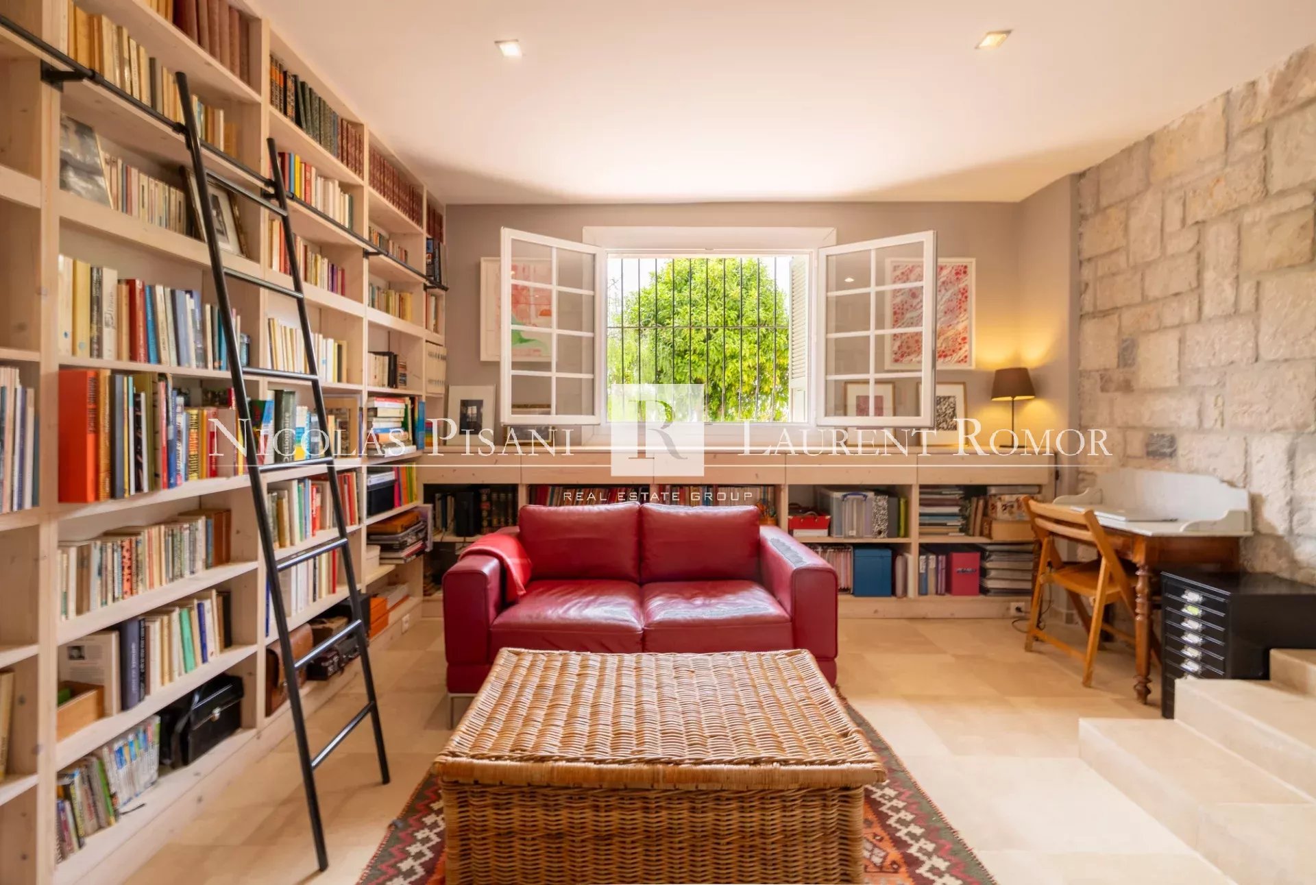 En Vente dans un écrin de verdure, au calme absolu à Nice, une luxueuse propriété de 1955 vous offre une vue panoramique sur les collines et montagnes environnantes et permet de profiter de magnifiques couchers de soleil. Sur un terrain de plus de 2000 m², la villa sur une surface totale de 236 m² habitables est construite sur 2 niveaux. Elle se compose: Rez-de-jardin: Une chambre lumineuse et sa salle de bains et douche et WC, une bibliothèque, un salon TV, une buanderie avec atelier, une chambre indépendante avec dressing et sa salle de douche. Toutes ces pièces s'ouvrent sur un agréable jardin. Ce niveau peut être aisément transformé en appartement indépendant. Rez-de-chaussée: Un grand salon / salle à manger avec cheminée, une cuisine équipée, un WC invité, une chambre avec sa salle de douche, une chambre de maître avec dressing et sa salle de bains avec douche et WC. Toutes ces pièces s'ouvrent sur une grande terrasse ensoleillée avec une vue panoramique sur les collines. Des combles se trouvent au niveau + 1. Un garage fermé de plus de 27 m² ainsi que de nombreuses places de stationnement extérieur sont également disponibles. Le terrain est agrémenté de nombreux arbres fruitiers et essences méditerranéennes et accueille sa grande piscine, sa cuisine d'été et des dépendances. Les honoraires d'agence sont à la charge du vendeur.