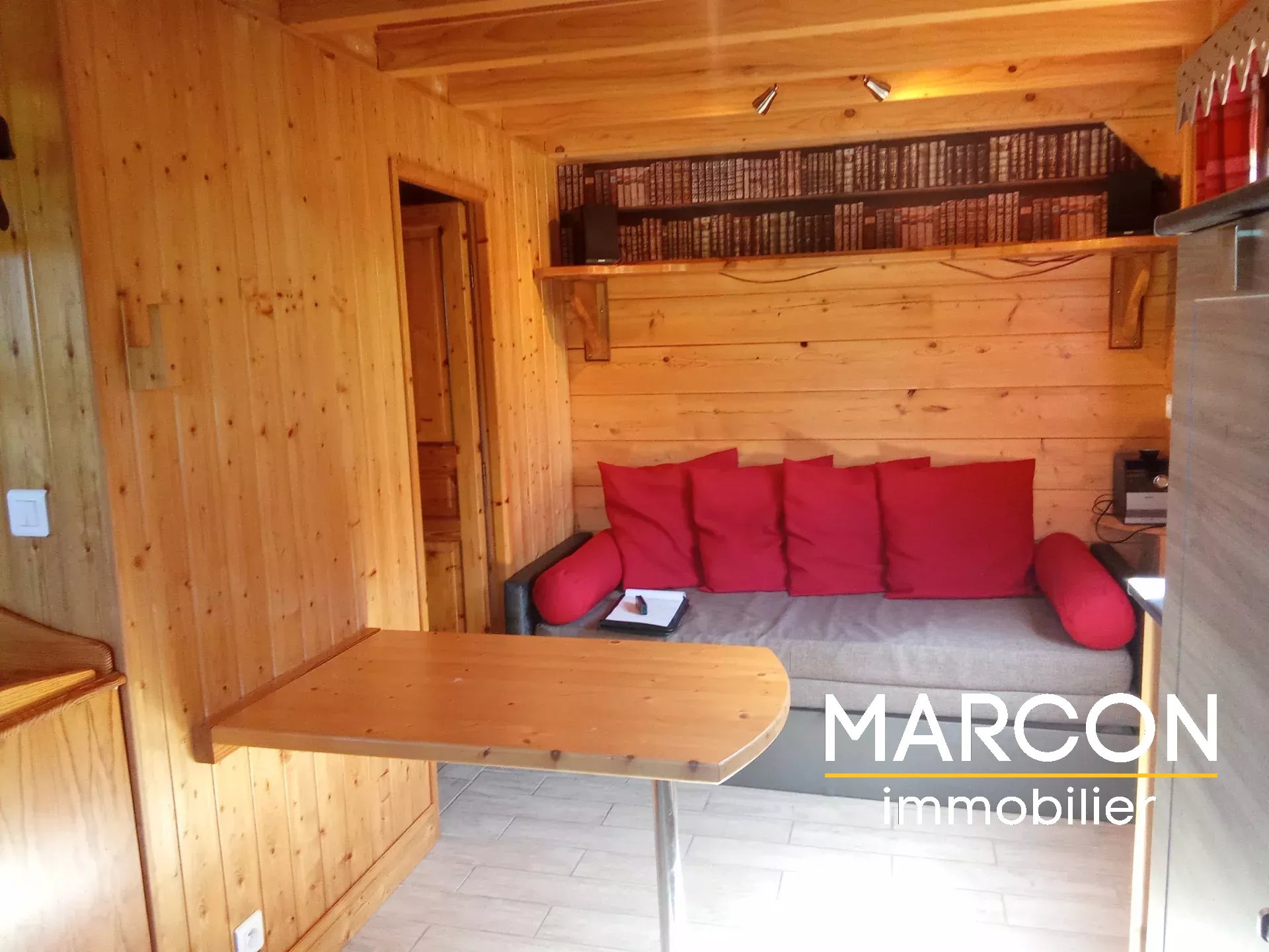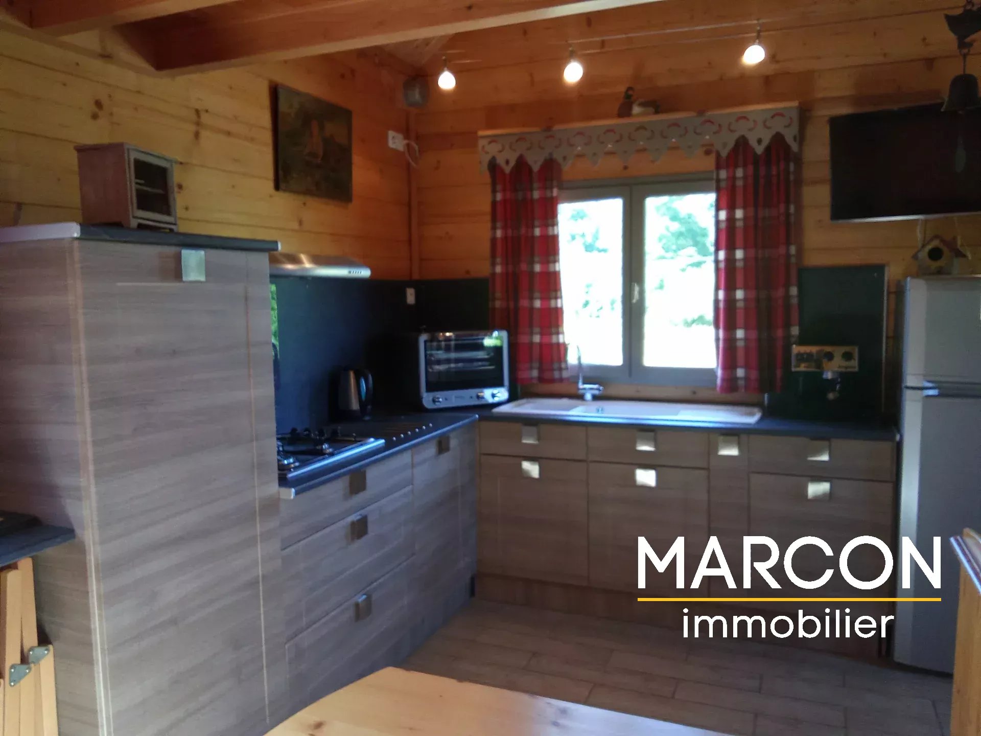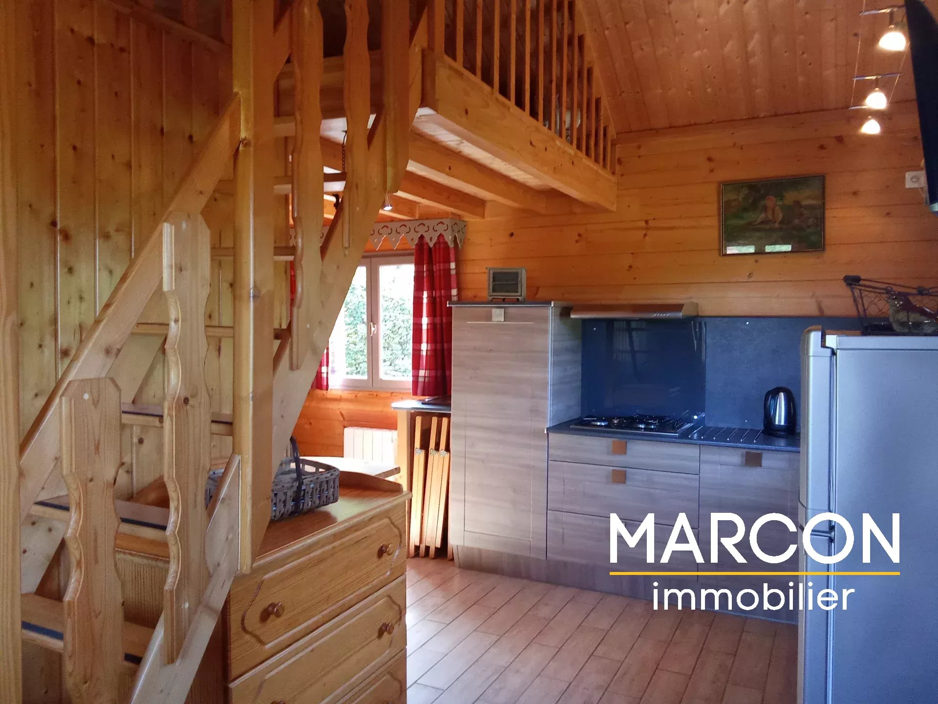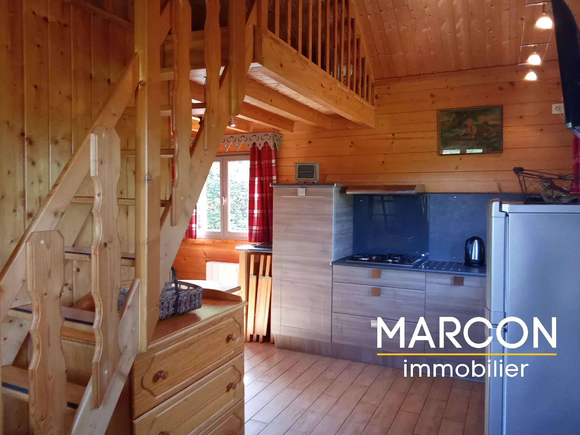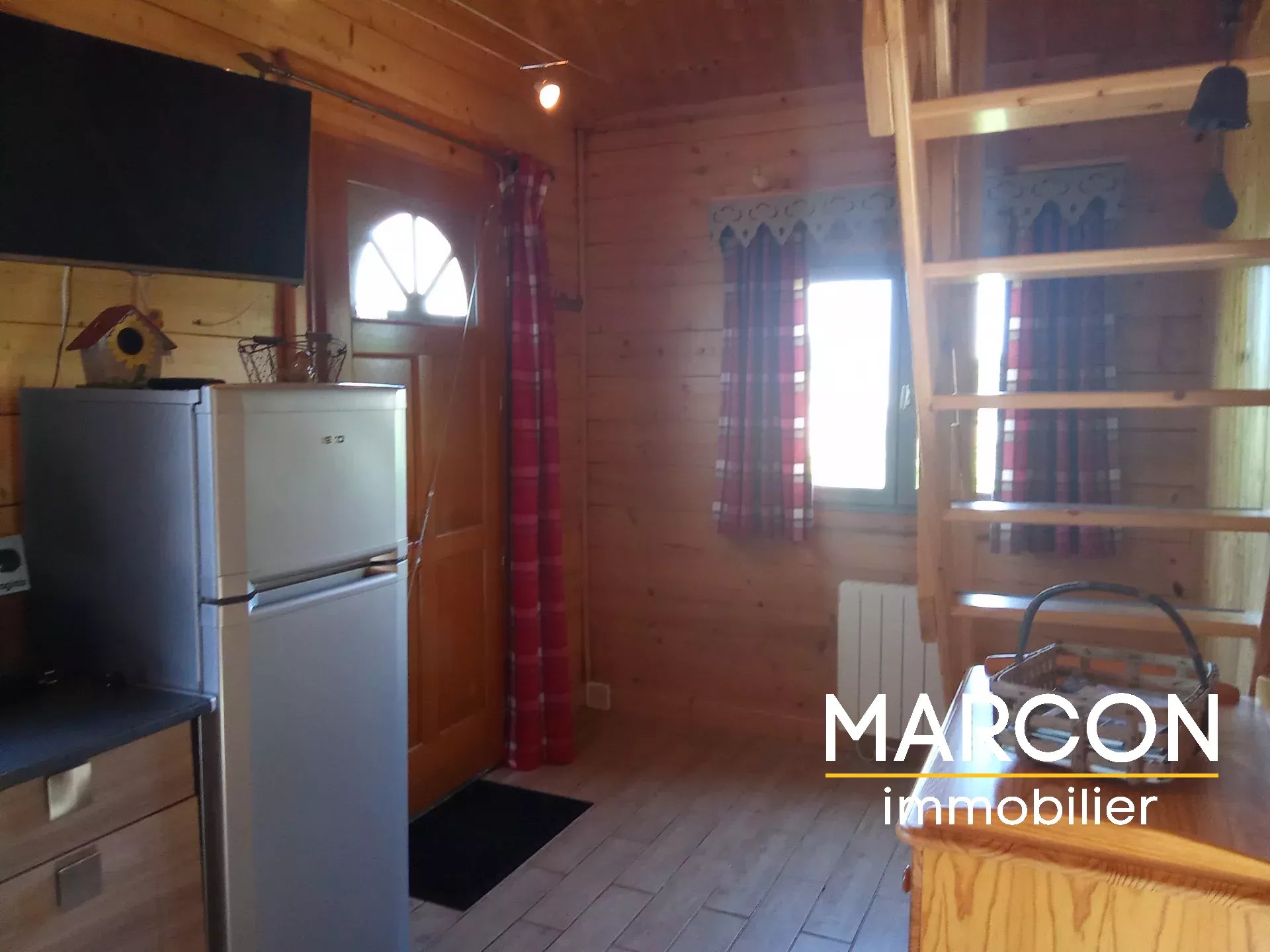 - D'un chalet comprenant séjour avec cuisine équipée, salle d'eau + WC, un couchage en mezzanine.