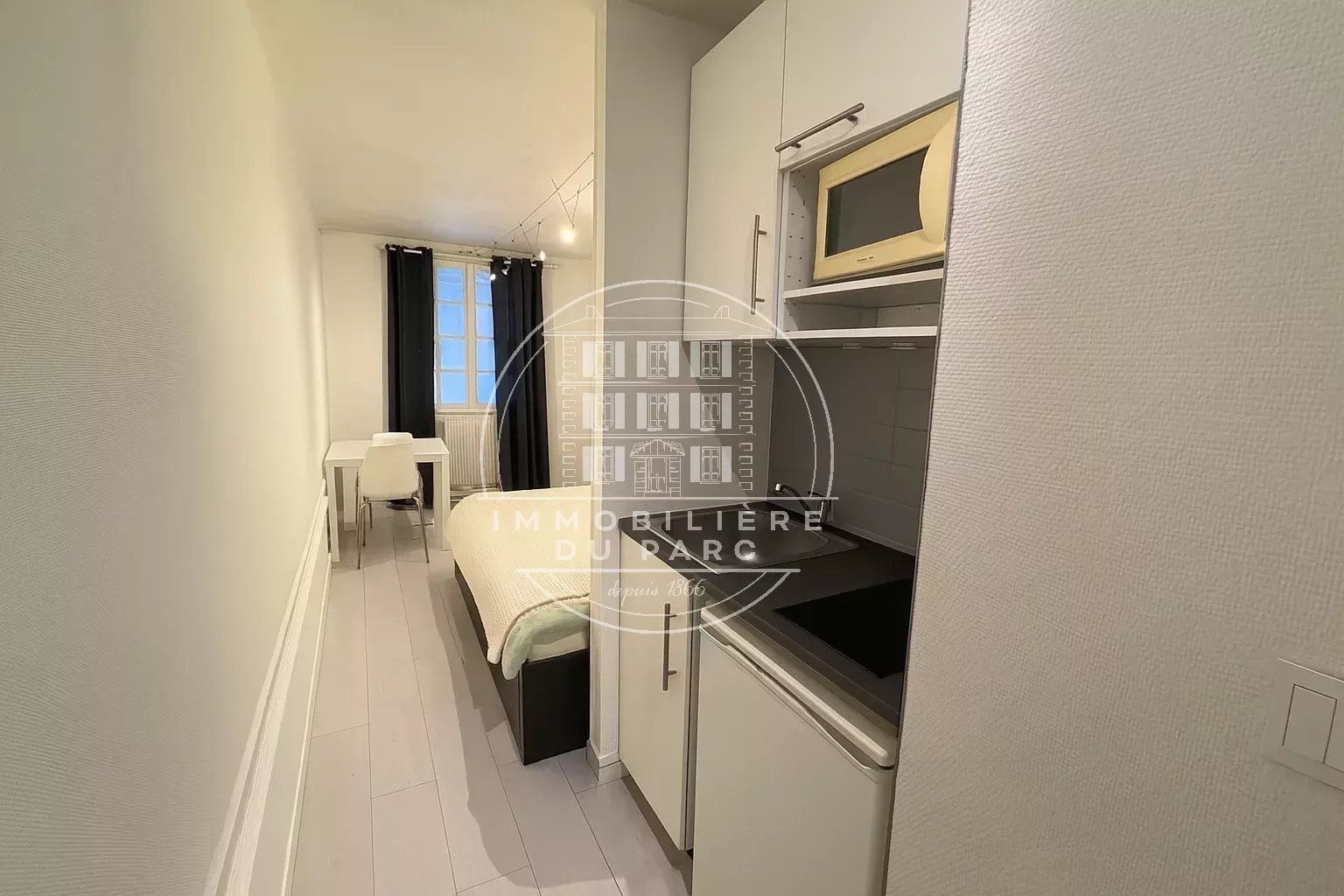Rue de l'Ermitage, dans une résidence recherchée, au calme, à proximité des commerces, des transports et du Château, En rez de jardin, une chambre comprenant coin cuisine aménagée et équipée, pièce principale, salle d'eau avec wc. Chauffage et eau chaude inclus dans les charges. La copropriété bénéficie d'un jardin accessible aux résidents jouxtant les parcs du Château. 0130155390