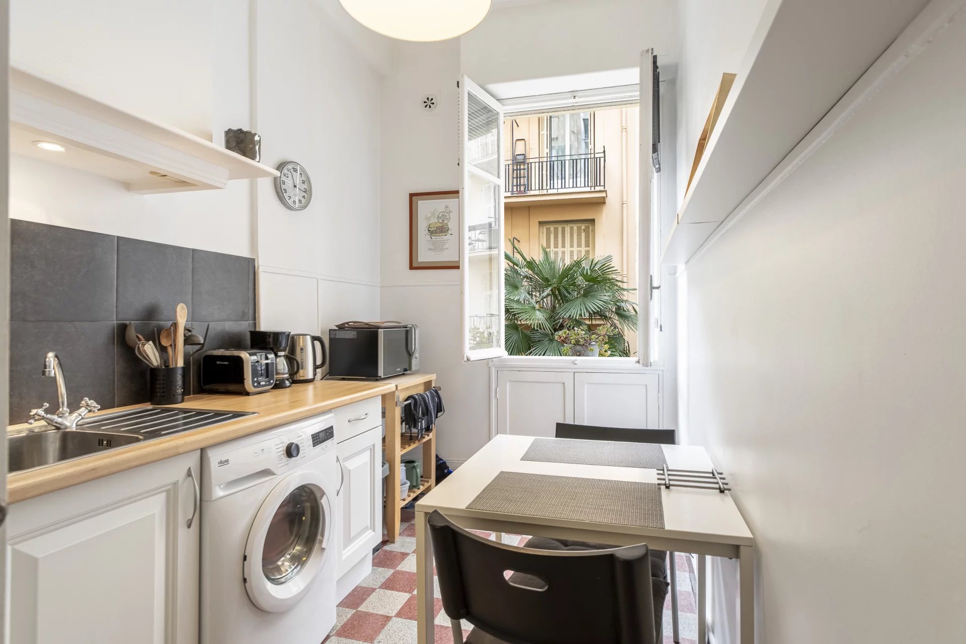 Nouveauté!!!Magnifique studio tout confort avec balcon situé dans le très recherché quartier des Musiciens à Nice. Ce charmant appartement offre une belle distribution totalement au calme: une entrée moderne avec carreaux de ciment mène d’un côté à l’espace de vie entièrement aménagé et de l’autre- à une cuisine dînatoire équipée . Un beau balcon complètement au calme donne sur le magnifique jardin méditerranéen intérieur. Un salle d’eau , une penderie et un wc indépendant complètent les espaces . Le tout avec les éléments d’origine( moulures , parquets ), une très belle hauteur sous plafond et prêt à l’emploi ! Possibilité location saisonnière. Rare!