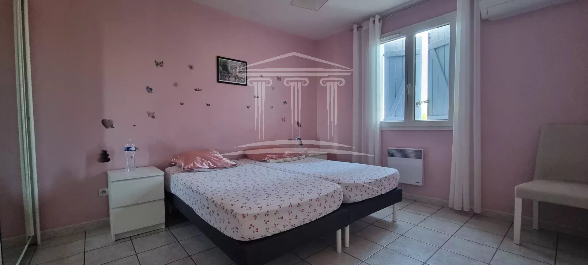 Dans un ensemble immobilier de de 4 logements, villa en copropriété avec terrain privé de 321 m² -Excellent état - grand séjour - Huisserie P V C avec double vitrage - Garage - climatisation - forage
