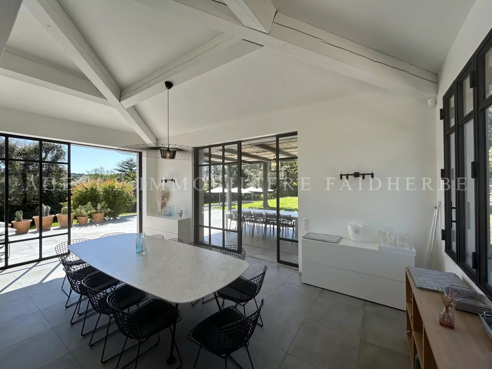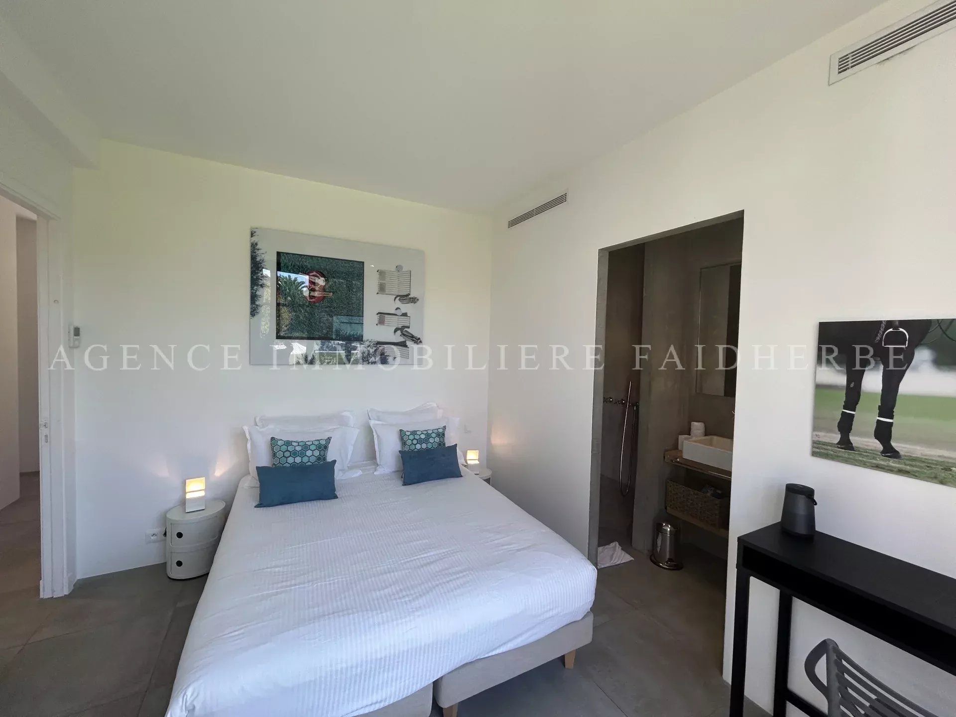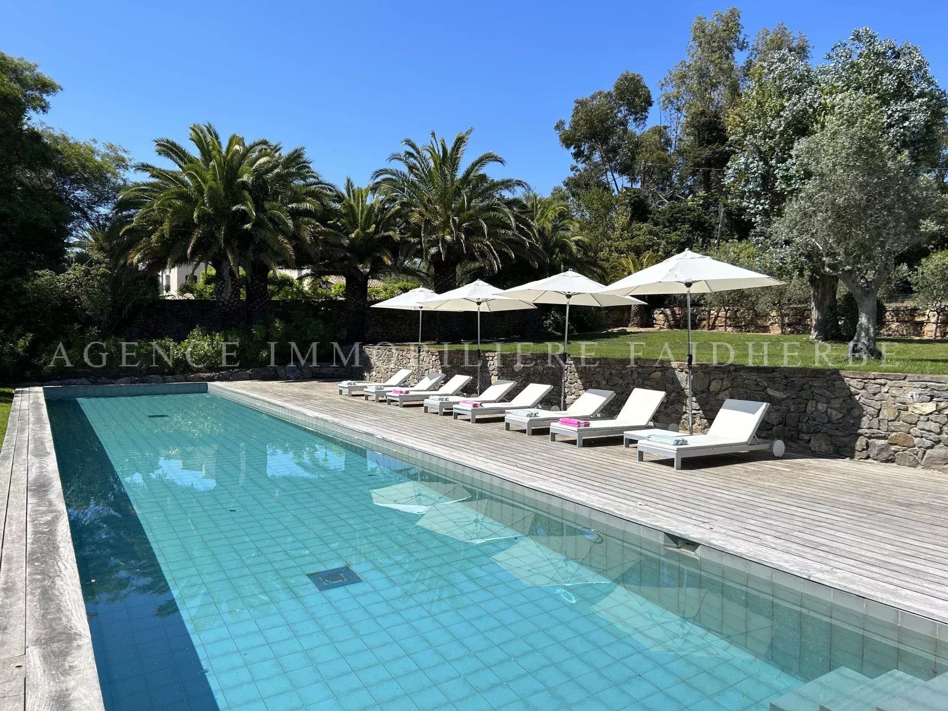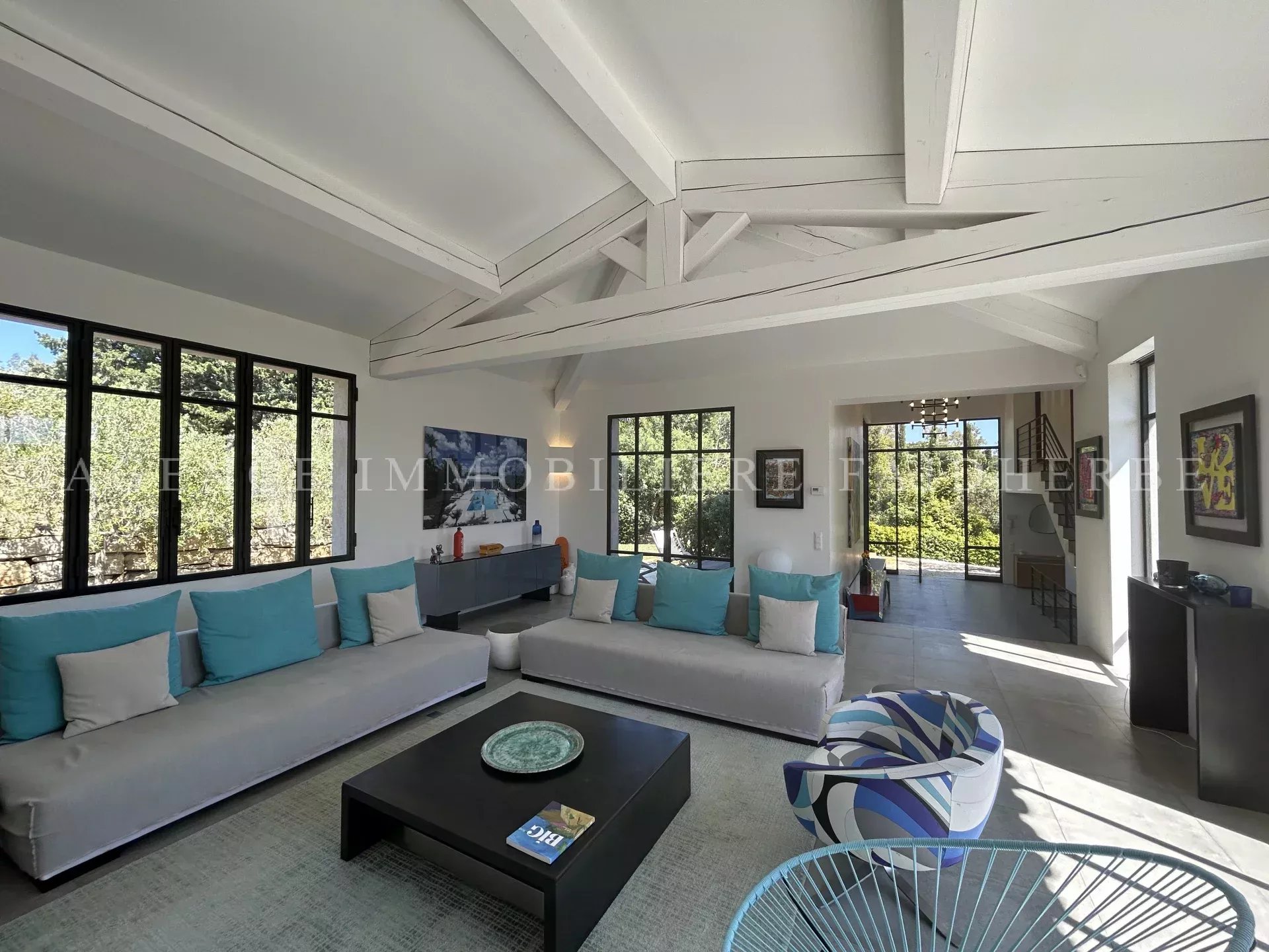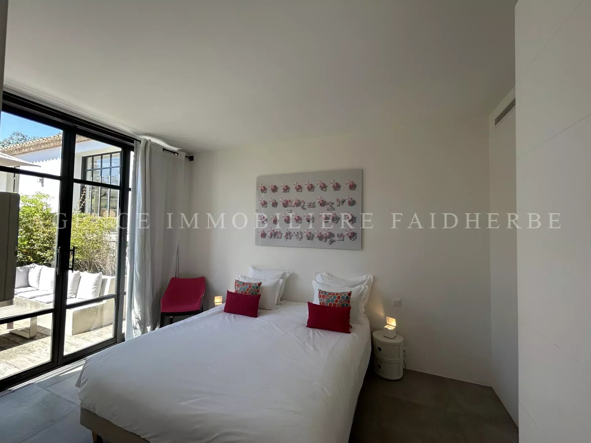 REF 166 Magnifica villa nuova et di stile contemporaneo situata in "Chemin des Treilles de la Moutte", composta da: Al piano terra: 2 camere con letti da 160 cm + bagno con doccia e wc 1 camera con 2 letti da 90 cm + bagno con doccia e wc 1 camera per bambini con 3 letti da 90 cm + bagno e wc Lavanderia con lavatrice, asciugatrice e congelatore Salone con Tv stellitare e WIFI Cucina con 2 lavastoviglie, forno, microonde, etc Al primo piano: 1 camera con letto da 180 cm + bagno con vasca, doccia, bidet et wc, et balcone 1 camera con letto da 160 cm 1 bagno con doccia e wc Piscina da 20x4 m Terreno da 2000 m2 Spese supplementari: pulizia, affitto biancheria da letto, tassa di soggiorno Biancheria da bagno inclusa