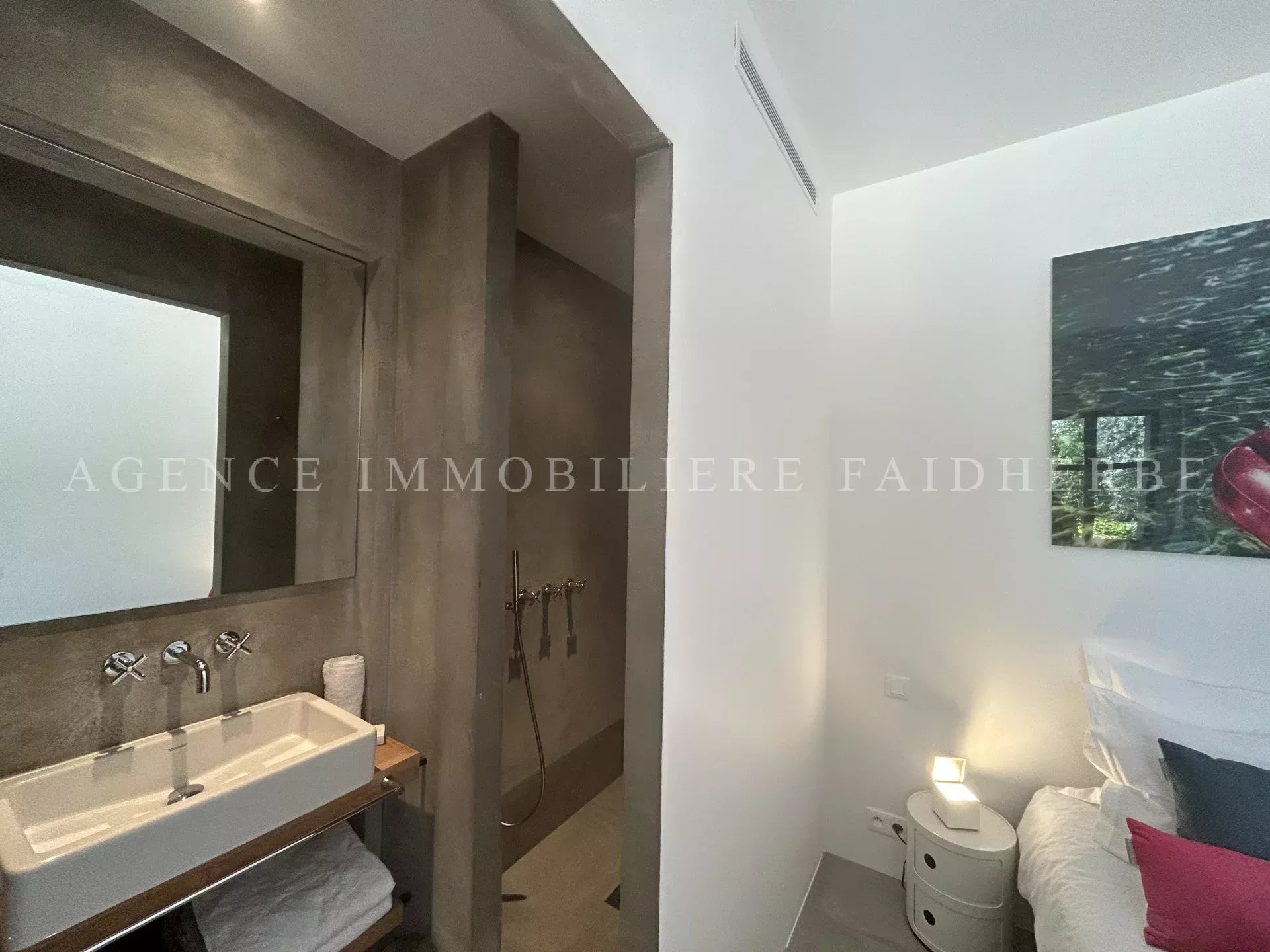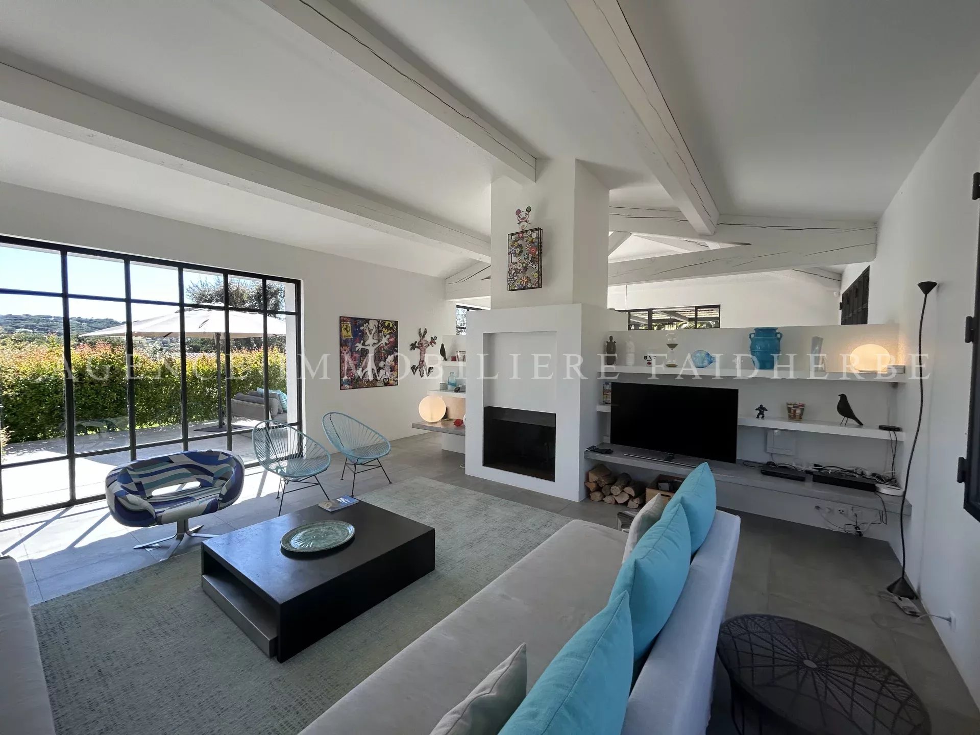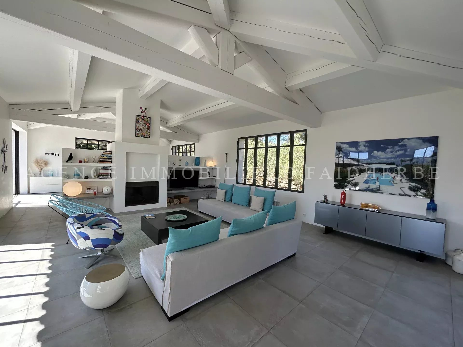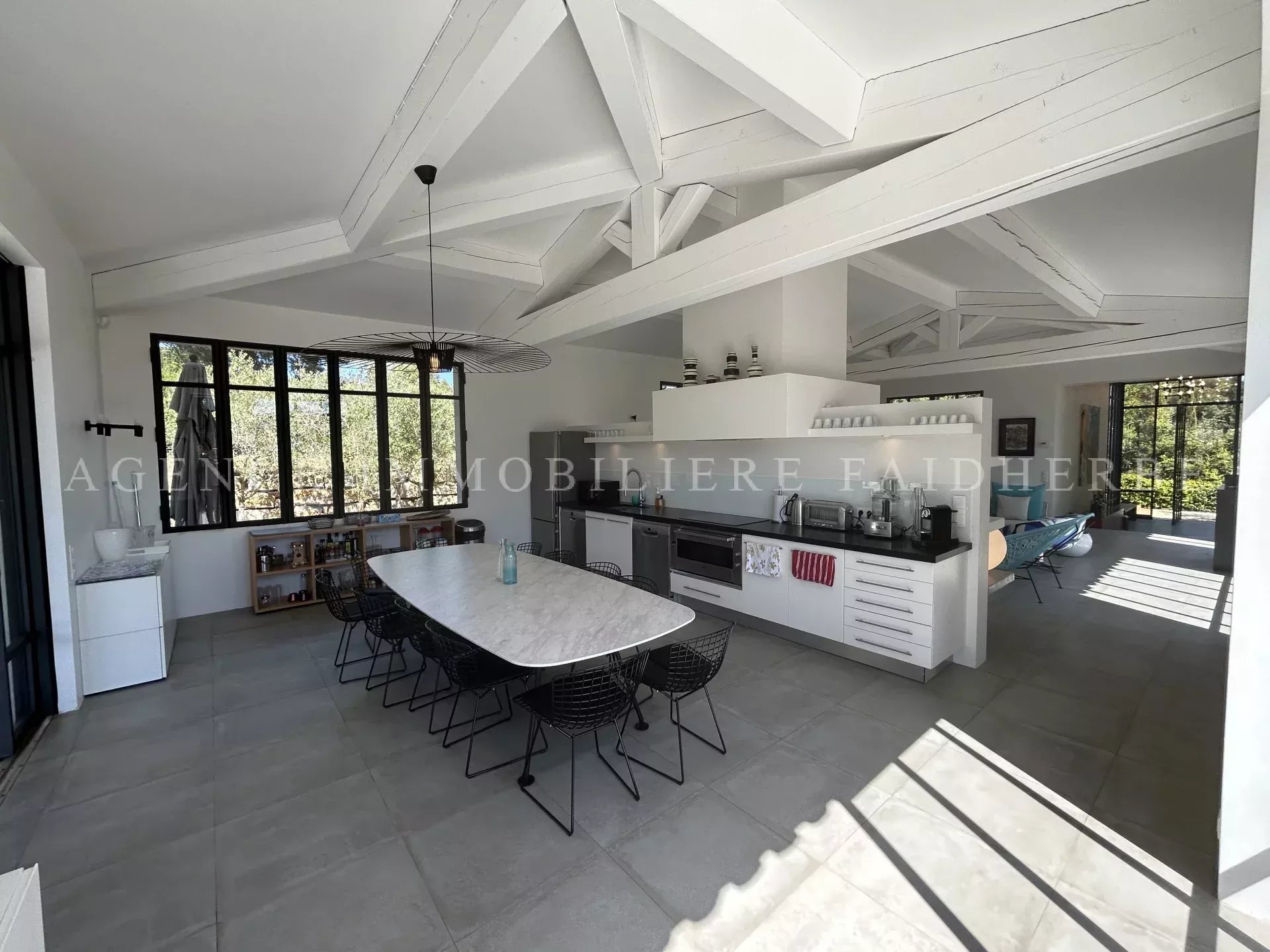 REF 166 Magnifica villa nuova et di stile contemporaneo situata in "Chemin des Treilles de la Moutte", composta da: Al piano terra: 2 camere con letti da 160 cm + bagno con doccia e wc 1 camera con 2 letti da 90 cm + bagno con doccia e wc 1 camera per bambini con 3 letti da 90 cm + bagno e wc Lavanderia con lavatrice, asciugatrice e congelatore Salone con Tv stellitare e WIFI Cucina con 2 lavastoviglie, forno, microonde, etc Al primo piano: 1 camera con letto da 180 cm + bagno con vasca, doccia, bidet et wc, et balcone 1 camera con letto da 160 cm 1 bagno con doccia e wc Piscina da 20x4 m Terreno da 2000 m2 Spese supplementari: pulizia, affitto biancheria da letto, tassa di soggiorno Biancheria da bagno inclusa