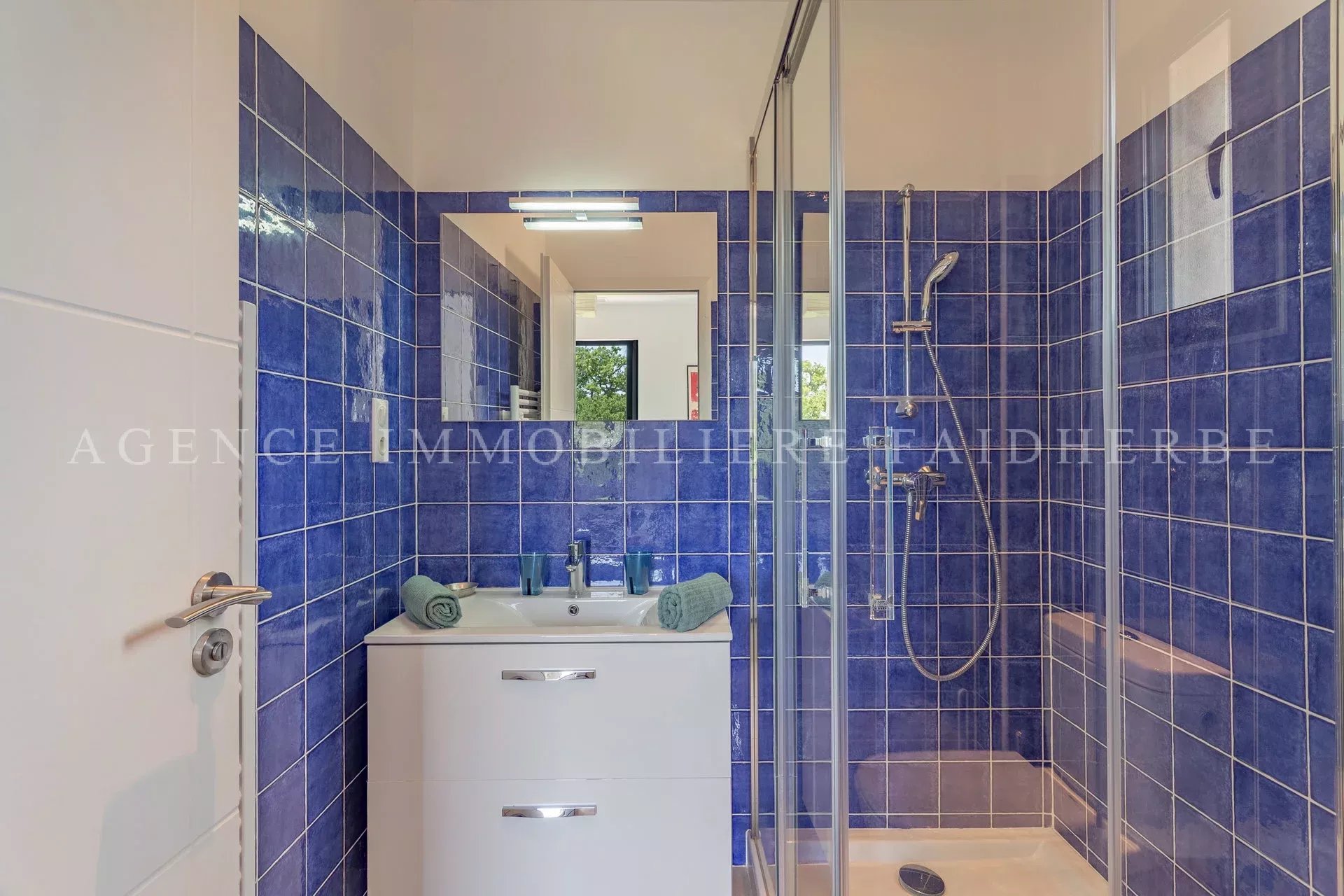 REF 279 Villa di recente costruzione di 150 m² situata sulla Route de Tahiti, composta da: Piano terra: 1 camera con letto da 160 cm e bagno 2 camere con letto da 180 cm e doccia Ampio soggiorno/sala da pranzo Cucina completamente attrezzata Lavanderia con lavatrice e asciugatrice Al piano superiore: 2 camere con letto da 180 cm e doccia Servizi: Aria condizionata, allarme, TV, Wi-Fi Spese: pulizie (€30/ora), biancheria (€150), tassa di soggiorno (€6,91/giorno/adulto)