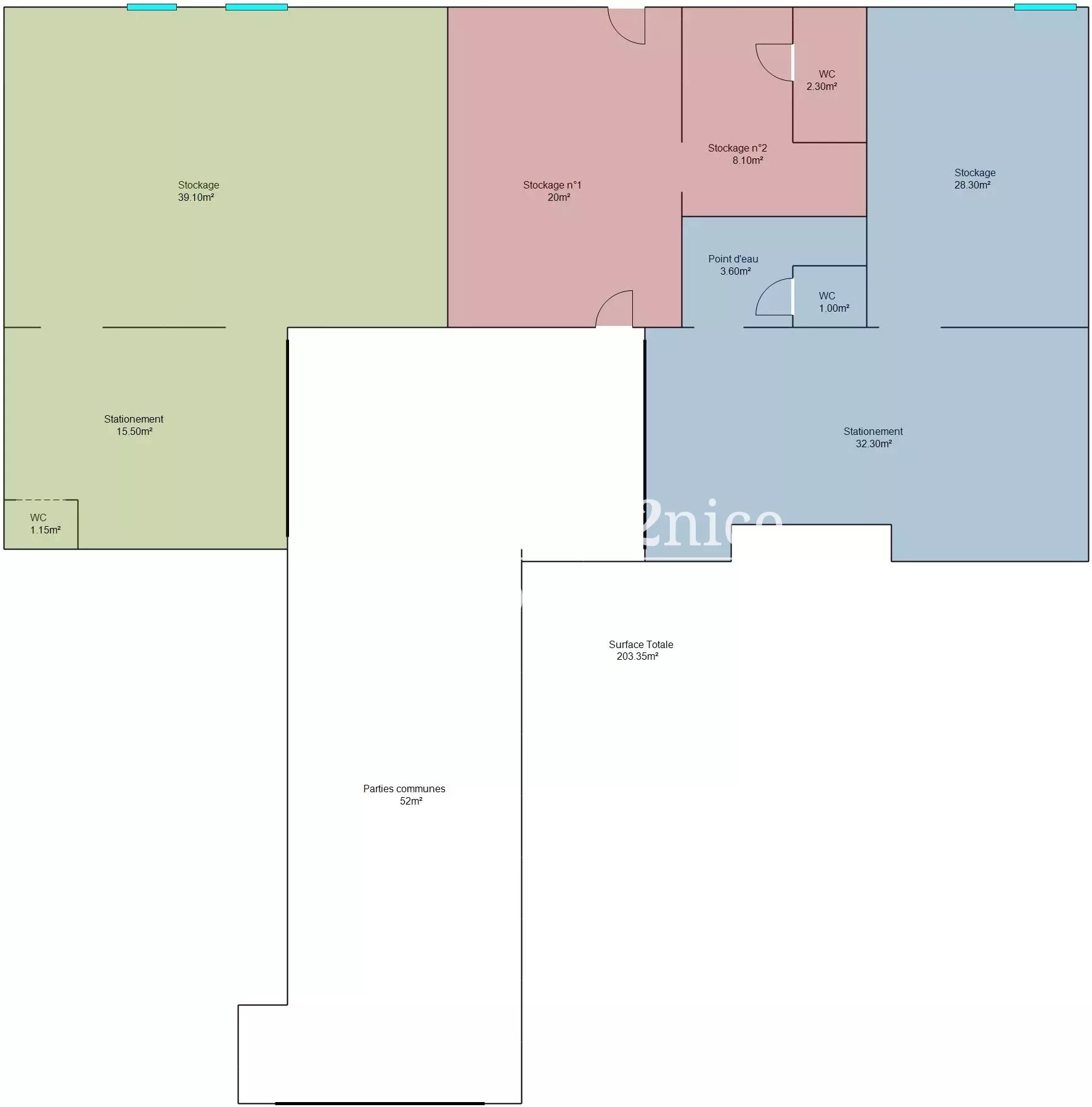 NICE LIBERATION Plein secteur de la libération, dans une rue piétonne avec accès par badge et porche pour entrer dans l’immeuble avec télécommande : 1 LOT entier d’environ 208m² avec rideau métallique sécurisé, composé de 3 locaux tous loué: 2 wc et 1 point d’eau, plus divers stationnement. Le vert : 828€ de loyer net = total 958€ avec charges, électricité et TF Le rouge : 450€ net = total 507€ avec charges, électricité et TF Le bleu : 870€ net = total 970€ avec charges, électricité et TF Total Loyer net : 2.148€ Hauteur sous plafond 2.75m Ideal investisseur